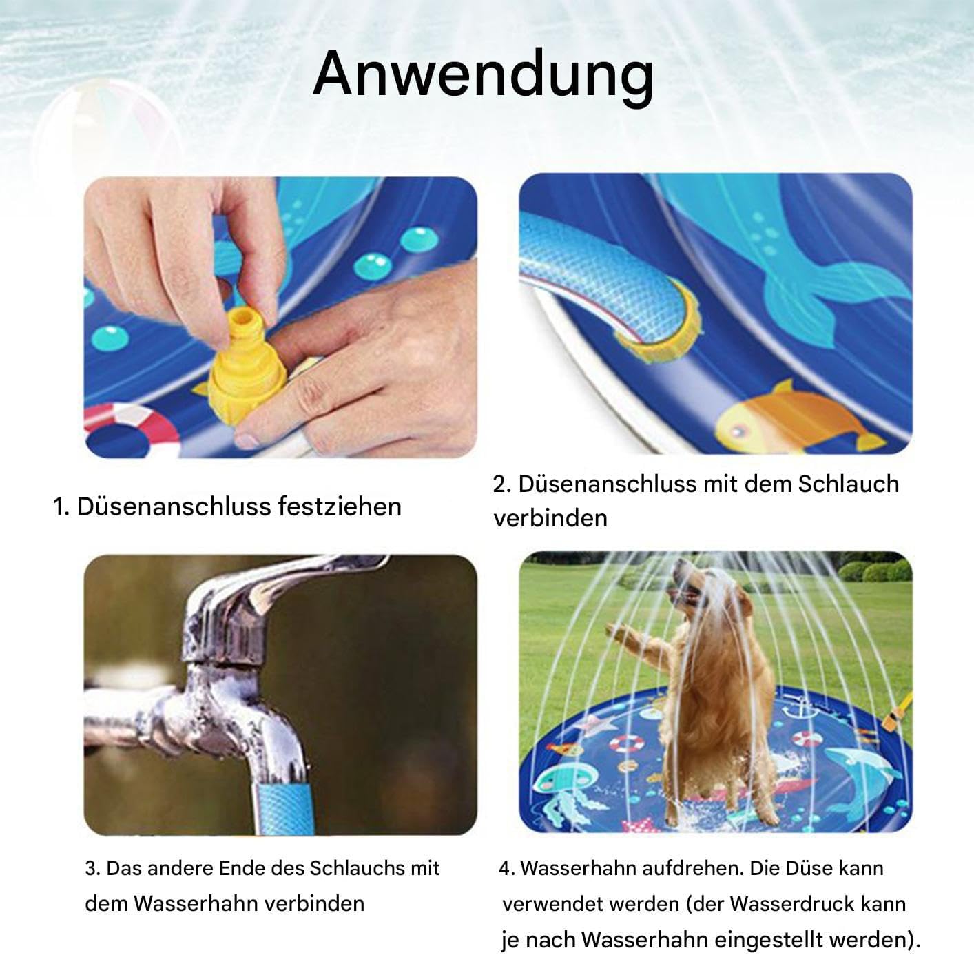 Stampa ad alta risoluzione: dona al tuo giardino una brillantezza duratura dei colori con stampe resistenti allo sbiadimento. Effetto visivo ottimizzato in qualsiasi condizione atmosferica e in qualsiasi situazione del giardino. Garantisce colori vivaci senza sbiadire. Uso sicuro: struttura antiscivolo con nucleo in PVC rinforzato, proprietà antigraffio per prevenire i danni, il design denso supporta attività all'aperto senza interruzioni con affidabilità funzionale Facile da riporre: il design ben congegnato massimizza la capacità di conservazione, in modo che il tappetino da gioco per cani possa essere riposto risparmiando spazio con piena funzionalità Design di gioco interattivo: entusiasma gli animali domestici con un giocoso effetto di raffreddamento ad acqua, riduce la noia e lo stress da calore attivando momenti di gioco per un movimento energico Divertimento dinamico dell'acqua: grazie all'adattabilità del tubo da 1/2 pollici consente un flusso d'acqua veloce e un'interazione immersiva fontana circolare. Offre una varietà unica di giochi all'aperto per un divertimento istantaneo degli animali