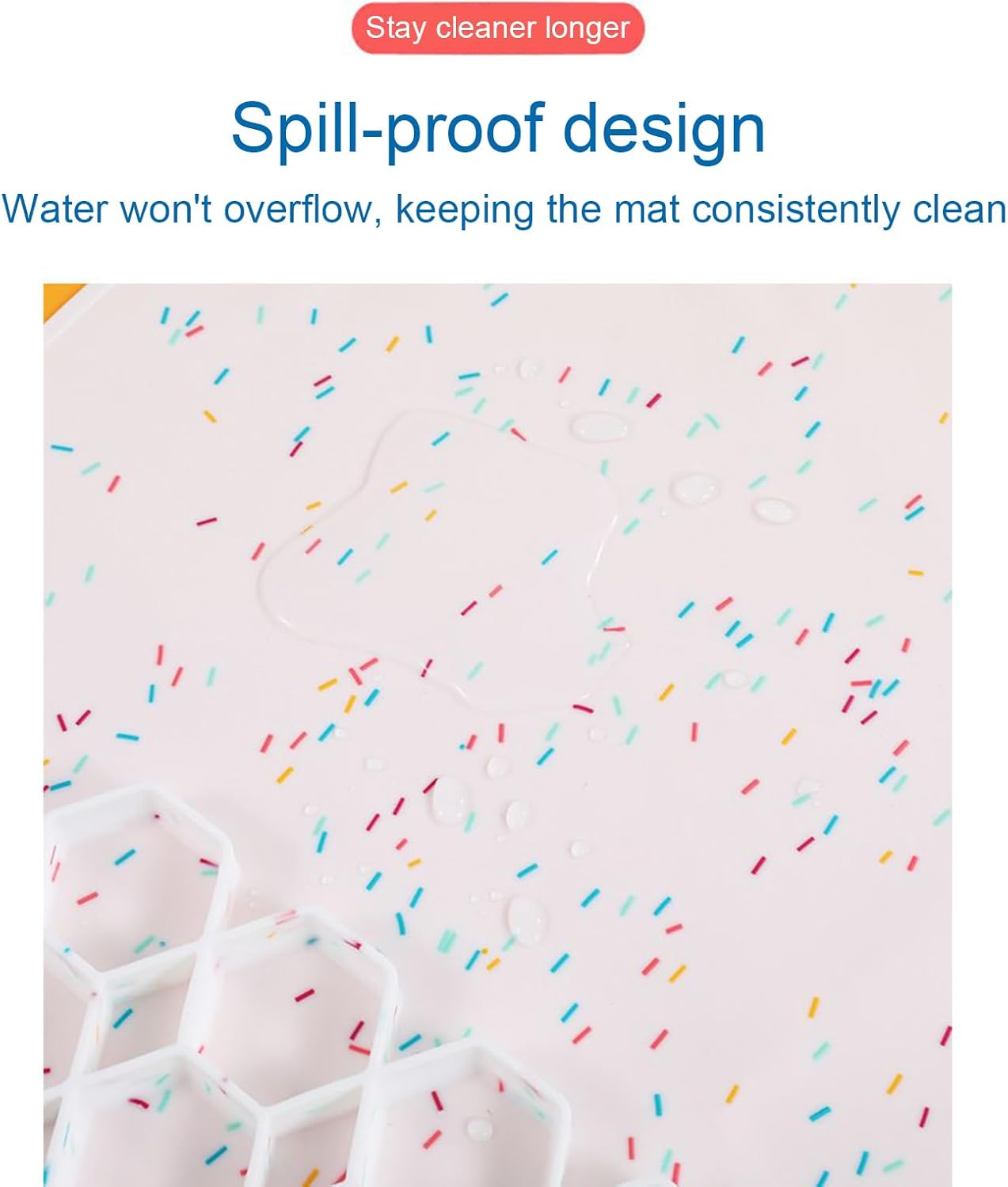 Portatile e salvaspazio: il tappetino da pittura pieghevole in silicone offre un design compatto portatile per riporre lo spazio nello zaino o in casa, perfetto per studenti d'arte e professionisti in viaggio con pratico utilizzo Design con zone di miscelazione dei colori: il tappetino da pittura in silicone per bambini combina il panno di pittura e la tavolozza dei colori con una superficie lavabile permanente. Le zone di miscelazione dei colori integrate consentono di lavorare concentrandosi nelle ore d'arte o nei progetti fai da te senza interruzioni di pulizia Organizzazione dei colori intelligente: il tappetino da pittura in silicone per bambini organizza i colori in base ai colori e offre un design ad accesso rapido per gli strumenti, crea uno spazio artistico intuitivo in cui i bambini possono approfondire progetti immaginativi senza distrazioni. Superficie senza residui: la superficie in silicone di alta qualità del tappetino da pittura resiste all'allungamento e alla formazione di pieghe e offre una durata costante con una trama fine che è piacevole al tatto sotto la mano. Impedisce la deformazione e le pieghe e garantisce così una concentrazione ininterrotta durante le attività artistiche, dallo schizzo al design completo. Base di lavoro stabile: impedisce lo scivolamento e protegge le superfici dallo sporco, favorisce il lavoro concentrato su progetti artistici grazie alla tenuta affidabile e alle proprietà a tenuta stagna