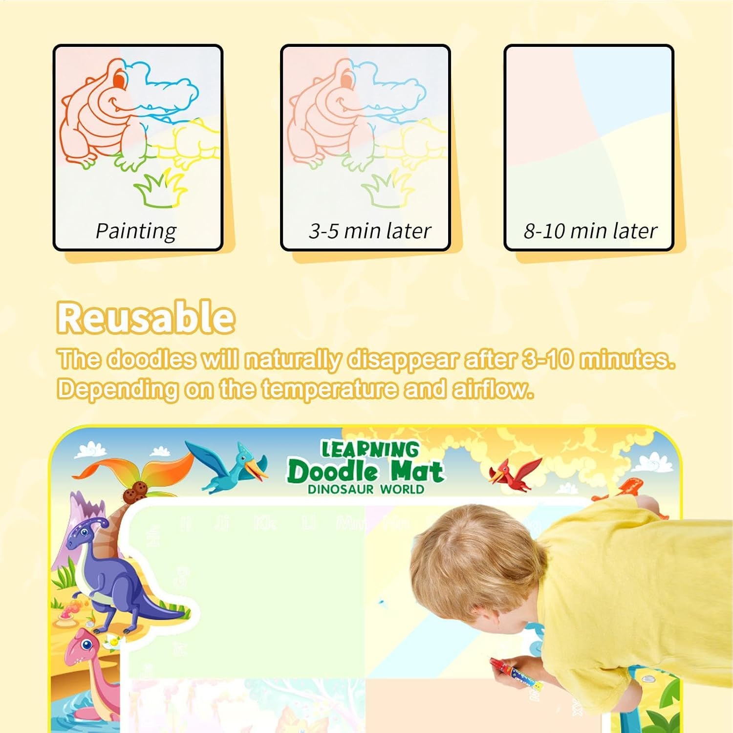 Divertimento innovativo: questo tappetino da disegno ad acqua offre un intrattenimento infinito con i suoi motivi marini e dinosauri unici. Promuove la creatività e le abilità pratiche ed è un ottimo strumento per lo sviluppo di ogni bambino Comodo da usare: scopri il piacere dell'arte con il nostro tappetino da disegno ad acqua, che ha un disegno di pittura con acqua pulita che evita macchie e sporco. Questo tappetino riutilizzabile è facile da usare Comodo da trasportare: grazie al suo design pieghevole e portatile, questo tappetino può essere facilmente riposto senza occupare troppo spazio. Una soluzione salvaspazio ideale per i genitori Ampiamente utilizzato: progettato come un giocattolo interattivo per e ragazze, offre infinite possibilità artistiche e incoraggia il gioco immaginativo. Dai al tuo bambino la possibilità di dare libero sfogo alla sua immaginazione in qualsiasi momento e ovunque Regalo ideale: questo tappetino per pittura ad acqua è un regalo unico che unisce divertimento e praticità. È perfetto per migliorare le abilità artistiche ed è il regalo di compleanno o di Natale perfetto per la famiglia e gli amici