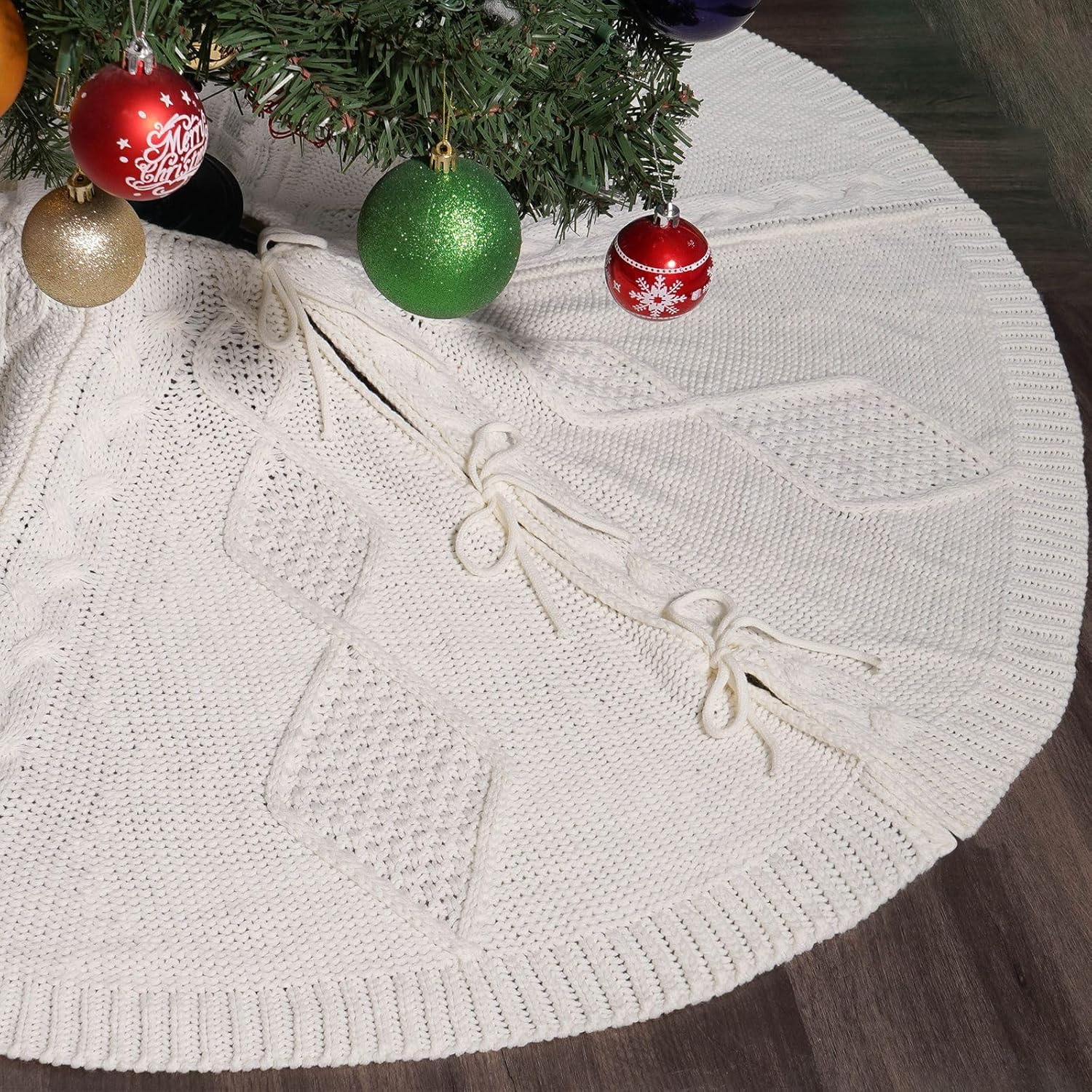 Tappetino per gonna per albero di Natale intrecciato a mano, i bordi sono cuciti con cura, 3 corde all'apertura consentono di posizionare saldamente la gonna per albero di Natale sotto l'albero di Natale. Questa gonna per albero di Natale lavorata a maglia è realizzata in tessuto di poliestere, morbido al tatto, non facile da sbiadire o deformare. Lavabile a mano e in lavatrice. Lunga durata. Taglia corretta. Misura piccola: 92 cm Misura grande: 122 cm Adatto a diverse dimensioni di alberi di Natale. Ideale per le prossime vacanze di Natale. Puoi anche posizionarlo sotto l'albero di Natale, sul divano o in soggiorno, camera da letto, giardino, hotel, supermercato o in qualsiasi altro luogo, decorazione natalizia molto adatta per interni ed esterni. Eleva il tuo Natale con questa esclusiva copertura per la base dell'albero di Natale lavorata a maglia. Anche un bel regalo di Natale per la tua famiglia o i tuoi amici.