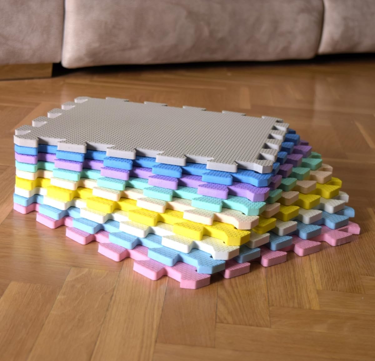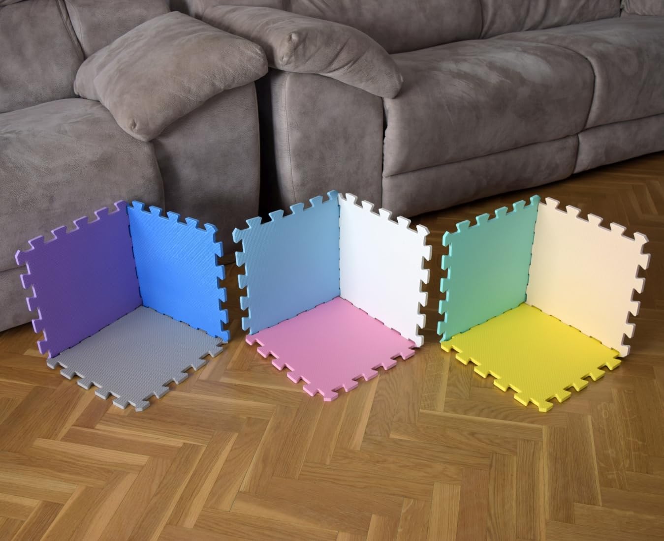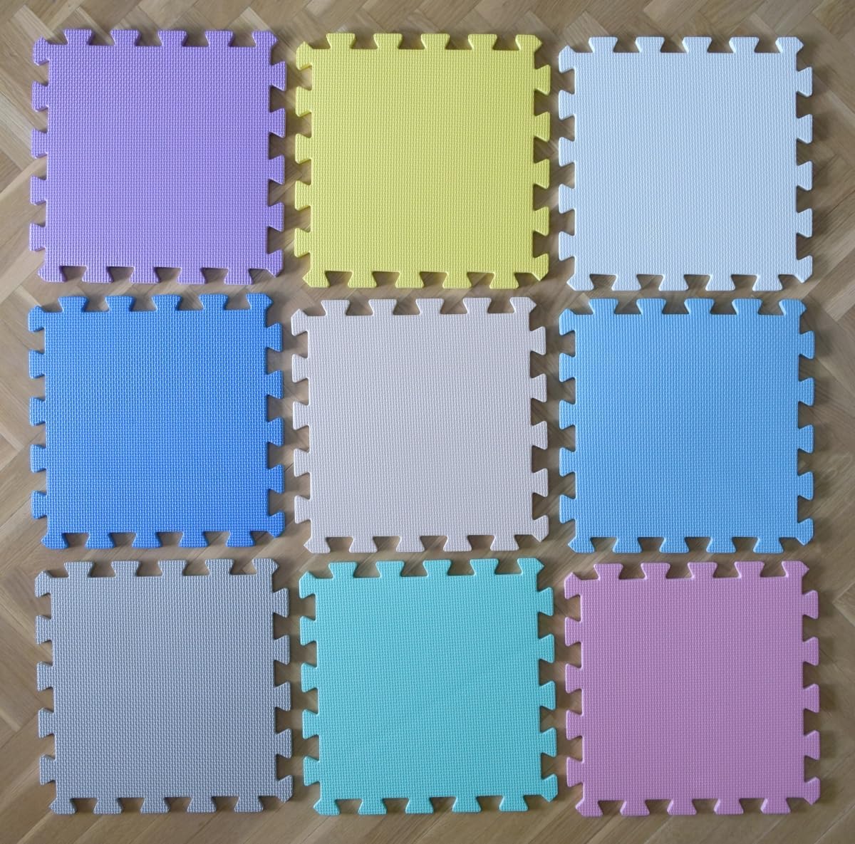Tappetino per bambini. Composto da diversi pezzi che possono essere ricomposti come un puzzle. Può essere utilizzato come tappetino, cuscino, superficie di gioco per bambini, ecc. È possibile creare diverse combinazioni scambiando le parti. Colori tenui ideali per i più piccoli. Morbido, lavabile, resistente e durevole. Assorbimento dell'umidità, non tossico. Adatto a tutte le età. Conforme agli standard di sicurezza europei. Ideale per interni ed esterni. Molto resistente. Adatto a diversi luoghi e superfici come giardini, pavimenti, terrazze, ecc. Migliora la sicurezza prevenendo lesioni in caso di caduta dei bambini. Impedisce il contatto con superfici dure e fredde, nonché il passaggio di umidità.