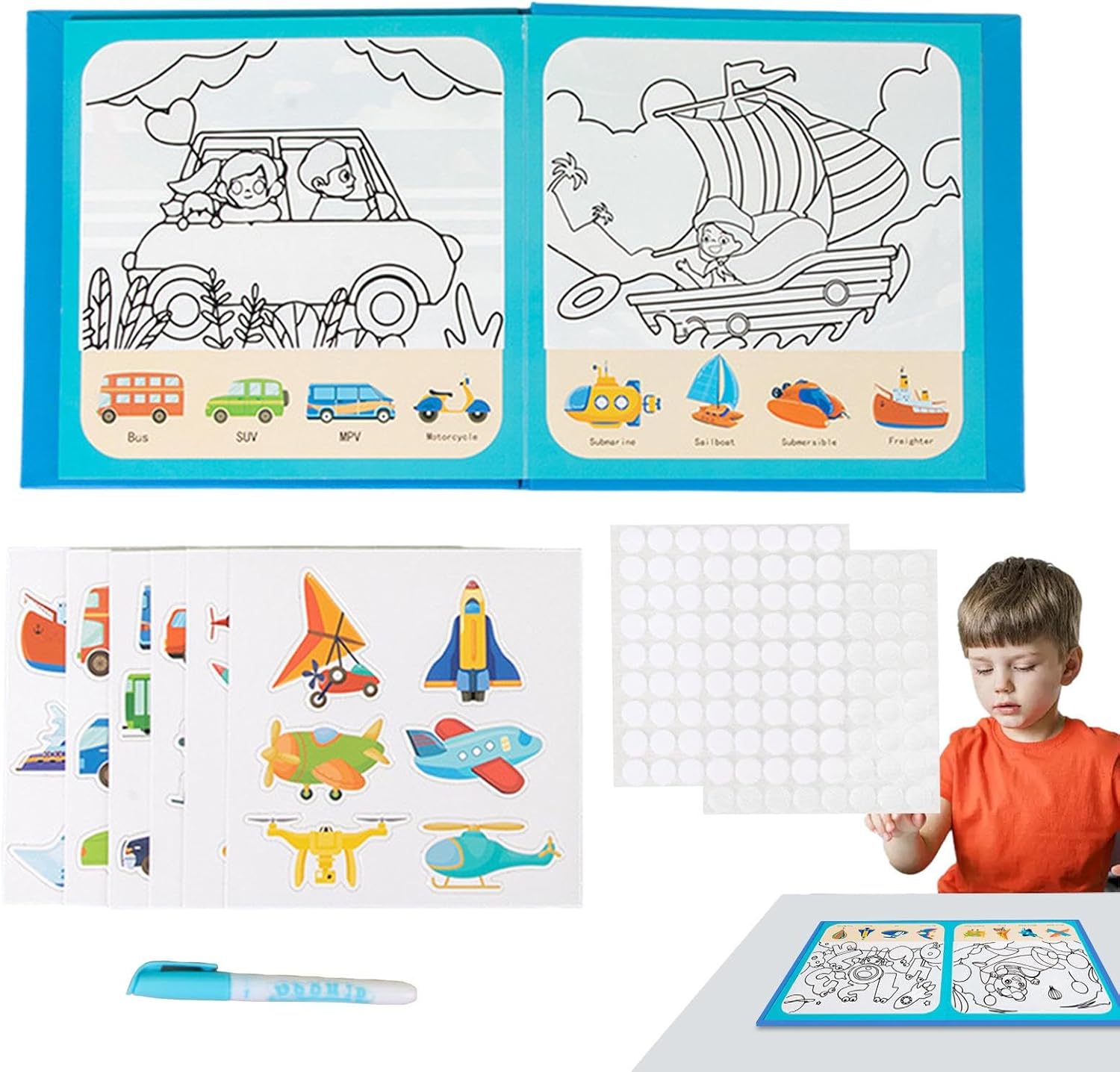 Strumento di Apprendimento Creativo: Il tappetino magico ad acqua stimola l'immaginazione e la creatività con coinvolgenti come animali e veicoli, promuove lo sviluppo sensoriale e offre un'attività ideale per la crescita cognitiva nella prima infanzia, per il gioco a casa o in ambienti educativi come asili e scuole, incoraggiando l'apprendimento pratico e la fantasia nei bambini. Divertimento con Adesivi Richiudibili: Questo libro di adesivi riutilizzabile include adesivi riposizionabili che si abbinano perfettamente al tappetino per disegnare con acqua, consentendo ai bambini di creare e ricreare design ripetutamente, stimolando la creatività in un ambiente di gioco ordinato e coinvolgente, per ore di divertimento creativo e facile da pulire dopo l'uso. Facile e Intuitivo da Usare: Progettato con materiale in morbido velluto e bordi a strappo sicuri, questo tappeto magico acqua incoraggia la creatività a base d'acqua attraverso effetti di rivelazione incantevoli, asciugandosi rapidamente per un riuso continuo mentre coinvolge le giovani menti durante i viaggi in macchina o le pause di studio, garantendo un'esperienza di gioco educativa e piacevole per bambini. Tappetino Acquatico per Costruire Abilità: Progettato per lo sviluppo delle competenze, il tappetino da disegno ad acqua rafforza la coordinazione occhio-mano e la consapevolezza dei colori, familiarizzando i bambini con i di animali e veicoli via design interattivi che incoraggiano attività di gioco tranquille e immersive, adatte a momenti di relax e esplorazione creativa. Gioco Creativo Senza Disordine: Con la penna ad acqua dalla presa facile e intuitiva, questo tappeto da disegno ad acqua permette ai bambini di attivare i colori magicamente riempiendo, aggiungendo acqua e richiudendo la penna in modo sicuro, stimolando il gioco immaginativo e creativo senza sporcare o creare confusione, ideale per l asilo , la casa o le attività quotidiane, offrendo un esperienza divertente e educativa per i piccoli artisti.