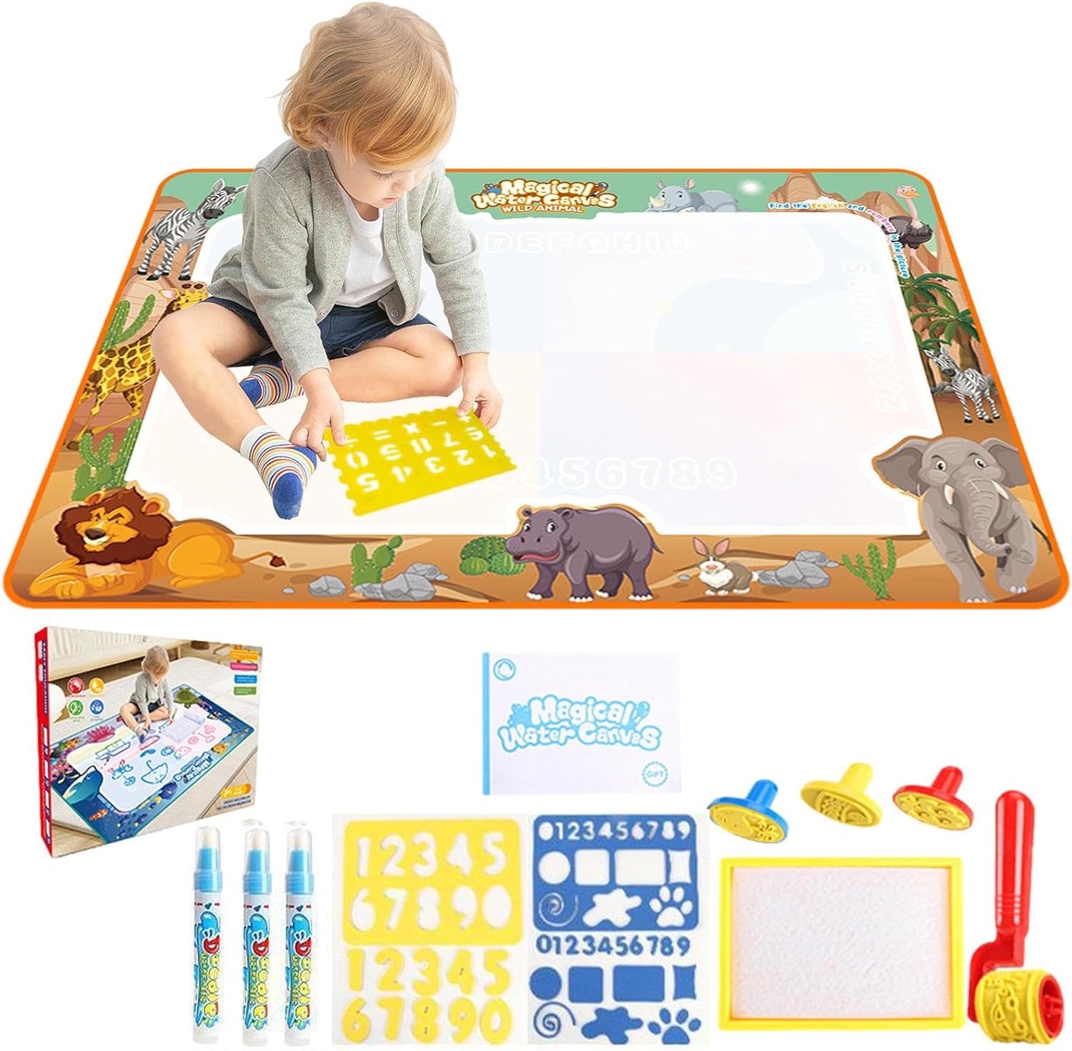 Materiali eccellenti: questo blocco da disegno per scarabocchi ad acqua è realizzato in tessuto non tessuto di poliestere di alta qualità, durevole, ecologico e sicuro per i bambini. Pulendolo con un panno umido lo mantiene pulito e igienico, garantendo più creatività e divertimento. Comodo da usare: fai emergere il lato creativo di tuo figlio con il nostro blocco da disegno per scarabocchi ad acqua. La penna piena d'acqua consente loro di disegnare e rivelare le loro opere d'arte che scompariranno entro 5-10 minuti, pronte per altri capolavori Ispira la creatività: lascia correre l'immaginazione di tuo figlio con il nostro blocco da disegno con scarabocchi ad acqua che promuove l'espressione creativa migliorando la coordinazione occhio-mano e la percezione del colore. Ideale per sviluppare competenze e stimolare la creatività. Regalo eccellente: regala una creatività senza disordine con questo blocco da disegno con scarabocchi ad acqua. Non sono necessari inchiostro o vernice, acqua per ore di divertimento. Riutilizzabile e facile da pulire, per vacanze speciali e compleanni. Comoda mobilità: il design pieghevole del nostro blocco da disegno con doodle ad acqua consente un facile trasporto zaino, per allenamenti di disegno spontanei e quando vuoi.