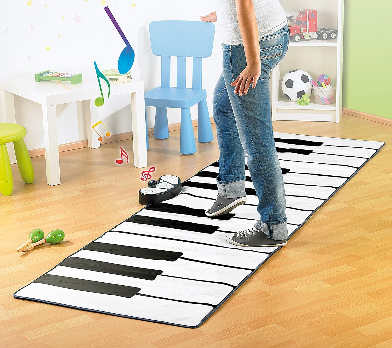 Il pianoforte gigante nella cameretta dei bambini: per un divertimento musicale su larga scala • Con 14 tasti bianchi e 10 neri, 2 altoparlanti e controllo del volume • Scelta tra otto diversi strumenti • Conservazione semplice e salvaspazio: basta arrotolarlo! Tastiera per pianoforte di grandi dimensioni con 14 tasti bianchi e 10 neri • Cattura le melodie più belle: funzione di registrazione e riproduzione • Funzionamento a batteria (ordinare 4 x AA separatamente) 2 altoparlanti e controllo del volume per strimpellare in sordina o toni rocciosi • Opzione di collegamento per lettore MP3 (jack, 3,5 mm): collega e accompagna la musica al pianoforte • Dimensioni (disteso sul pavimento): gigantesco 255 x 80 cm! Selezione di otto diversi strumenti: pianoforte, sassofono, violino, organo, tromba, arpa, vibrafono e chitarra • Facile da riporre e salva spazio: basta arrotolarlo e il gioco è fatto. Include cavo jack e istruzioni in tedesco. Tappetino per pianoforte - Rilevante o adatto anche per: tappetino musicale per adulti, strumenti musicali, tastiera per pianoforte, idee regalo, pianoforte arrotolabile, tappeto, bambini, gigante, gioco, grande, XXL • Se ordinato singolarmente, invieremo l'articolo direttamente nella confezione originale del prodotto sicura e ottimizzata per la spedizione. Ciò consente di risparmiare rifiuti di imballaggio e di proteggere l'ambiente.