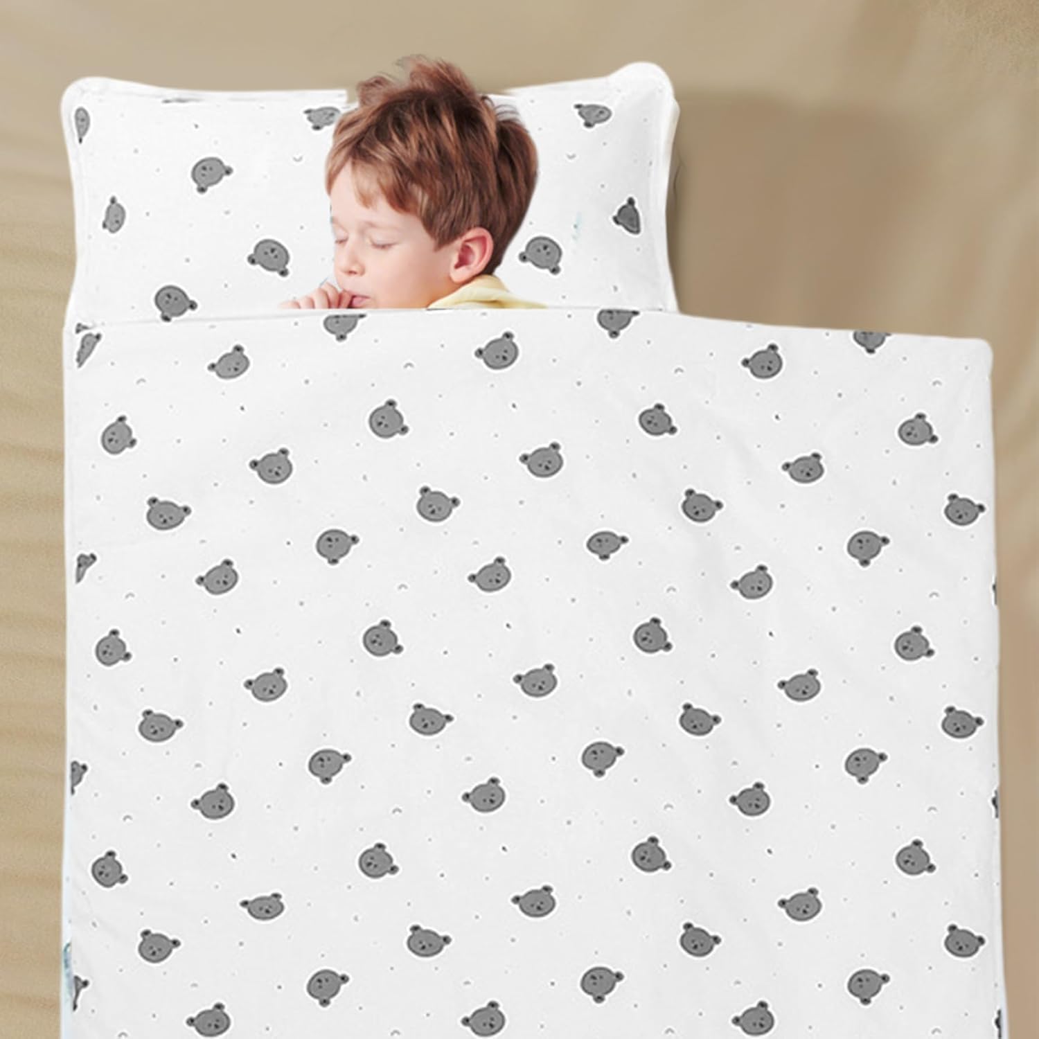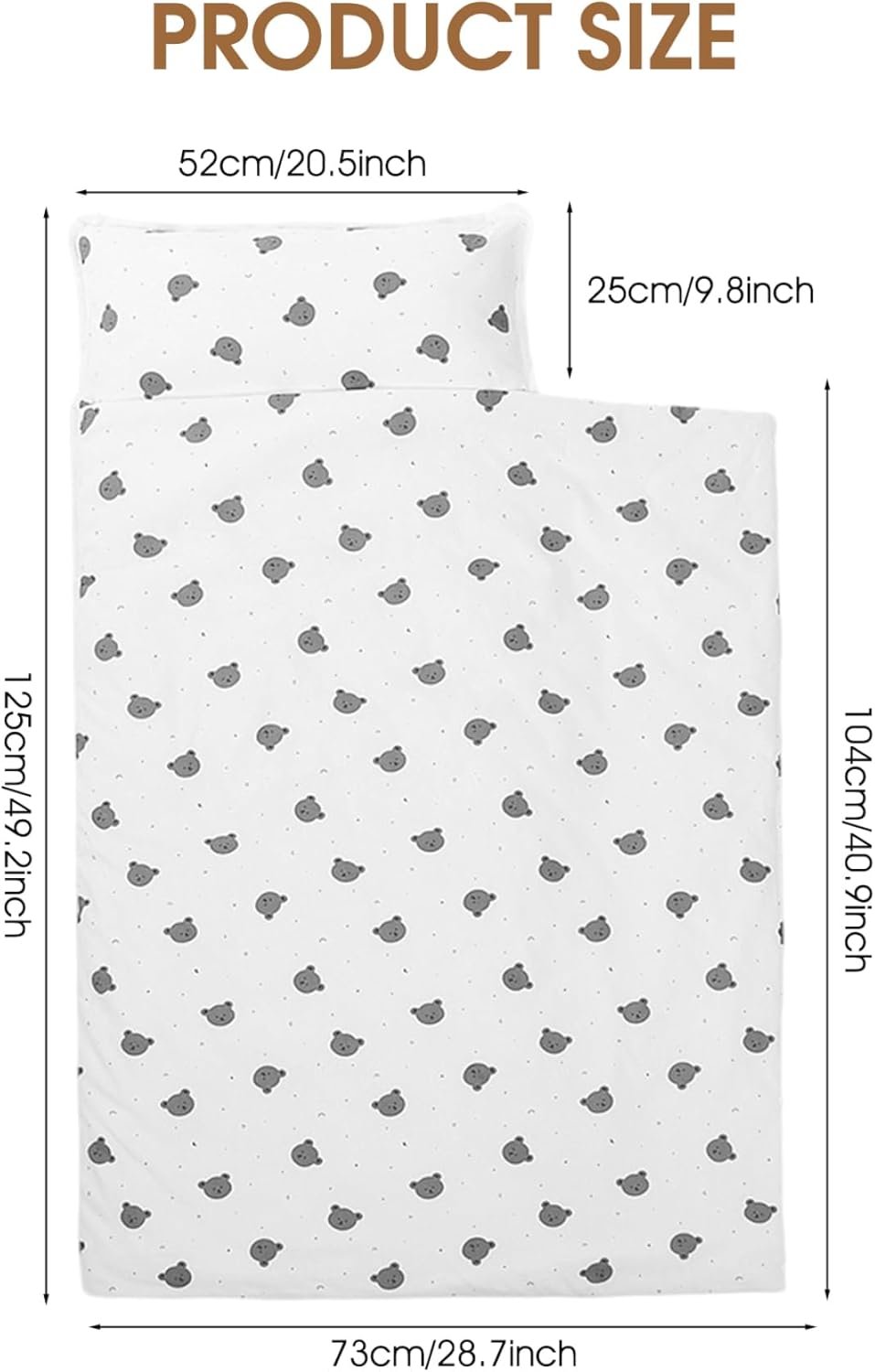 Design a torta arrotolabile: ispirato all'aspetto di un rotolo di torta, questo tappetino per il pisolino può essere facilmente arrotolato per riporlo in modo compatto e imballarlo rapidamente, ideale per la scuola materna, l'asilo nido o i viaggi. Tessuto morbido e traspirante: realizzato con materiali leggeri e sicuri, il tappetino per il pisolino garantisce traspirabilità e comfort, aiutando i bambini a rimanere comodi e freschi durante il pisolino. Adorabile motivo a orsetto con tasca per nome: il simpatico design a orsetto porta gioia durante il pisolino, mentre la tasca per nome consente una facile etichettatura, perfetta per tenere traccia del tappetino del tuo bambino a scuola. Maniglia per il trasporto e chiusura a strappo: progettata per la portabilità, include una maniglia per il trasporto e cinghie di sicurezza a strappo che mantengono il tappetino ben arrotolato, rendendolo super facile da trasportare e riporre. Cuscino rimovibile con supporto efficace: il cuscino rimovibile fornisce un supporto delicato per collo e testa con fermezza media, consentendo al bambino di riposare comodamente rendendo la pulizia semplice e comoda.