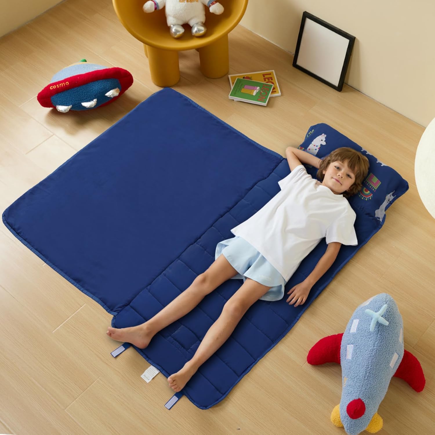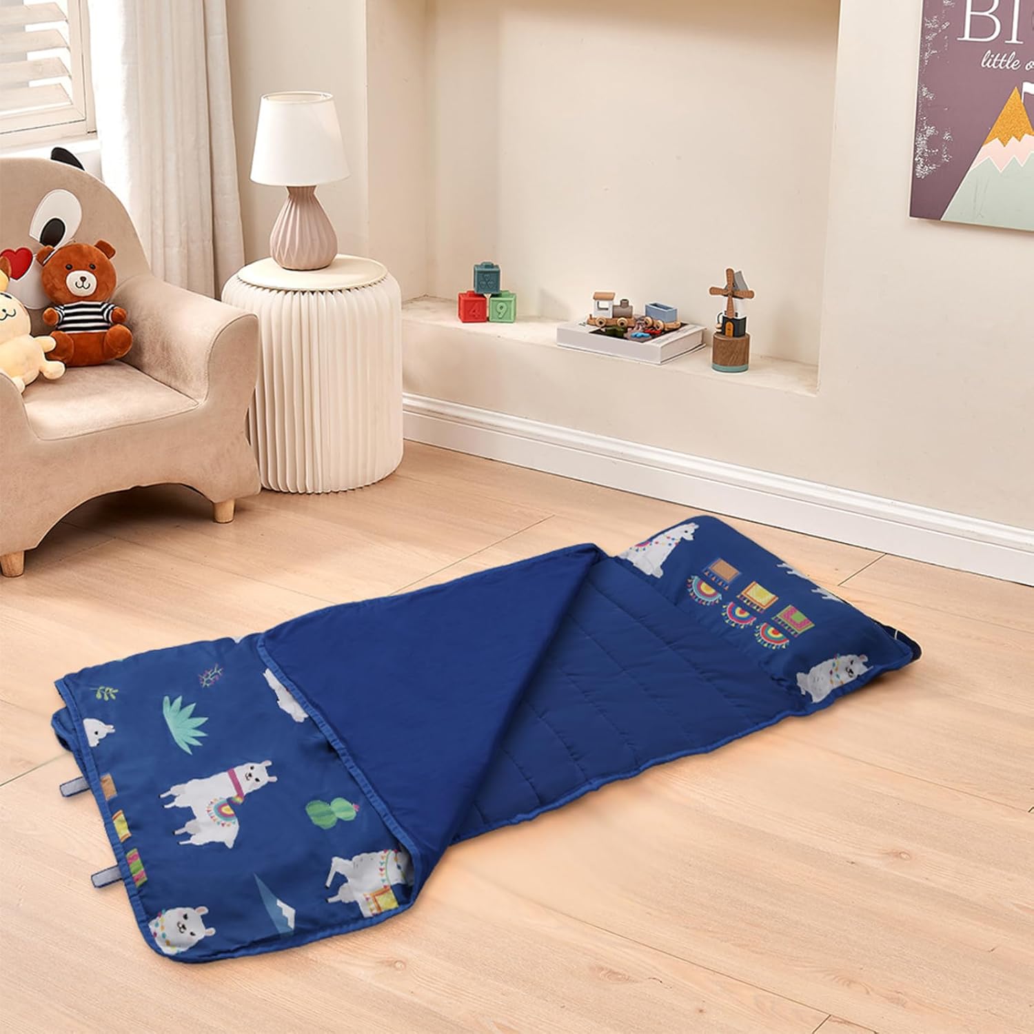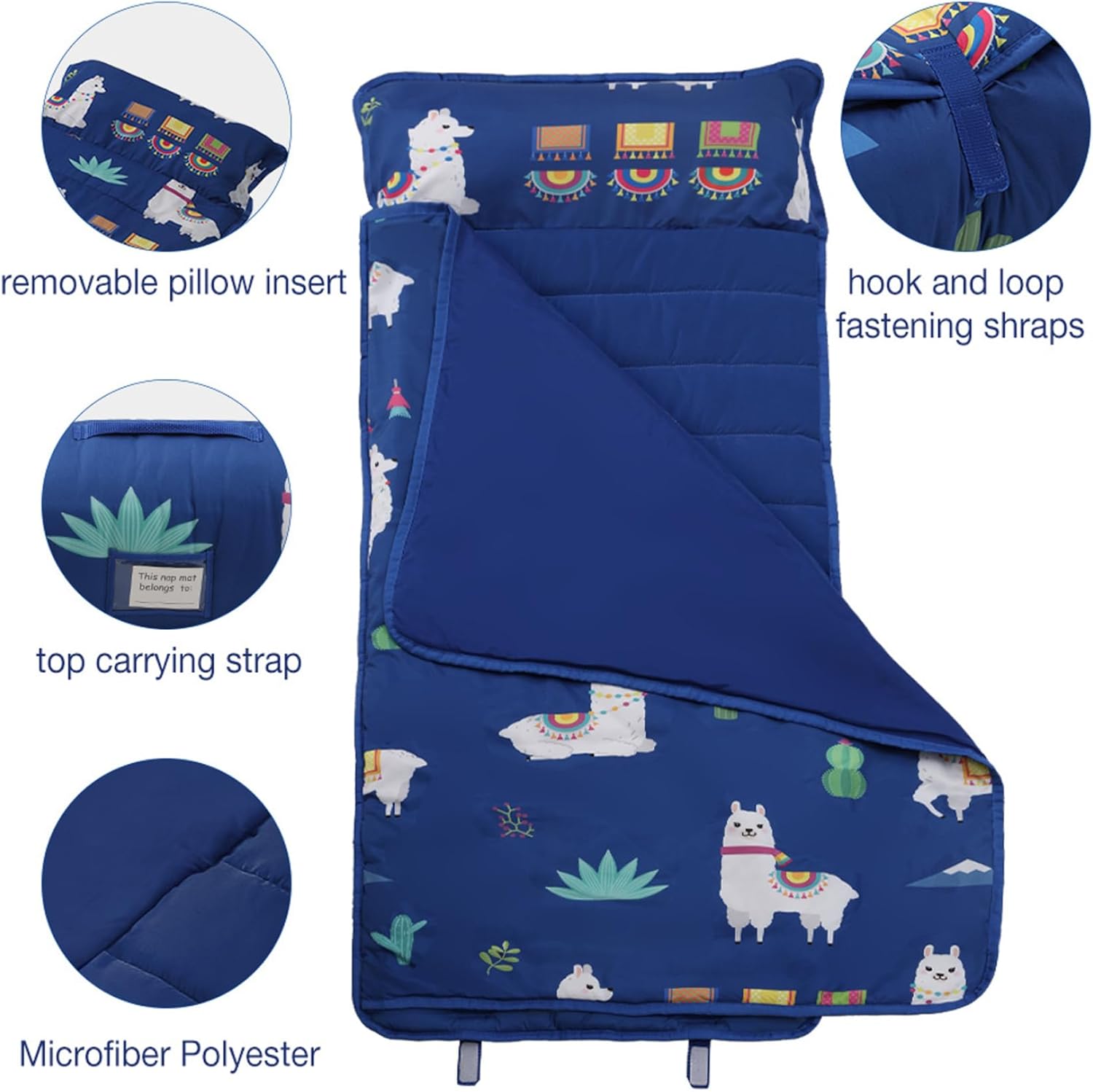 Morbido poliestere in microfibra: realizzato con tessuto in microfibra di alta qualità che risulta liscio e traspirante sulla pelle del tuo bambino, fornendo calore e morbidezza per sonnellini riposanti ovunque. Inserto del cuscino rimovibile: progettato per una facile pulizia e flessibilità, l'inserto del cuscino può essere rimosso per mantenere il tappetino fresco e igienico dopo ogni utilizzo, garantendo un comfort duraturo per il tuo bambino. Adorabile motivo a cartone animato con alpaca: caratterizzato da un delizioso design con alpaca, questo tappetino per il pisolino aggiunge divertimento al pisolino, aiutando i bambini a sentirsi rilassati e sicuri sia a casa che fuori. Arrotolabile e portatile: il design pieghevole e arrotolabile consente di riporre o trasportare facilmente il tappetino..Con comode cinghie di fissaggio a strappo e una tracolla superiore, è perfetto per i viaggi, l'asilo nido o la scuola materna. Design frontale con trapunta: il frontale integrato in stile trapunta crea un ambiente accogliente per dormire, così il tuo piccolo sente a suo agio come nel suo letto.
