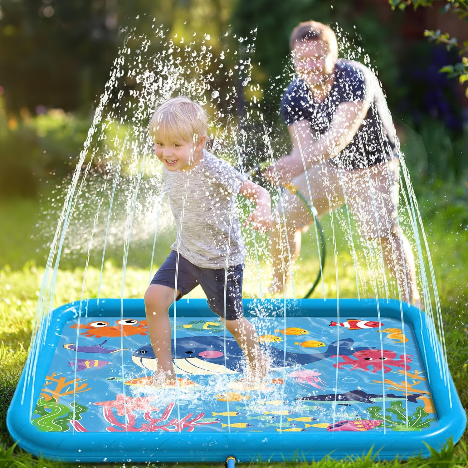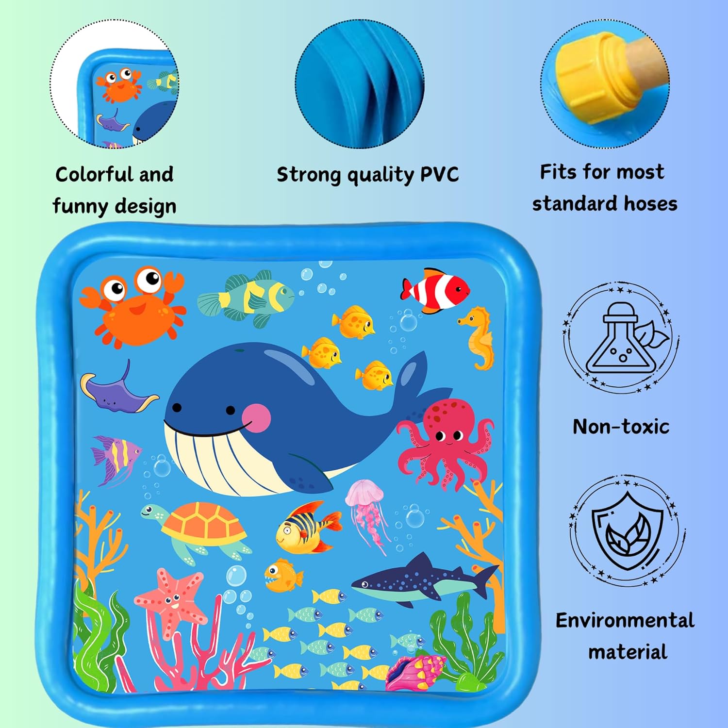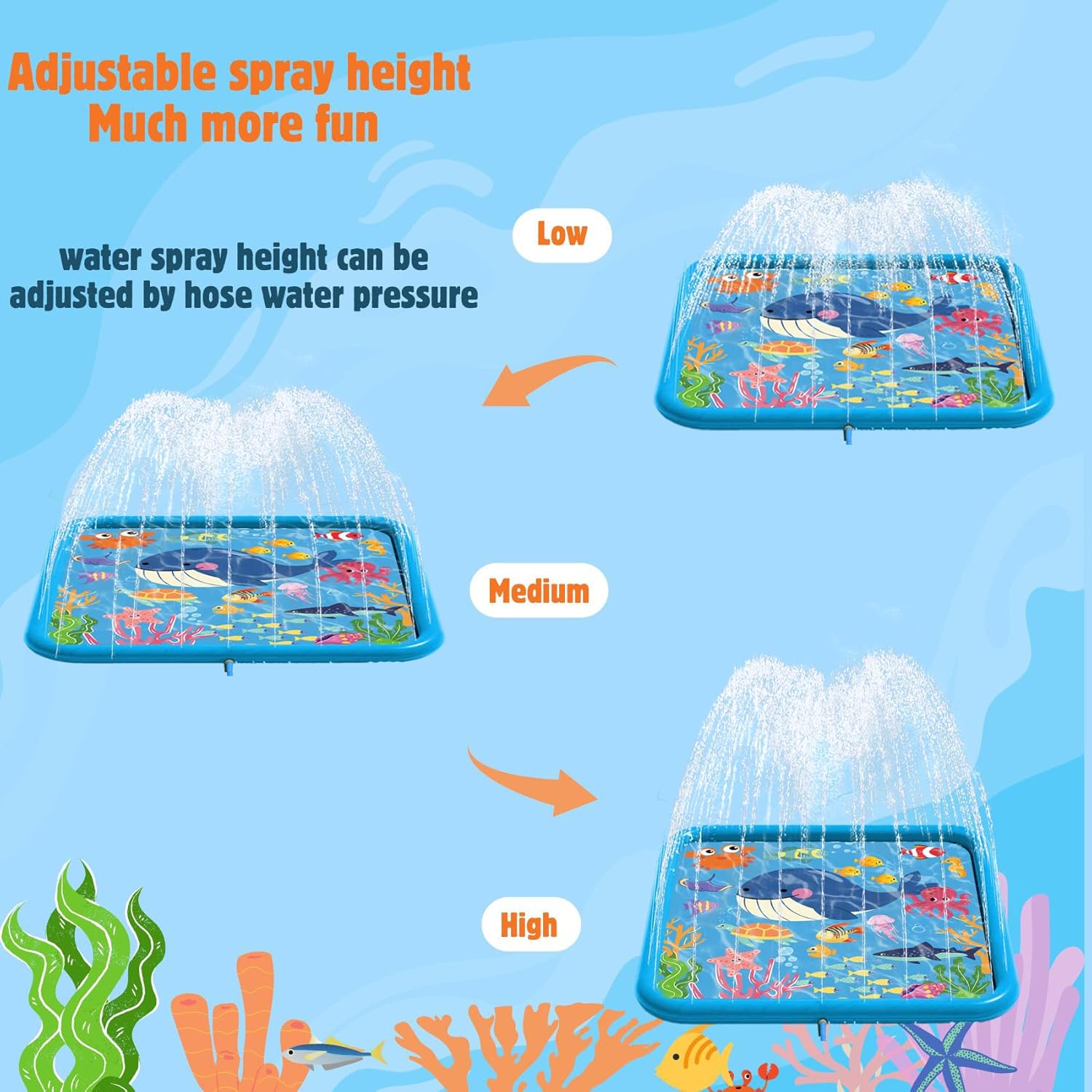 Design divertente e accattivante: il vivace design a tema squalo cattura l'attenzione dei bambini, rendendo il gioco dell'acqua emozionante e visivamente stimolante. Perfetto per le giornate in spiaggia, in giardino o per qualsiasi riunione di famiglia, questo tappetino da gioco incoraggia il gioco fantasioso. Tanto spazio: design acquatico da 170 * 170 cm, un perfetto giocattolo estivo per il relax. Il grande tappeto da gioco quadrato Shark Sprinkle e Splash Water incoraggia i bambini a essere fisicamente attivi divertendosi. Aiuta a sviluppare le capacità motorie generali, la coordinazione e l'interazione sociale mentre sguazzano, corrono e giocano all'aperto con gli amici. Materiali sicuri e durevoli: realizzato in PVC di alta qualità, questo tappetino per giochi acquatici è progettato per resistere ore di gioco attivo mantenendo i tuoi piccoli al sicuro. La sua struttura resistente gli consente di resistere a schizzi, cadute e intemperie senza compromettere la qualità. Facile installazione e pulizia: con un semplice collegamento a un tubo da giardino standard, il tappeto da gioco si gonfia e si riempie d'acqua in pochi minuti. La pulizia è altrettanto semplice: basta scaricare l'acqua e piegare il tappetino per riporlo, rendendo la vita più facile ai genitori. Ideale per tutte le età: adatto sia ai bambini che agli adulti, questo tappetino da gioco acquatico offre divertimento senza fine ai bambini di tutte le età. Il suo design spazioso consente il gioco di gruppo, rendendolo un complemento ideale per gite con gli amici, feste di compleanno o gite in famiglia, garantendo a tutti il divertimento!
