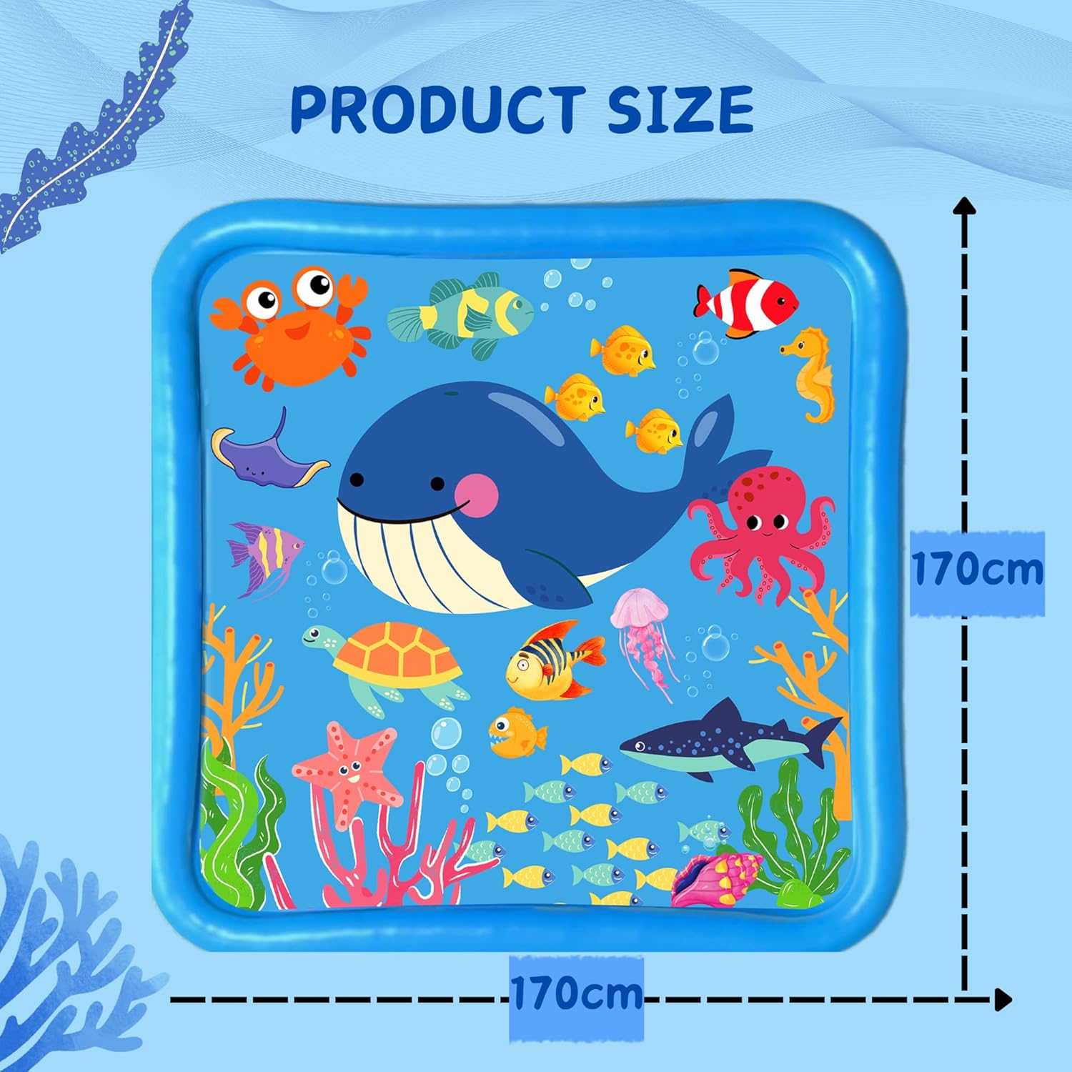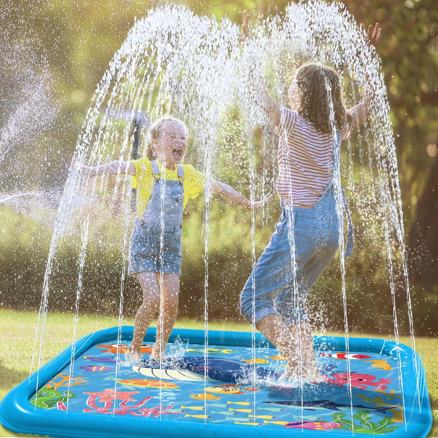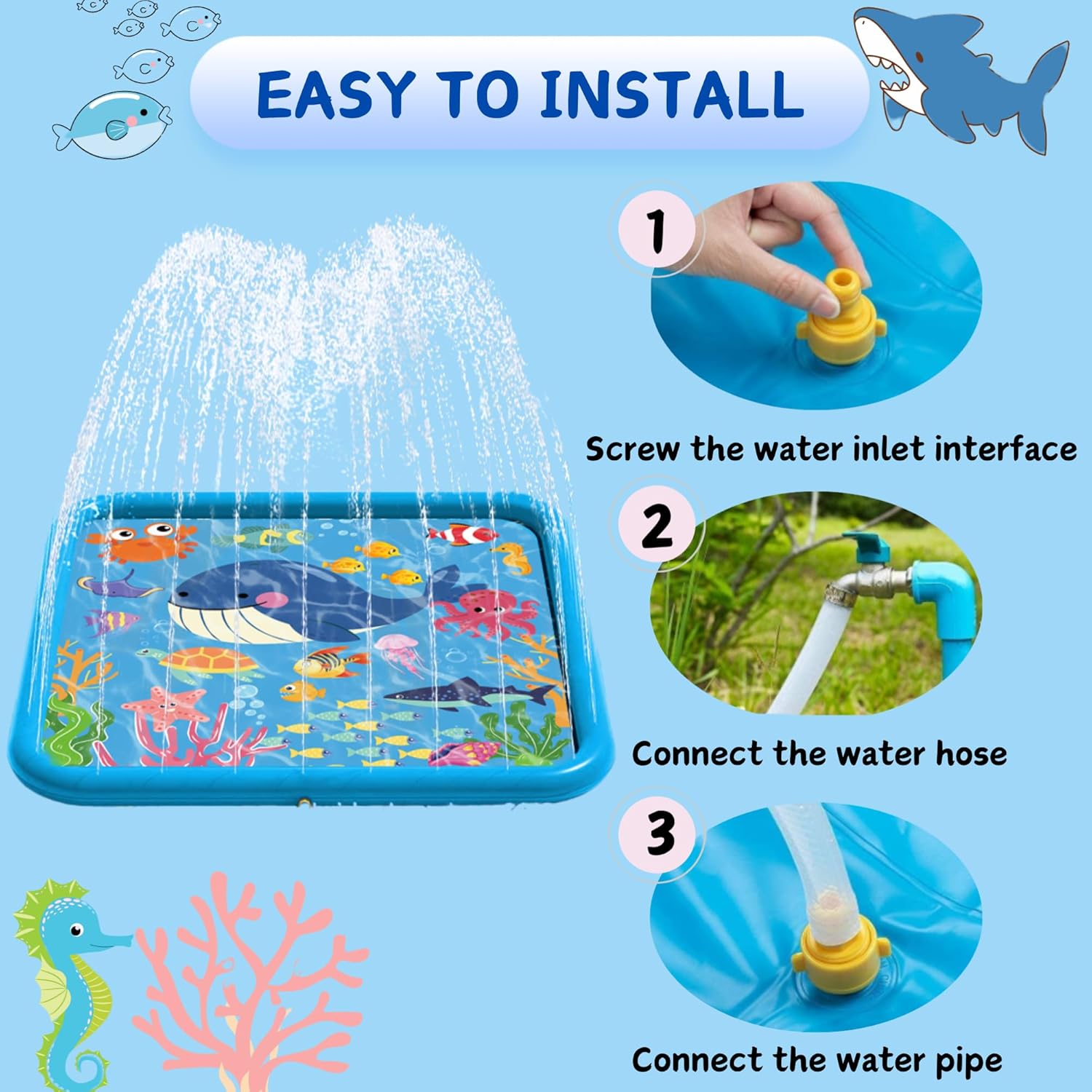Design divertente e accattivante: il vivace design a tema squalo cattura l'attenzione dei bambini, rendendo il gioco dell'acqua emozionante e visivamente stimolante. Perfetto per le giornate in spiaggia, in giardino o per qualsiasi riunione di famiglia, questo tappetino da gioco incoraggia il gioco fantasioso. Tanto spazio: design acquatico da 170 * 170 cm, un perfetto giocattolo estivo per il relax. Il grande tappeto da gioco quadrato Shark Sprinkle e Splash Water incoraggia i bambini a essere fisicamente attivi divertendosi. Aiuta a sviluppare le capacità motorie generali, la coordinazione e l'interazione sociale mentre sguazzano, corrono e giocano all'aperto con gli amici. Materiali sicuri e durevoli: realizzato in PVC di alta qualità, questo tappetino per giochi acquatici è progettato per resistere ore di gioco attivo mantenendo i tuoi piccoli al sicuro. La sua struttura resistente gli consente di resistere a schizzi, cadute e intemperie senza compromettere la qualità. Facile installazione e pulizia: con un semplice collegamento a un tubo da giardino standard, il tappeto da gioco si gonfia e si riempie d'acqua in pochi minuti. La pulizia è altrettanto semplice: basta scaricare l'acqua e piegare il tappetino per riporlo, rendendo la vita più facile ai genitori. Ideale per tutte le età: adatto sia ai bambini che agli adulti, questo tappetino da gioco acquatico offre divertimento senza fine ai bambini di tutte le età. Il suo design spazioso consente il gioco di gruppo, rendendolo un complemento ideale per gite con gli amici, feste di compleanno o gite in famiglia, garantendo a tutti il divertimento!