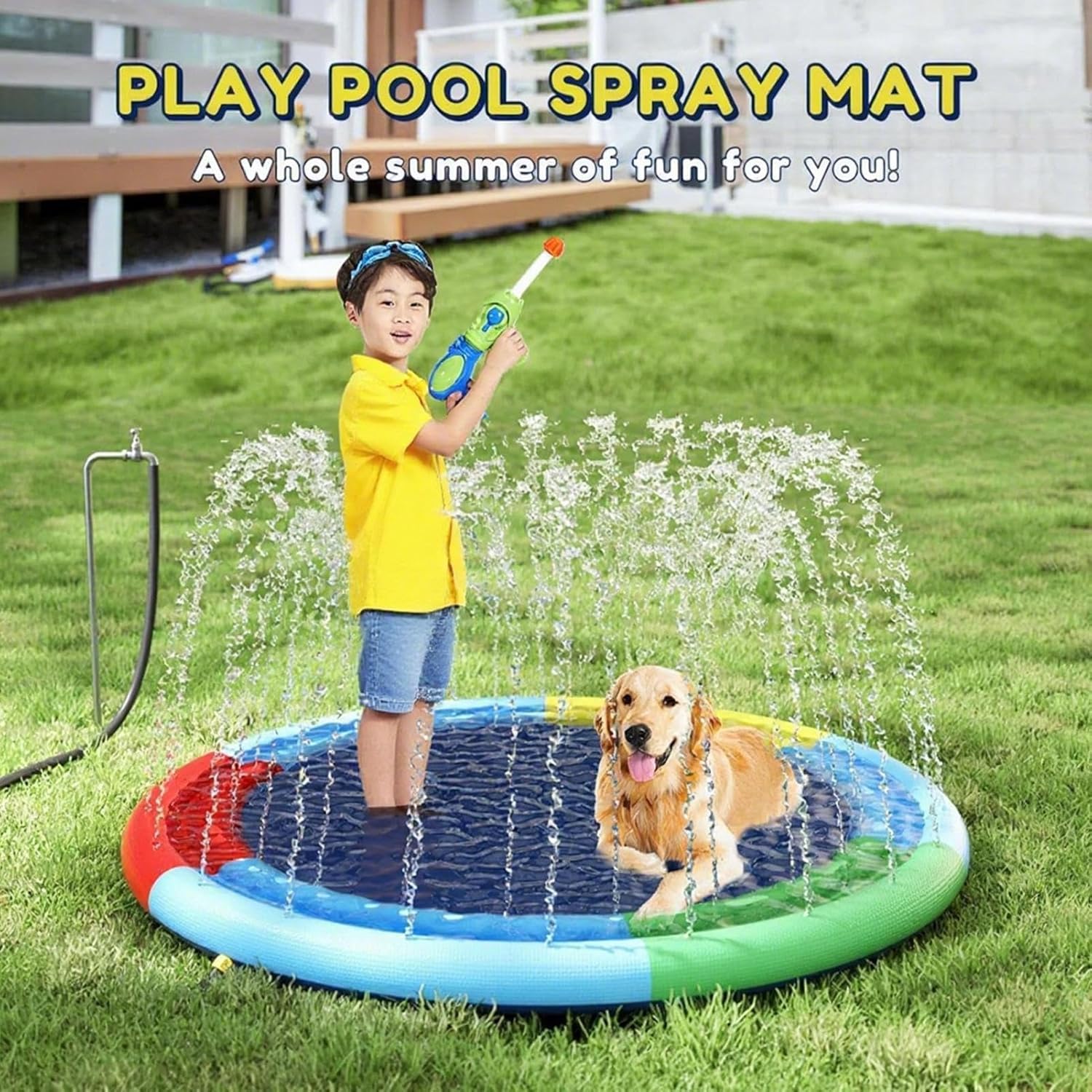 Costruzione Resistente e Affidabile: Materiale PVC robusto e anti-strappo garantisce struttura e longevità, offrendo esperienze sicure e stabili durante il gioco per bambini e animali domestici. Spazio Interattivo Acquatico: La superficie extra large permette a più bambini di giocare conraneamente, aggiungendo divertimento a feste in giardino e rafforzando legami familiari con esperienze condivise memorabili Flusso Regolabile: Con regolazione pressione, altezza e portata d'acqua, oltre a compatibilità multi-tubo, garantisce prestazioni ottimali per soddisfare utenti di tutte le età con esperienze idriche personalizzate Tecnologia Antiscivolo: Base rinforzata con antiscivolo integrato per garantire trazione perfetta e superficie stabile durante tutto il di gioco Drenaggio Ottimizzato:Fori di scarico posizionati strategicamente eliminano l'acqua in eccesso immediatamente. Costruzione leggera e pieghevole unisce praticità a facile riposo, garantendo portabilità senza sforzo e ottimizzazione degli spazi.