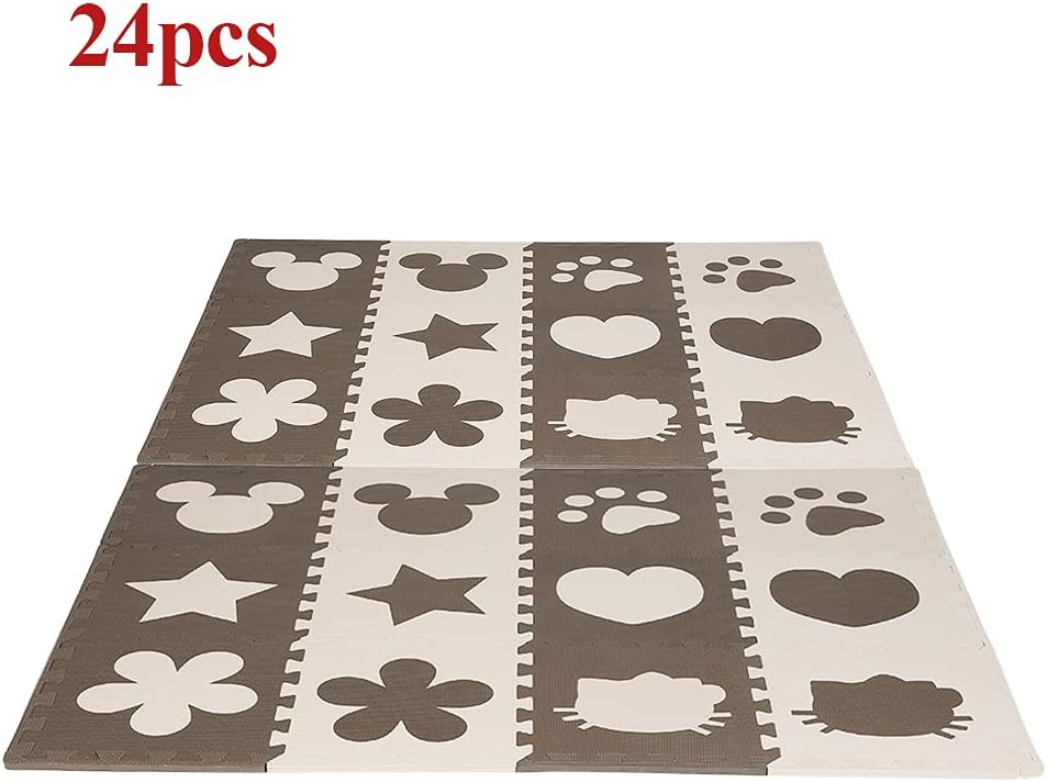 Tappeto in schiuma con 24 pannelli di 32,5 x 32,5 x 1 cm. In morbida schiuma, elastica, divertente, questo tappeto da gioco offre un ambiente divertente e sicuro per il vostro bambino, e aggiunge un look fantastico a qualsiasi stanza. 6 modelli di disegno animato. Questo tappeto puzzle in schiuma ha 6 modelli: Topolino, Love, Dog Paw, Petals, Cat e Pentagram, che possono stimolare lo sviluppo intellettuale dei bambini e divertirsi. Schiuma di etilene e acetato di vinile. Ogni cuscino è fatto di schiuma EVA sicura e atossica, che può fornire una superficie di pavimento confortevole e durevole per la casa o la classe. Spessore 1 cm. Con lui, i bambini possono sedersi sul tappeto da pavimento e giocare comodamente, lasciando un pavimento duro e una superficie fredda. Questo tappeto da gioco per bambini è perfetto per le famiglie, le sale giochi, le sale fitness, le scuole e le scuole. Nota: non adatto ai bambini di età inferiore ai 24 mesi, perché possono separarli, il che può rappresentare un rischio per la sicurezza. Si prega di non lasciare il bambino senza sorveglianza.
