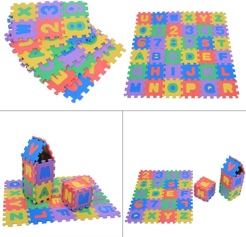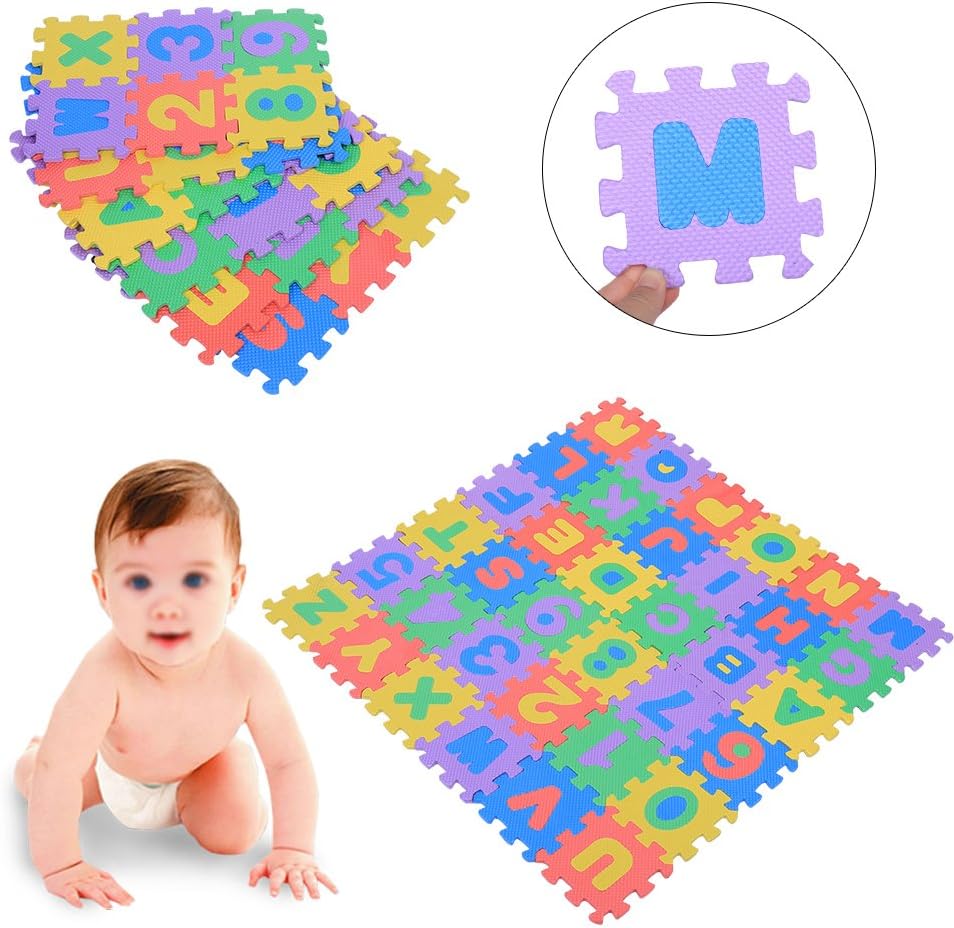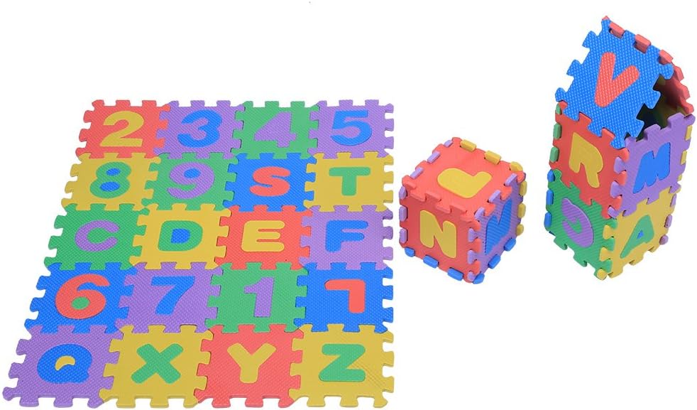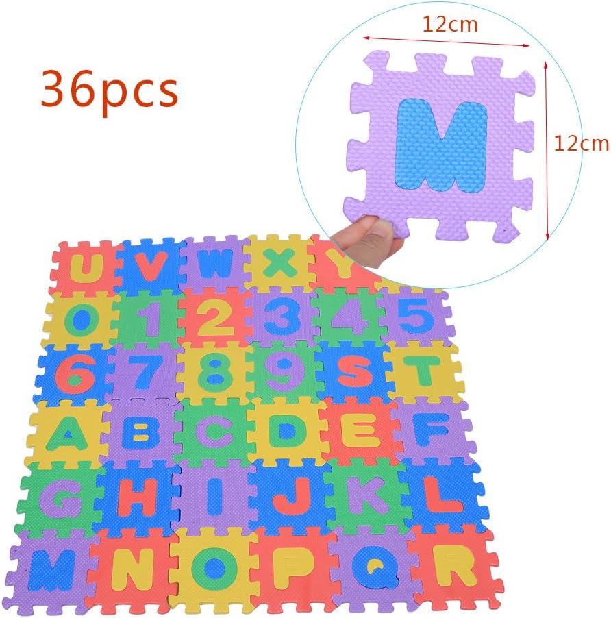 [Puzzle da gioco non tossico per bambini] - Tappetino in schiuma EVA ecologico, morbido, sicuro, sano e durevole. Leggero, facile da usare e conservare, un regalo perfetto per i vostri bambini. [Previene lesioni] - Con schiuma EVA ad alta densità, lo spesso tappetino da gioco premium per pavimento imbottito comodamente colonna vertebrale, fianchi, ginocchia e gomiti su pavimenti duri. Con superfici antiscivolo su entrambi i lati, questo tappetino puzzle offre un eccellente vantaggio antiscivolo per prevenire lesioni [Buon divertimento] - Tutti i tappetini da 36 pezzi possono essere assemblati in un grande tappetino per bambini che giocano o gattonano, e alcuni dei 36 pezzi possono anche essere assemblati dai bambini in diverse forme di giocattoli, ad esempio una piccola casa, una scatola quadrata e successiva. [Early Educational Toy] - Motivo con numeri e lettere, tappetino da gioco in schiuma atossica può aiutare efcemente i vostri bambini a imparare i numeri e le lettere, giocare e imparare allo stesso tempo e aumentare il loro interesse per l'apprendimento. Ottimo regalo di compleanno o regalo di Natale per lei. [Arricchisci la tua immaginazione] - Il cuscino protettivo per pavimento in schiuma EVA può attirare l'attenzione dei bambini, che può sviluppare gli spiriti esplorativi del bambino, arricchire la sua immaginazione ed esercitare le sue abilità pratiche. I colori luminosi e multipli possono stimolare il riconoscimento dei colori del bambino.