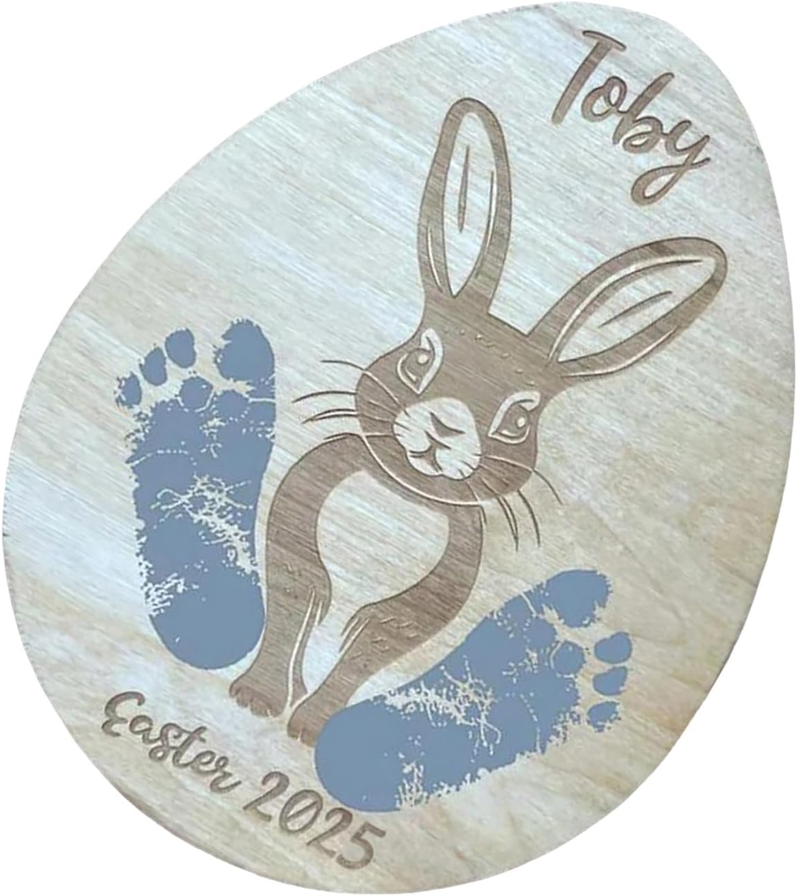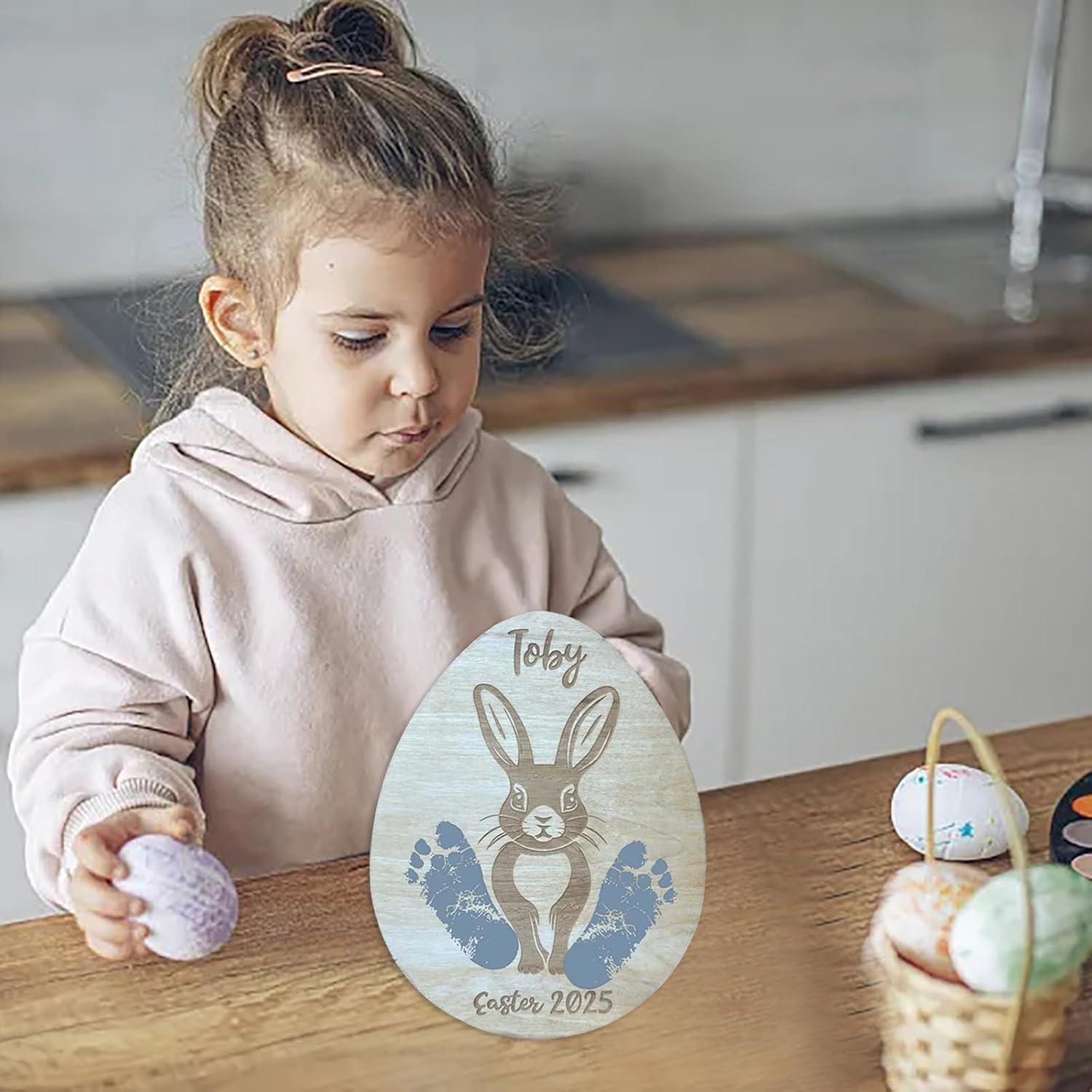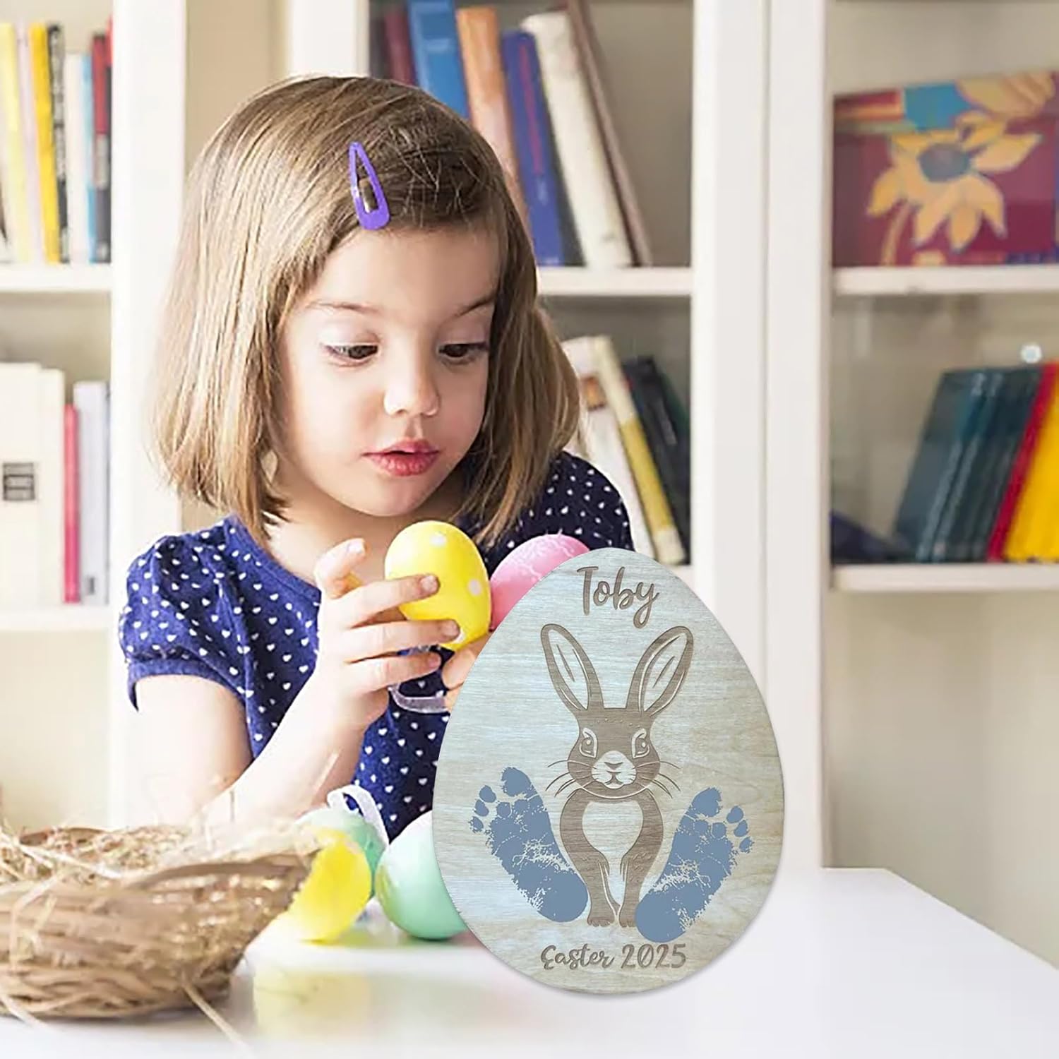 Cattura la memoria del tuo bambino prima Pasqua con questo cartello artistico con impronta pasquale o impronta di mano, un elegante ricordo realizzato in legno e presenta un design 3D di conigli neonati Queste pietre miliari in legno robuste e facili da usare sono finemente intagliate a mano, garantendo che ogni pezzo sia unico e stabile, per preservare momenti preziosi Ideale per i nuovi genitori, famiglie in attesa e donatori che cercano di festeggiare l'arrivo di un bambino, questo cartello artistico è memorabile Per decorazioni per la cameretta dei bambini, baby shower o come sfondo per album fotografici di famiglia, questo pezzo funzionale aggiunge un tocco individuale a qualsiasi ambiente Questo mestiere consente di creare impronte personalizzate o impronte delle mani, rendendolo una preziosa aggiunta alla tua collezione di ricordi per bambini
