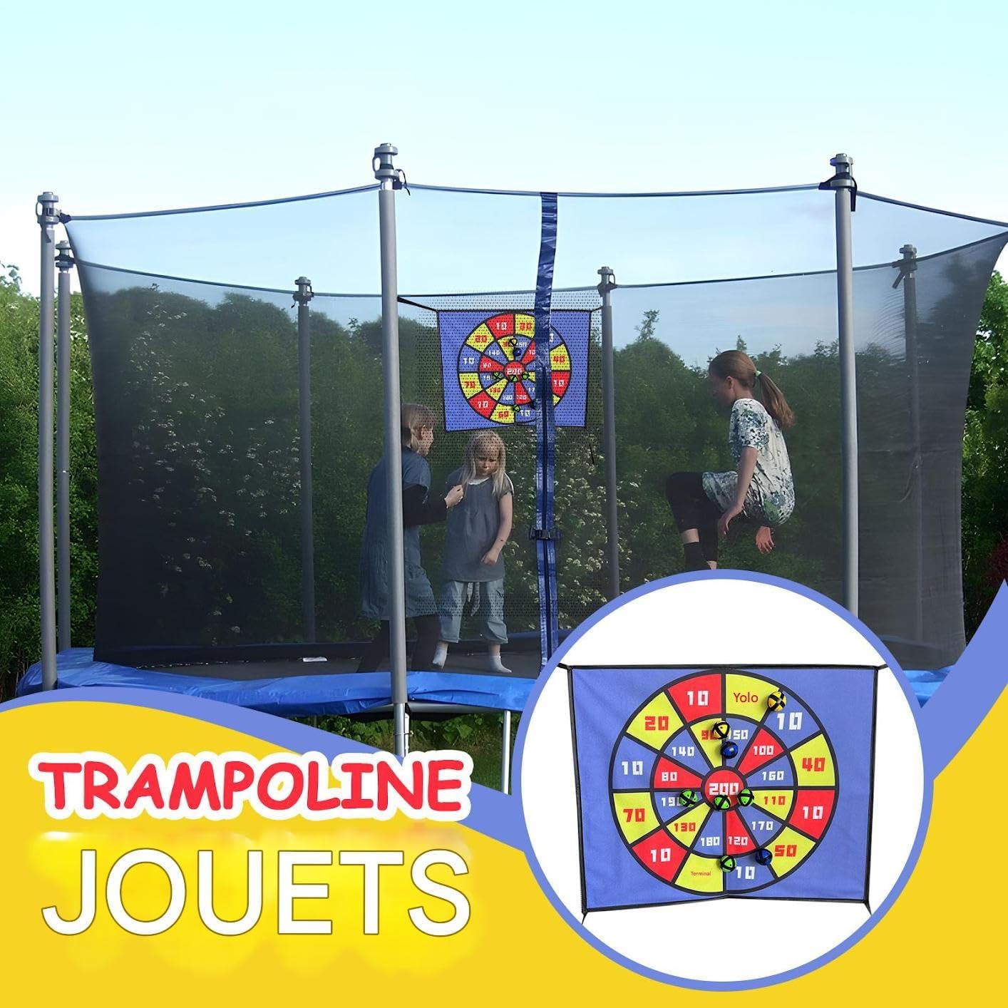 Gioco attivo di salto: sviluppa la coordinazione con un'esperienza giocosa che combina trampolino e lanci di palline adesive sul bersaglio, con sfide stimolanti che trasformano ogni salto in un esercizio divertente e gratificante per le età Condivisione memorabile: grazie al suo perfetto equilibrio tra competizione sana e cooperazione, questo gioco di freccette crea esperienze familiari uniche. Il sistema di punteggio adattabile consente parti stimolanti per età, rafforzando le relazioni attraverso il divertimento del gioco. Maggiore durata: bordi lucidati progettati per prevenire incidenti, costruzione rinforzata resiste all'usura quotidiana. Le palline morbide ma resilienti garantiscono ore di gioco senza alterazioni grazie alla loro robusta lavorazione Universalità pratica: design universale che soddisfa sia gli appassionati occasionali che gli appassionati regolari. Compatibile con diversi stili di lancio mantenendo la massima sicurezza grazie ai bordi arrotondati. Ricordo indimenticabile: genera ore di risate condivise con la famiglia o gli amici. Perfetto per animare spuntini di compleanno o feste a tema pur essendo un'esperienza di gioco collettiva da conservare nei tuoi album di ricordi.
