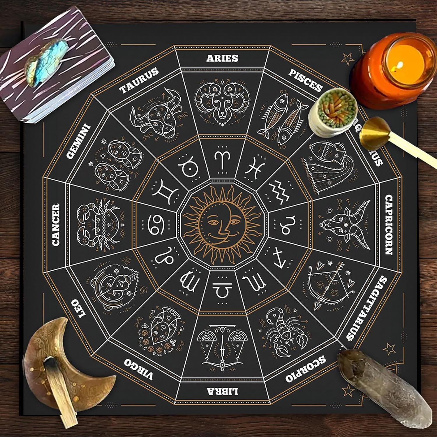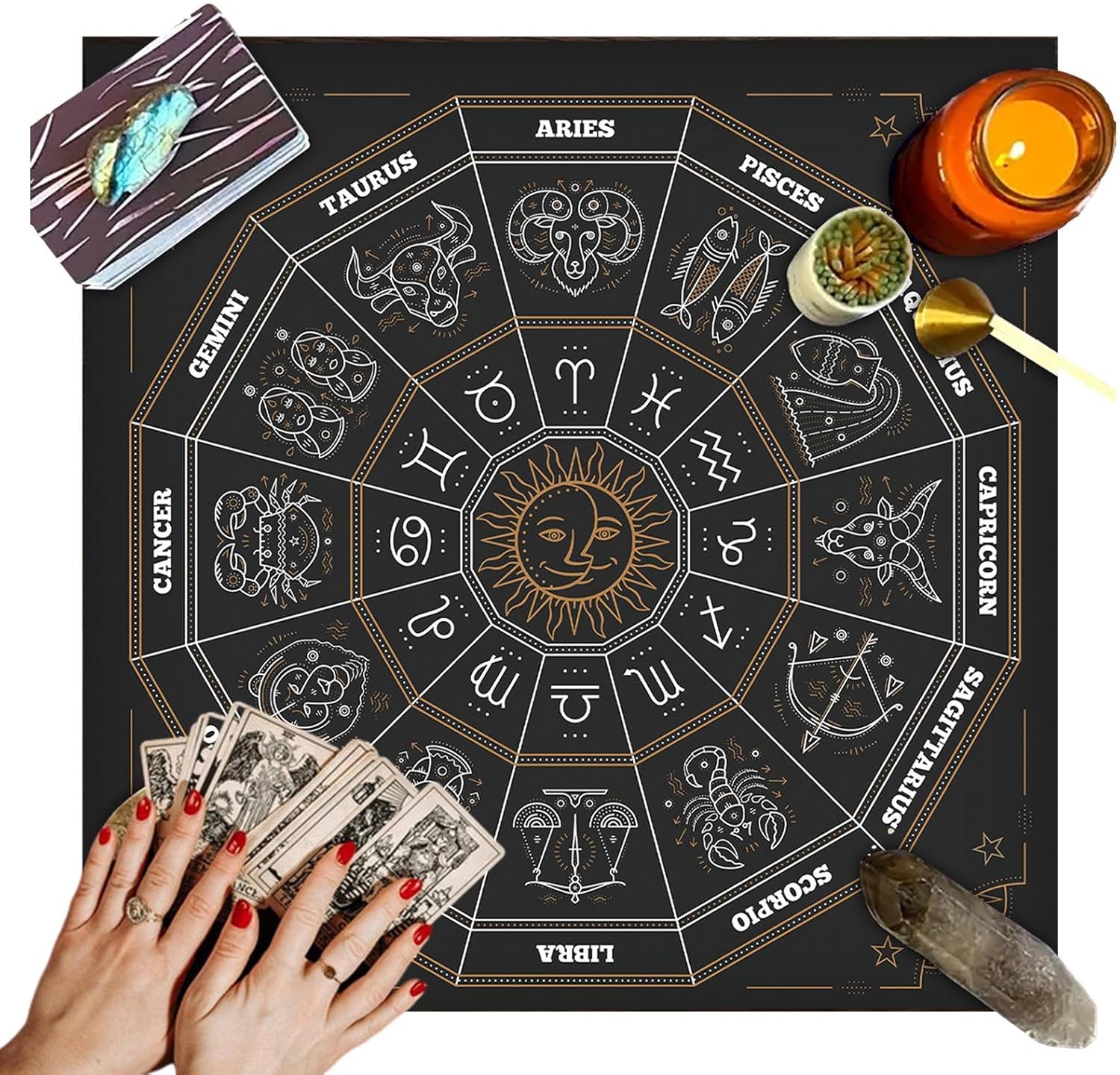 Aftermante: con una raffinata fattura e un disegno preciso, la nostra tovaglia di tarocchi fornisce un modello chiaro che è per i principianti che desiderano migliorare le loro letture dei tarocchi. Funzionale ed elegante: il tuo gioco dei tarocchi con la nostra tovaglia di tarocchi. Misurando circa 19*19 pollici, è per qualsiasi altare o tavolo. Dimensioni ragionevoli lo rende adatto a tutte le occasioni, che si tratti di un gioco per feste o decorazioni per la casa. Perfezione in velluto: la nostra tovaglia per tarocchi, realizzata con un eccellente tessuto di velluto, offre una durata confortevole e resistente all'usura. Ideale per le letture a start e le pratiche spirituali, migliora l'atmosfera con la sua estetica divina. Copritura da tavolo ispirata ai tartot: svelare il fascino dei tarocchi con la nostra incantevole copertura del tavolo. per l'attività di lettura delle carte dei tarocchi, questo Mincesrious Design offre un ambiente straordinario che migliora i tuoi diffusioni e rituali dei tarocchi. Uso versatile: prendi le letture dei tarocchi all'aperto con questa tovaglia comodamente pieghevole. per le attività all'aperto o l'uso a casa, pura qualsiasi tavolo e fornisce superfici lisce per le tue carte.