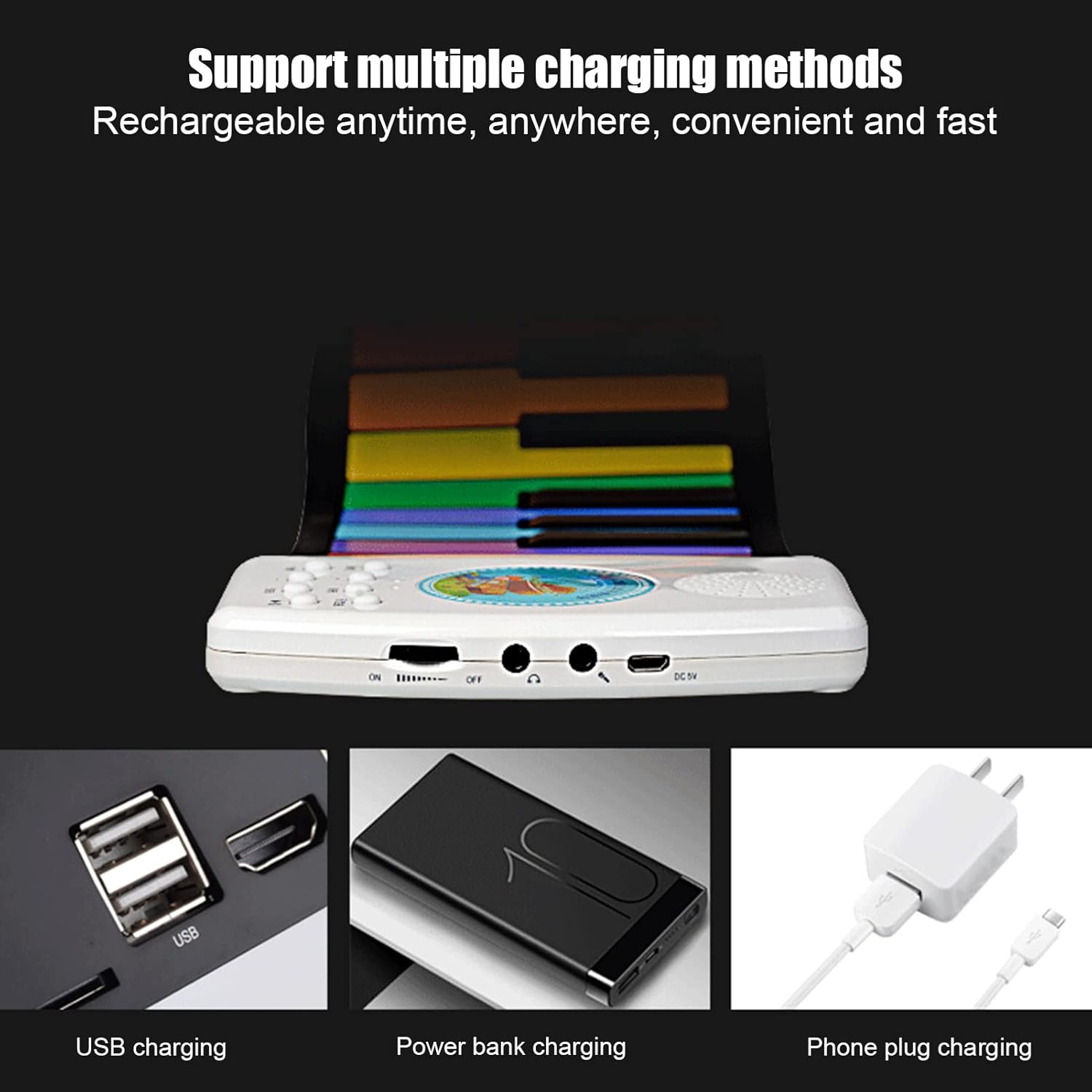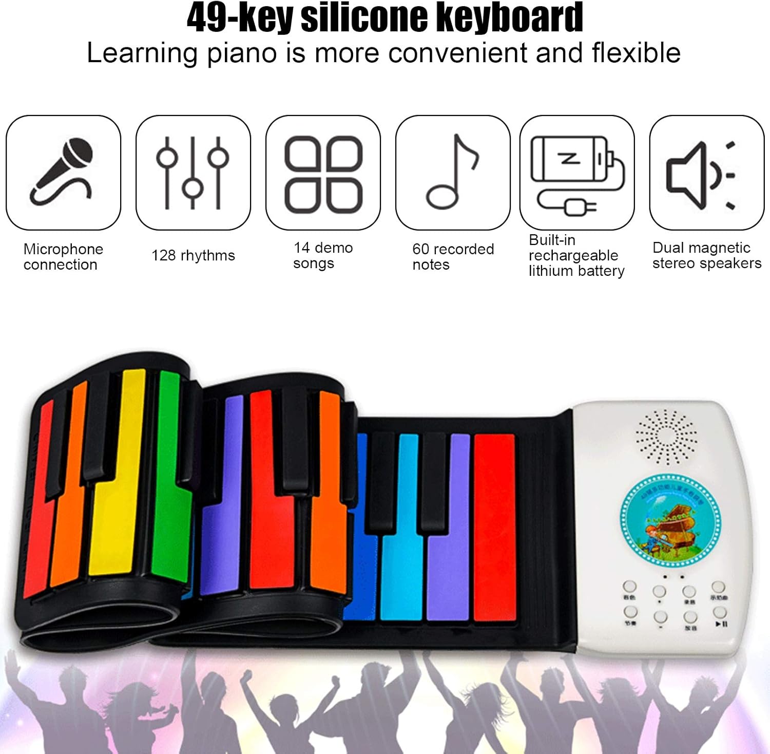 【】 Questa tastiera portatile per pianoforte è un fantastico per ogni occasione tra cui Capodanno, Natale, Pasqua e Festival Springs. Le sue caratteristiche divertenti e coinvolgenti delizieranno sicuramente i bambini e incoraggeranno il loro viaggio musicale. 【Caratteristiche versatili】 Il pianoforte per tastiera roll -up vanta 49 chiavi simulate, 14 canzoni dimostrative, 47 toni e 128 ritmi, offrendo un'esperienza di piano autentica sia per i principianti che per i giocatori esperti. Questa varietà consente l'esplorazione musicale creativa. 【Uso di lunga durata】 dotato di una batteria resabile integrata, la tastiera a piano pieghevole offre fino a 4 ore di gioco continuo dopo una SS di 2,5 ore. Goditi lunghe sessioni musicali senza interruzioni o il fastidio della frequente ricarica. 【Design innovativo】 Con il suo design romanzo e portatile, il piano pieghevole può essere facilmente arrotolato, rendendolo ideale per i musicisti in movimento. È anche facile da pulire e mantenere, sostenendo che puoi goderti la musica ovunque senza problemi. 【Strumento di apprendimento】 Progettato per i principianti, il piano della tastiera portatile aiuta gli utenti a coltivare un senso di ritmo e coordinamento. Permette loro di cogliere le abilità di gioco fondamentali e sviluppare una comprensione più profonda della teoria della musica in modo divertente.