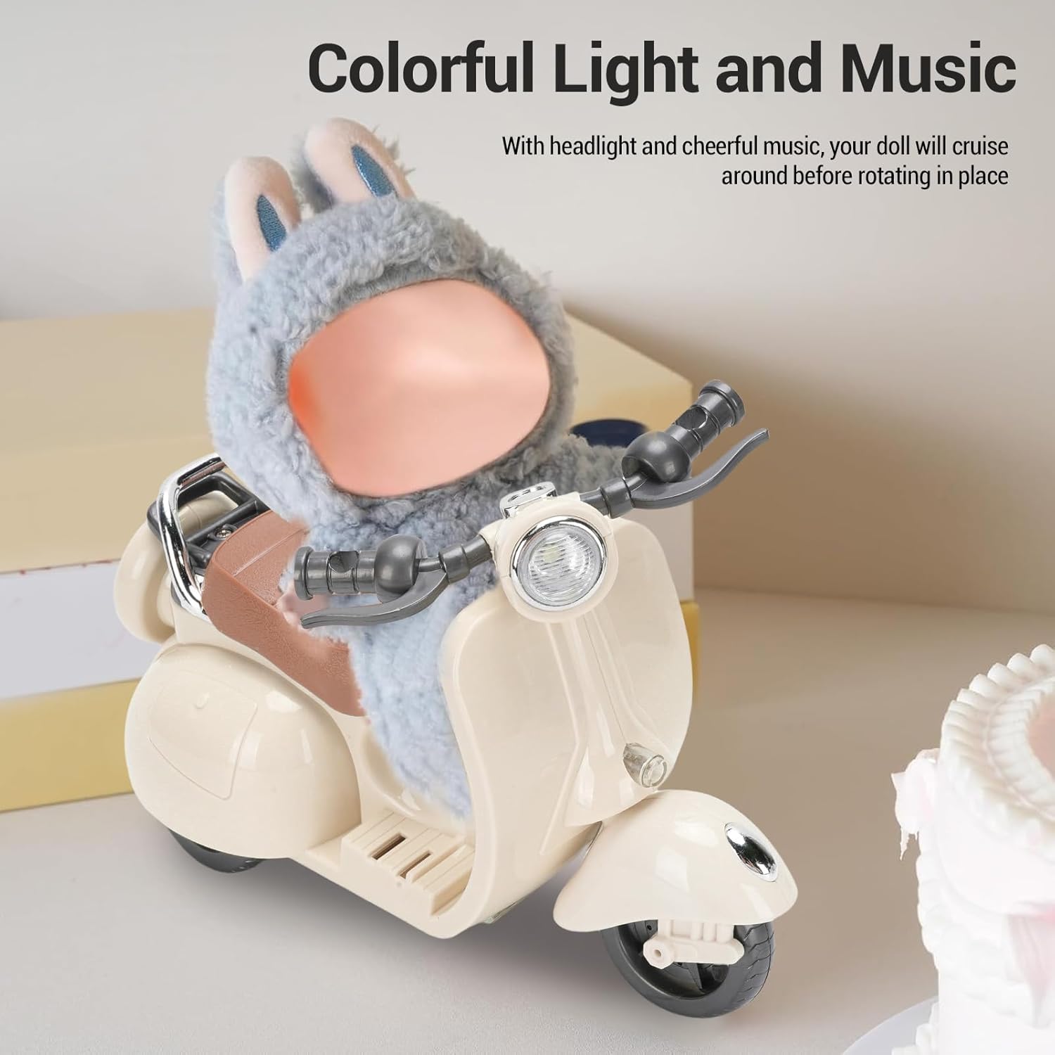 [Materiale di alta qualità] realizzato in ABS durevoli, questo giocattolo scooter è costruito per durare, con ruote rotanti lisce per un facile movimento su qualsiasi superficie. [Ispira il gioco immaginativo] Creatività con questo veicolo scooter, permettendo alle tue bambole di brillare e creare momenti di narrazione divertenti. [Musica e luci coinvolgenti] La tua bambola carina può godersi un giro sullo scooter con luci lampeggianti e musica allegra, offrendo un'esperienza emozionante. [Decorazione versatile] Migliora il tempo di gioco e aggiungi fascino a qualsiasi spazio con questo mini scooter per bambole che funge anche ornamento desktop accattivante. [Design adorabile e spazioso] Questo mini monopattino elettrico per bambole è per contenere bambole o action figure, aggiungendo stile al tuo arredamento.