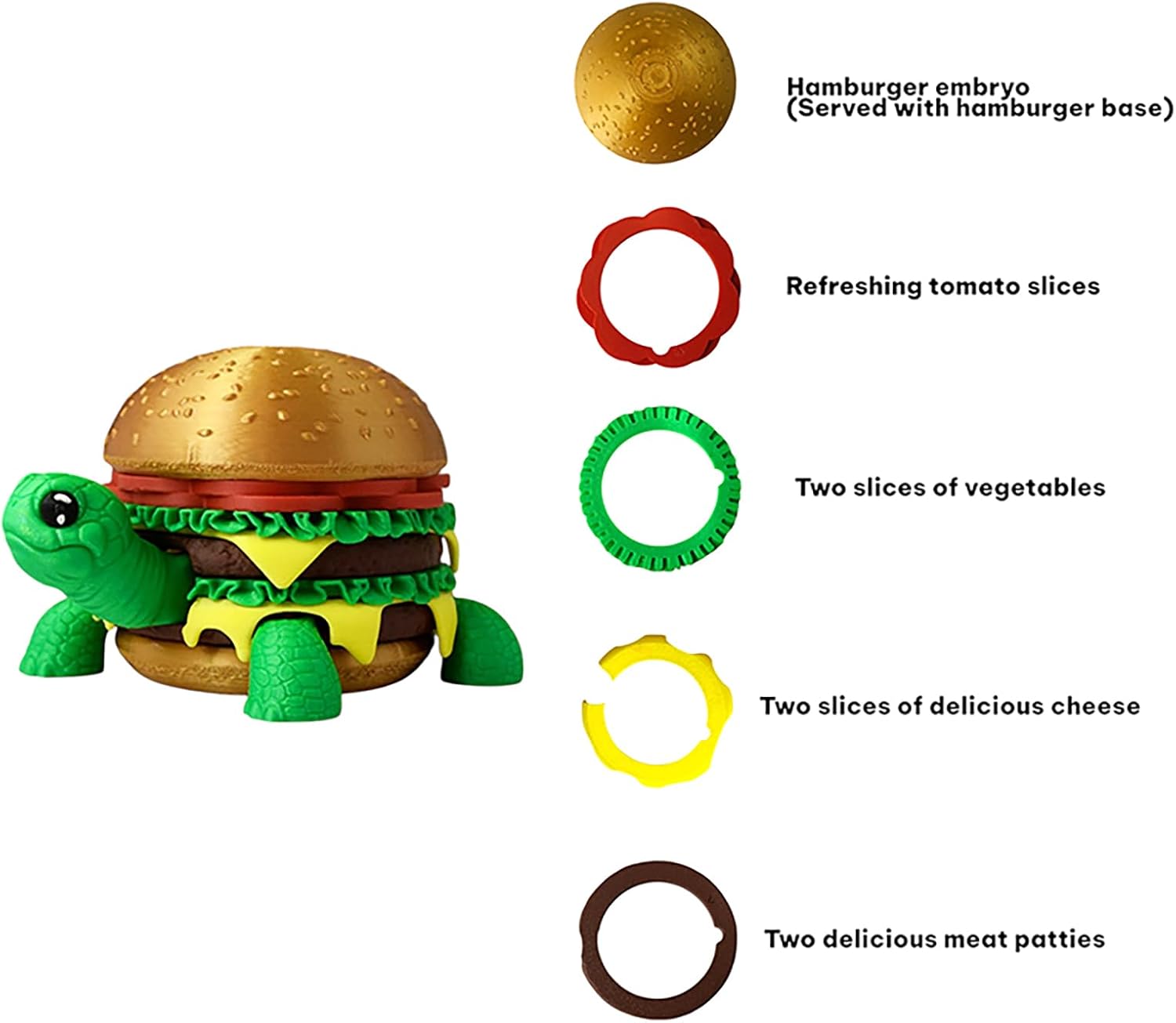 Design creativo: unico giocattolo per hamburger a forma di tartaruga con parti staccabili che possono essere assemblate in una deliziosa creazione di hamburger Dimensioni: dimensioni compatte del desktop che misurano 2,36 pollici di larghezza per 2,44 pollici di altezza, perfette per la visualizzazione o il gioco Gioco interattivo: include più pezzi staccabili: panino, fette di pomodoro, verdure, fette di formaggio e polpette di carne per un divertente assemblaggio pratico Appello decorativo: affascinante ornamento desktop stampato in 3D con un vivace design a tartaruga verde con texture dettagliate e componenti realistici per hamburger Costruzione: giunti mobili realizzati con precisione consentono il posizionamento, mantenendo la durata per il montaggio e la visualizzazione ripetuti