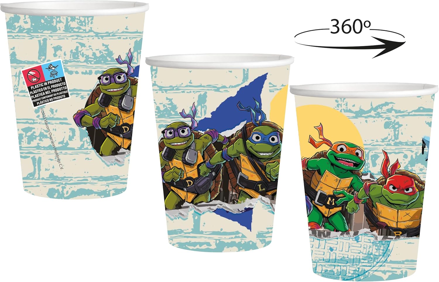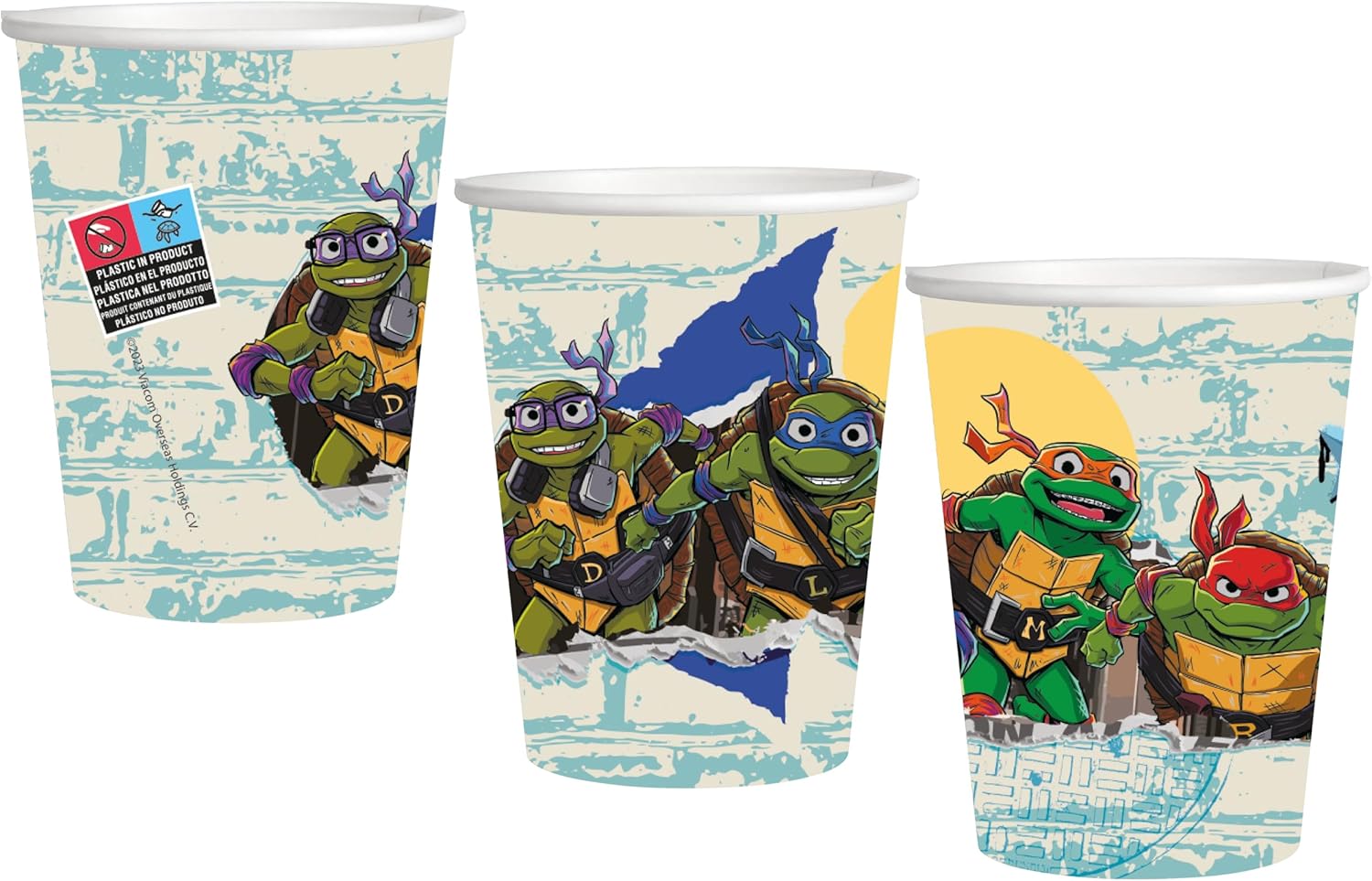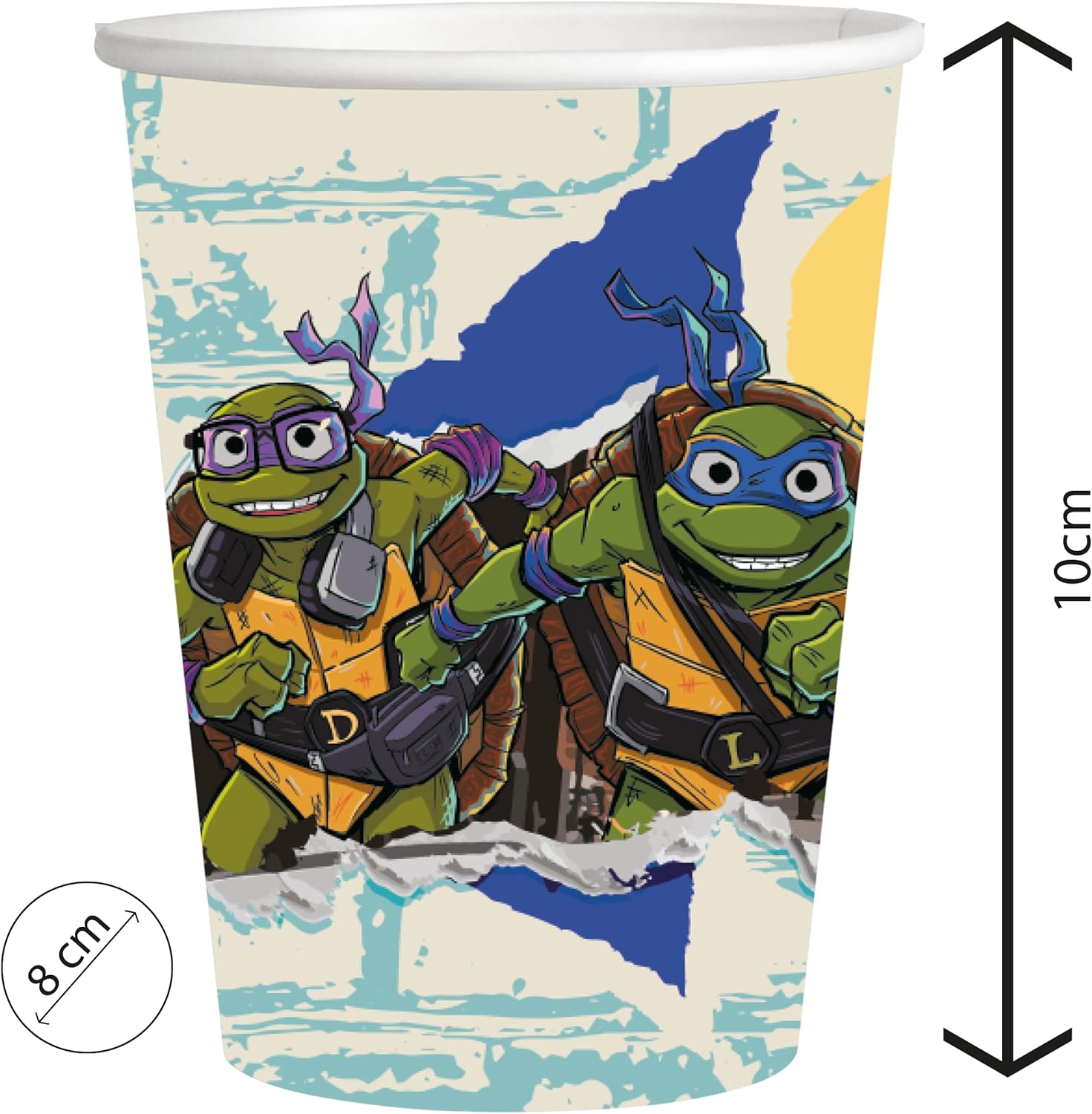 TAZZE NINJA TARTARUGHE. Le tazze sono in cartone, resistenti, colorate ed ecologiche. Ogni confezione contiene 8 bicchieri con una capacità di 250 ml. Set di 8 Bicchieri: Include 8 bicchieri monouso da 250 ml, perfetti per servire bevande ai bambini. Design Tartarughe Ninja: Decorati con i personaggi delle Tartarughe Ninja Mutanti, ideali per feste a tema. Materiale di Alta Qualità: Realizzati con materiali resistenti e sicuri per i bambini. Perfetti per Feste di Compleanno: Aggiungi un tocco speciale alla festa di compleanno dei tuoi bambini. Facili da Smaltire: Monouso per una pulizia rapida e senza problemi.