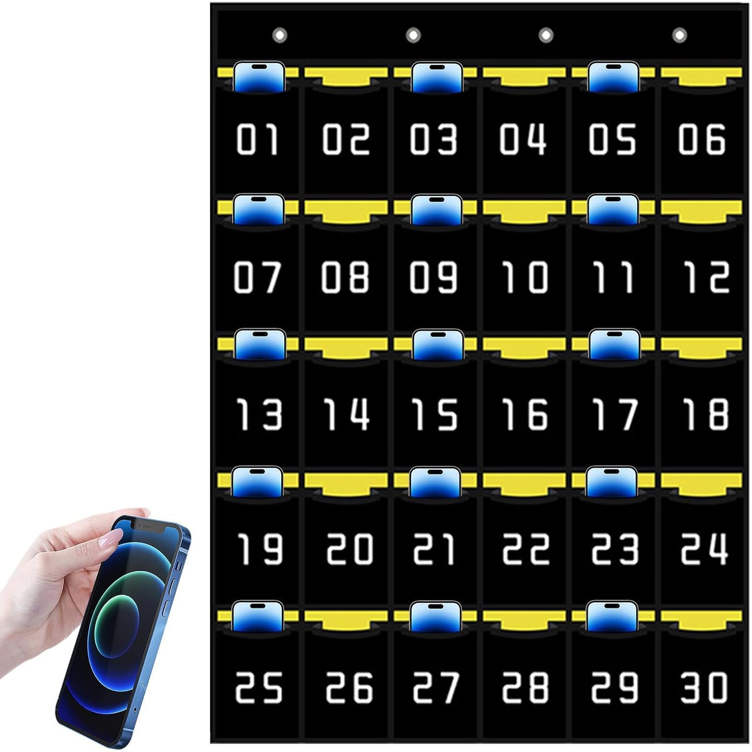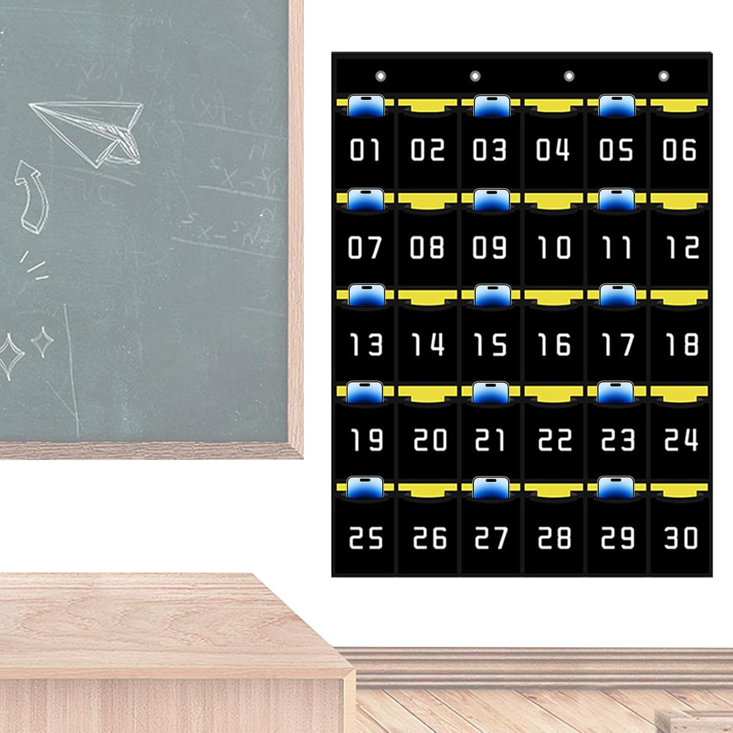 Comodo accesso: il nostro proprietario di telefono in classe ha tasche numerate per organizzare facilmente il telefono, in modo da avere un accesso rapido ai dispositivi quando ne hai bisogno. Rimani organizzato ed efficiente per un ambiente di classe più produttivo. Organizzazione multiuso: aumenta la tua classe con il nostro proprietario multifunzionale. Conserva smartphone, carte, chiavi, calcolatrici, penne e gomme per lavagna in un unico posto. Raggiungi uno spazio aerodinamico e coerente per lezioni efficaci. Comodo compagno di classe: semplifica la tua routine di insegnamento con il nostro supporto per telefono. Installalo senza sforzo con 4 strumenti metallici Hooks-No-tools che sono necessari. Tieni il telefono vicino per essere comodo in classe. AMPIA APPLICAZIONI: Migliora la comunicazione e l'accessibilità con il nostro supporto per telefono, perfetto per una varietà di impostazioni, tra cui sale conferenze, ripostigli scolastici per cellulari scolastici e sale di allenamento. Non facile da rompere: il nostro supporto per telefono in classe è costruito con un tessuto non tessuto ispessito realizzato in tessuto di alta qualità ed è eccezionalmente resistente e anti-rottura. La superficie facile da pioggia garantisce un ambiente educativo igienico e organizzato.