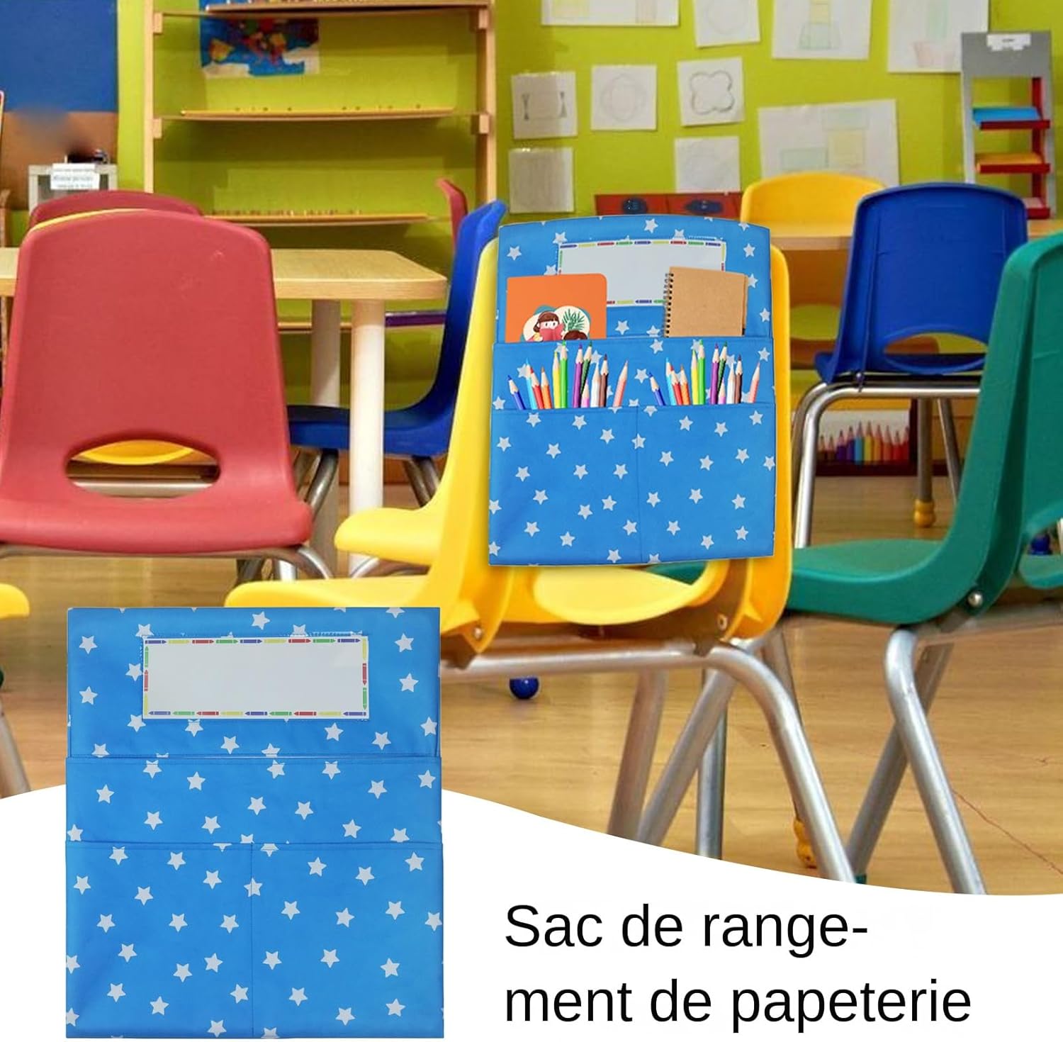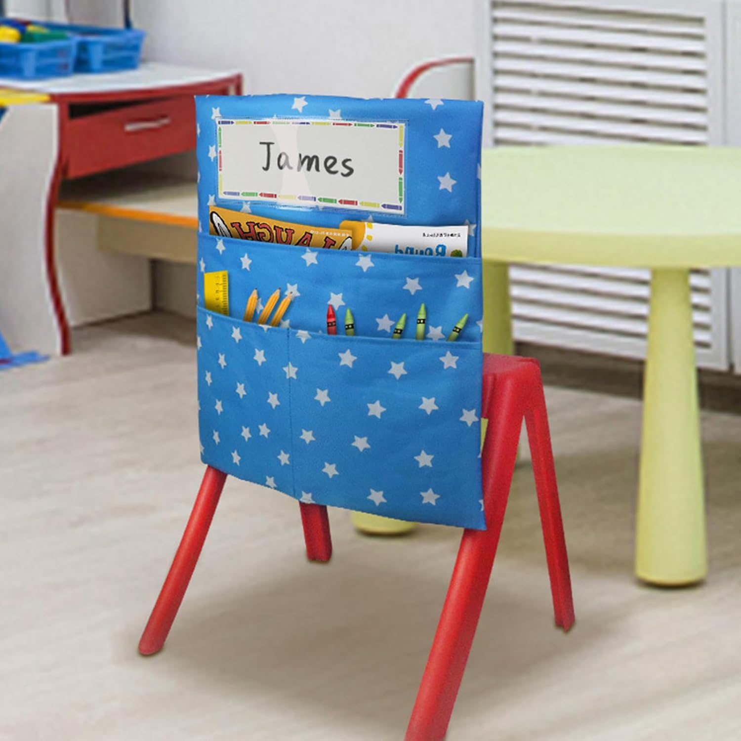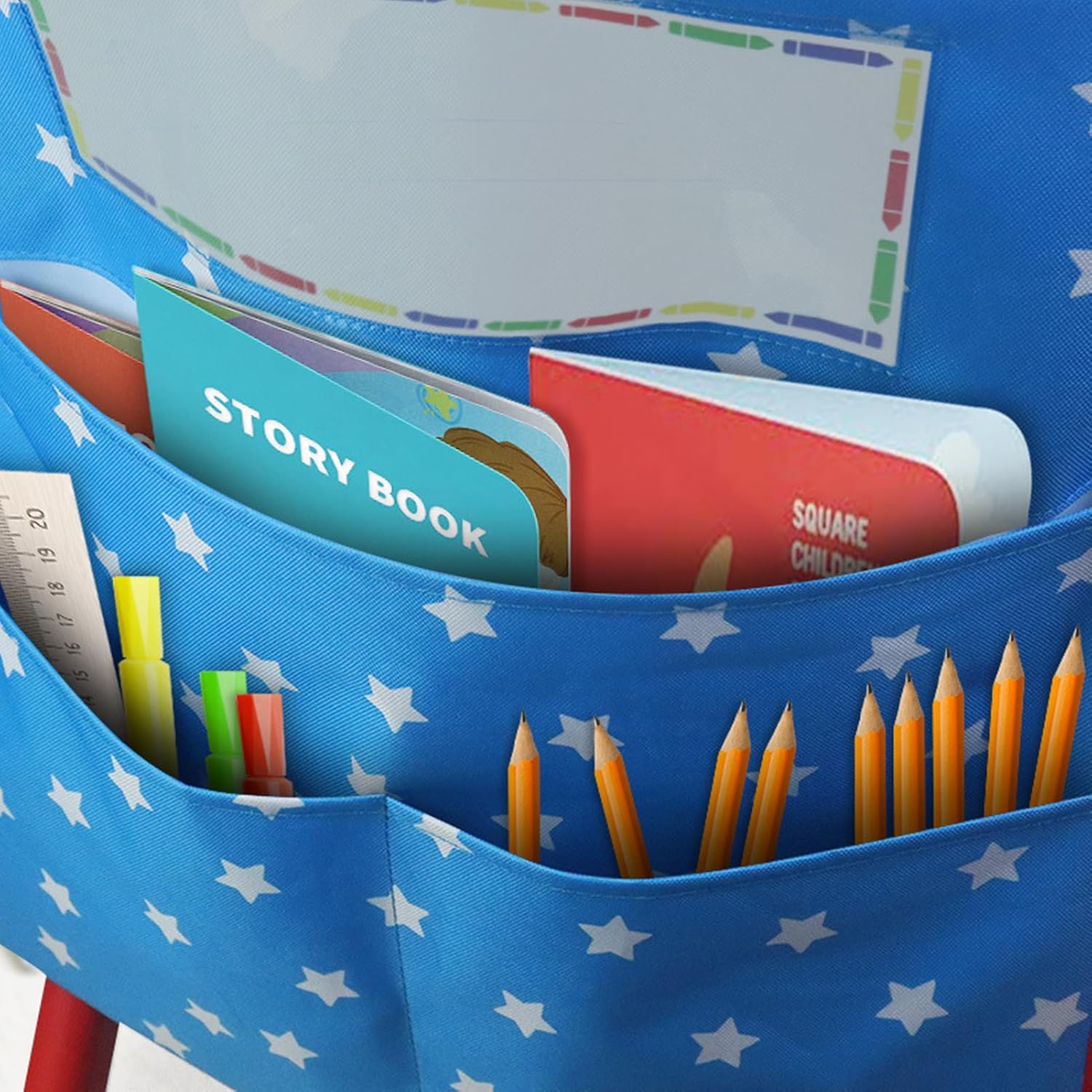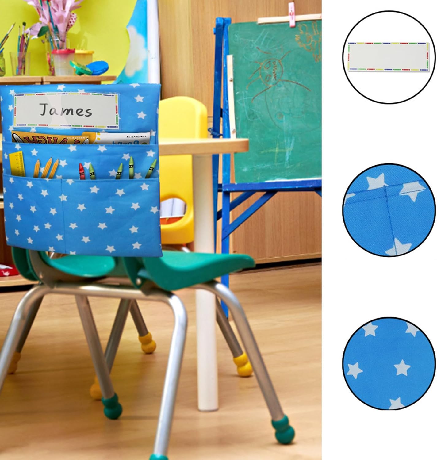 Accessorio moderno per classe: l'organizer a 6 tasche separa efficacemente le forniture scolastiche, mentre lo slot trasparente per etichette garantisce una facile gestione degli articoli e una rapida identificazione per gli studenti. Stabile e solido: offre una tenuta antiscivolo sicura completata da rinforzi laterali. Garantisce che le tasche della sedia della scuola supportino facilmente il peso dei libri di testo pesanti pur rimanendo stabili in uso. Manutenzione semplificata: il tessuto in poliestere resistente ha un aspetto pulito e le superfici pulite, facilitando la pulizia e rafforzando la longevità durante l'uso quotidiano in classe. Compatibilità universale: dimensioni standard si adatta alla maggior parte delle sedie scolastiche e da ufficio. Accesso rapido agli elementi essenziali grazie a questa pratica tasca con un design universale per un risparmio di spazio ottimale. Efficienza didattica ottimizzata: massimizza la produttività in classe tramite etichette di gruppi numerati e un sistema di stelle colorate. Promuove un'organizzazione intuitiva per insegnanti, creando ambienti strutturati che riducono i disturbi durante le lezioni mantenendo una semplicità funzionale.
