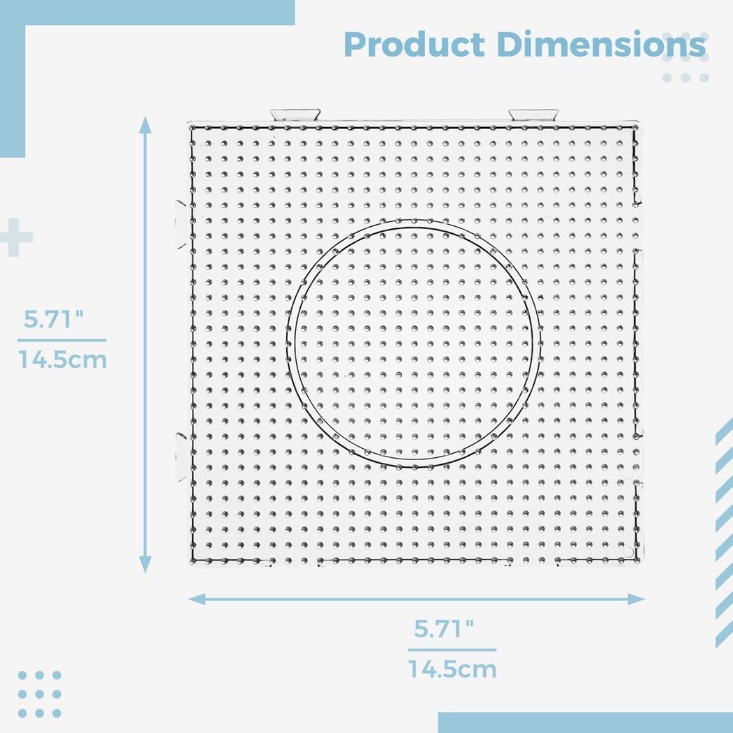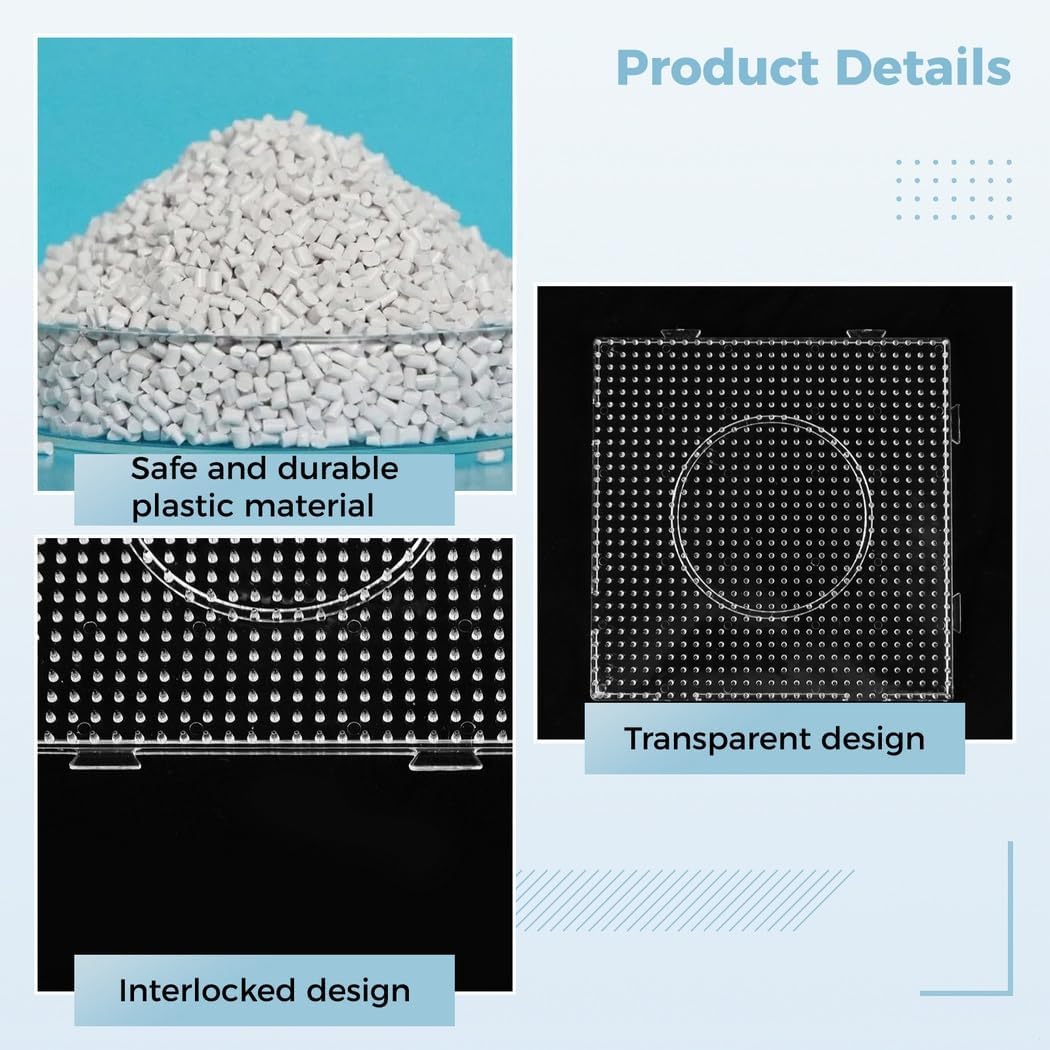 Design semplice a scatto: il pannello forato trasparente con linguette rende facile per i bambini assemblare le perline di bloccaggio (non incluse) in progetti creativi Sviluppo delle abilità: incoraggia la coordinazione occhio-mano, le capacità motorie e il riconoscimento della forma per i giovani artigiani Divertente e fantasioso: lascia che i bambini esplorino la loro creatività formando forme e modelli con le perline di bloccaggio Acrilico durevole: realizzato in acrilico di alta qualità per un uso e una durata più lunghi Dimensioni: ogni pannello forato misura 14,5 x 14,5 cm; ideale per perline di bloccaggio da 5 mm