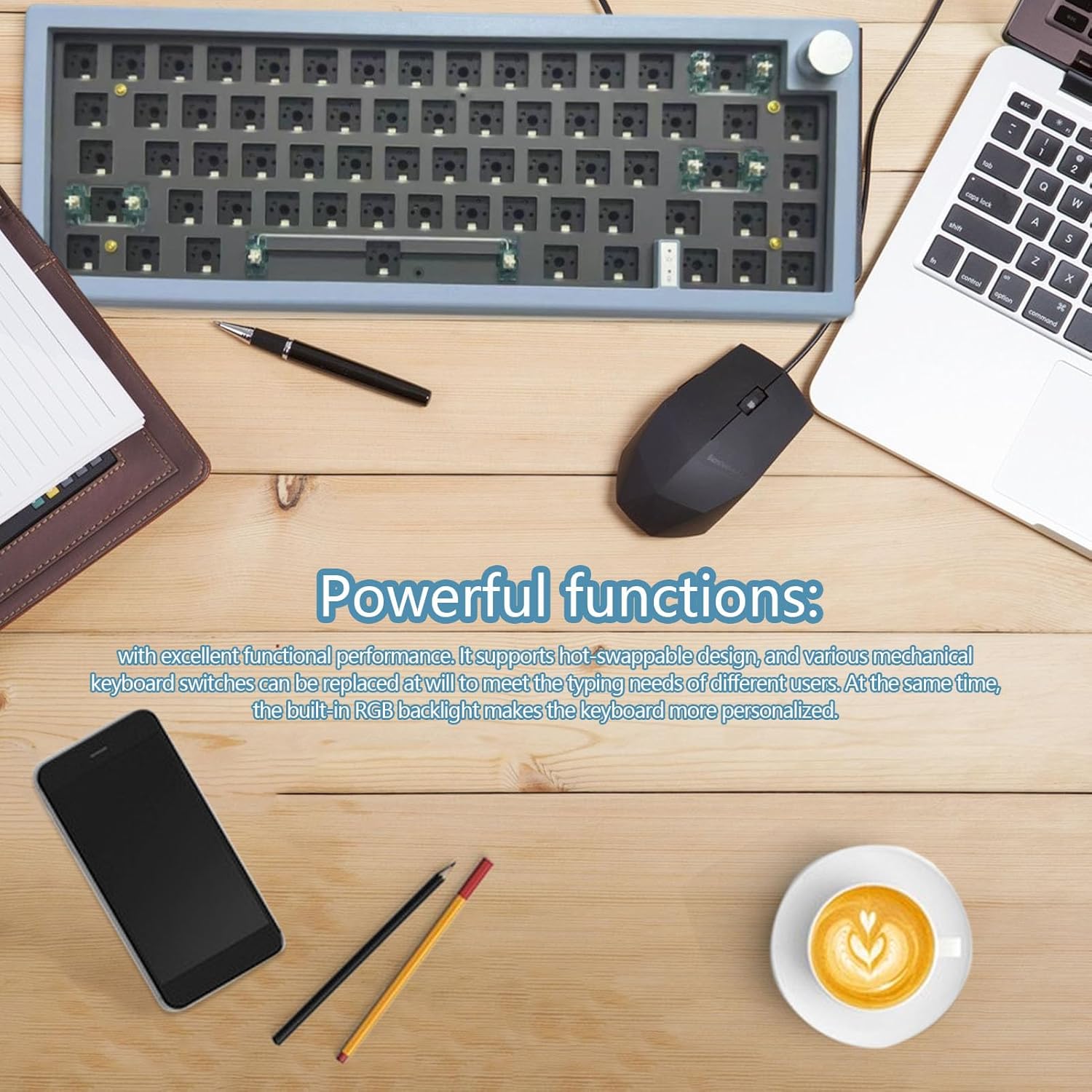 Interruttori regolabili: Questa chiave meccanica KeyB oard è dotata di retroilluminazione integrata e design a caldo che consente di sostituire vari interruttori meccanici a piacimento. Puoi rendere la tua tastiera più personale e soddisfare le esigenze di digitazione dei diversi utenti con potenti funzioni. Funzionalità potente: Questo wireless meccanico della tastiera offre un design unico con un grande pulsante rotondo per un comodo volume e una regolazione della luminosità. Ha anche altre funzioni per una tipizzazione. Inoltre, il suo aspetto elegante completa qualsiasi lavoro. Esperienza di tipizzazione superiore: Questo pannello meccanico wireless offre interruttori di tasti meccanici che possono essere facilmente scambiati in base alle tue preferenze. Sia che tu preferisca il suono clicky dell'asse verde, la sensazione liscia dell'asse rosso o il feedback bilanciato dell'asse del tè, puoi scegliere l'opzione migliore per il tuo stile di digitazione. Migliora l'esperienza di battitura: le chiavi possono sentire la vostra esperienza di digitazione. Monta i tasti per abbinare il tuo stile e preferenze e aggiungi un tocco di personalità alla tastiera. Prestazioni robuste: costruite con costruzione robusta e lavorazione fine, la nostra tastiera meccanica wireless offre prestazioni affidabili per diversi scenari. Con una forte connessione wireless, sperimenterai un'esperienza di tastiera stabile per lavoro e intrattenimento, nei giorni.