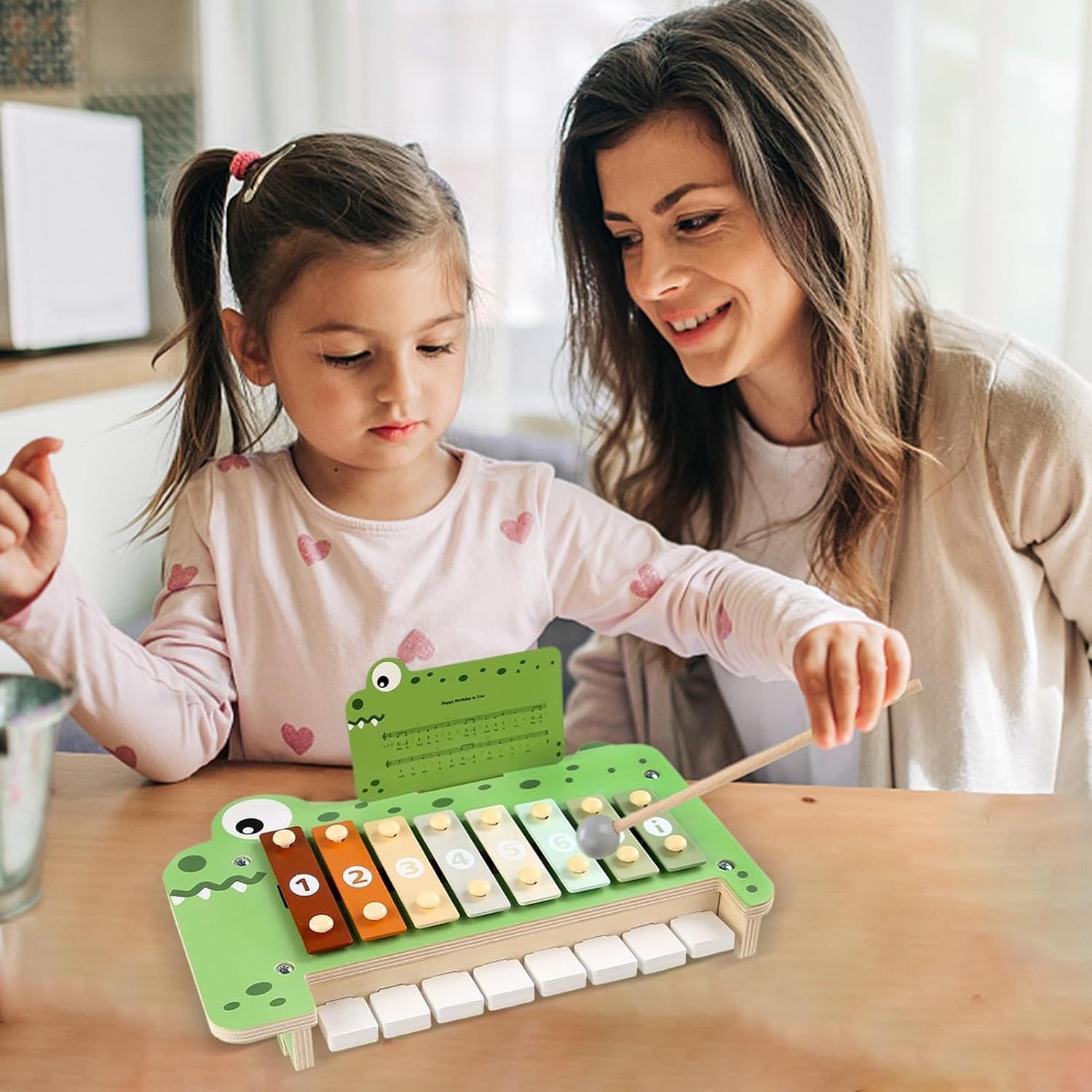 Tasti Didattici Interattivi: Pianoforte per bambini con tasti interattivi che migliorano coordinazione mano-occhio e percezione visiva, sviluppando il riconoscimento delle tonalità attraverso attività musicali coinvolgenti ideate per stimolare l'apprendimento divertente Attraverso la Musica: Sperimentate attività musicali significative che incoraggiano la connessione emotiva attraverso l'esplorazione congiunta di melodie e ritmi coinvolgenti Creatività Ritmica Guidata: Proposta educativa con tre livelli di gioco che unisce comprensione del ritmo e divertimento artistico, ideale per lo sviluppo cognitivo attraverso la musica Sicurezza garantita: Bordi arrotondati e finitura opaca offrono massima sicurezza per bambini, con materiali morbidi che garantiscono una presa sicura e piacevole durante l'uso del pianoforte giocattolo Regalo Stimolante: Pianoforte giocattolo festivo con estetica animale, progettato come strumento didattico divertente. Aiuta i bambini a scoprire la musica attraverso un'esperienza sensoriale coinvolgente e motivante