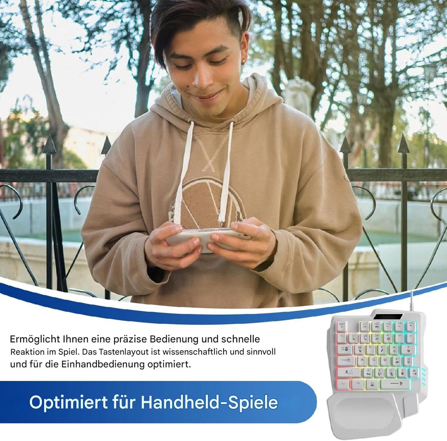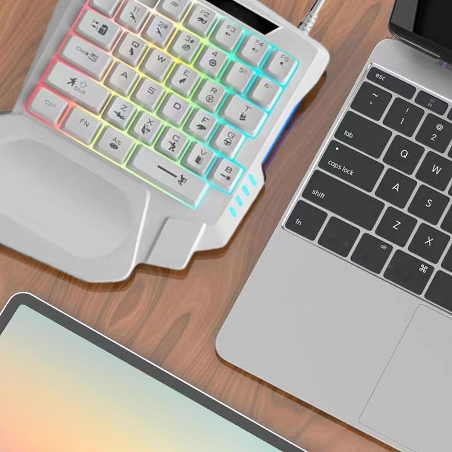 Design ergonomico con una sola mano: la tastiera meccanica ergonomica con una sola mano è progettata per il comfort durante lunghe ore di lavoro. Il suo layout compatto garantisce un facile accesso a tutti i tasti riducendo allo stesso tempo lo sforzo su mani e polsi. Portatile e compatto: perfetto per i giocatori su , questo tastierino meccanico portatile ha un design salvaspazio che si adatta facilmente a borse o zaini, rendendolo ideale per viaggi, scuola o dormitori Tasti programmabili per la personalizzazione: I tasti completamente programmabili consentono di personalizzare le funzioni chiave per un'esperienza di digitazione o ottimale. Assegna scorciatoie o macro complesse per attività semplificate, di modifica o di lavoro Ideale per gli appassionati: che tu sia appassionato di MMO, FPS o altri generi, questa tastiera di gioco fornisce un accesso rapido alle funzioni chiave con una sensazione meccanica reattiva, assicurandoti di rimanere competitivo in ogni gioco Versatile per casa, ufficio e scuola: sebbene perfetta per, questa tastiera meccanica con una sola mano può anche fungere da efficiente strumento di digitazione per il lavoro o lo studio, rendendola un accessorio ideale per uffici domestici, appartamenti e banchi di scuola