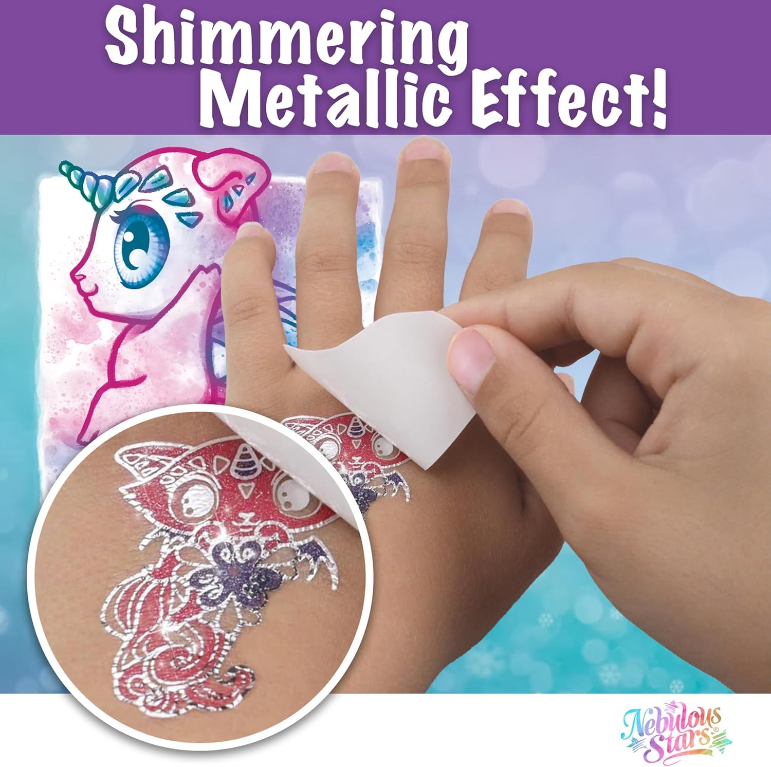 Il ritorno di un best seller in chiave totalmente nuova. Comprende tatuaggi temporanei delicati sulla pelle, 2 penne metallizzate, adesivi con gemme in 3D e glitter per il corpo.