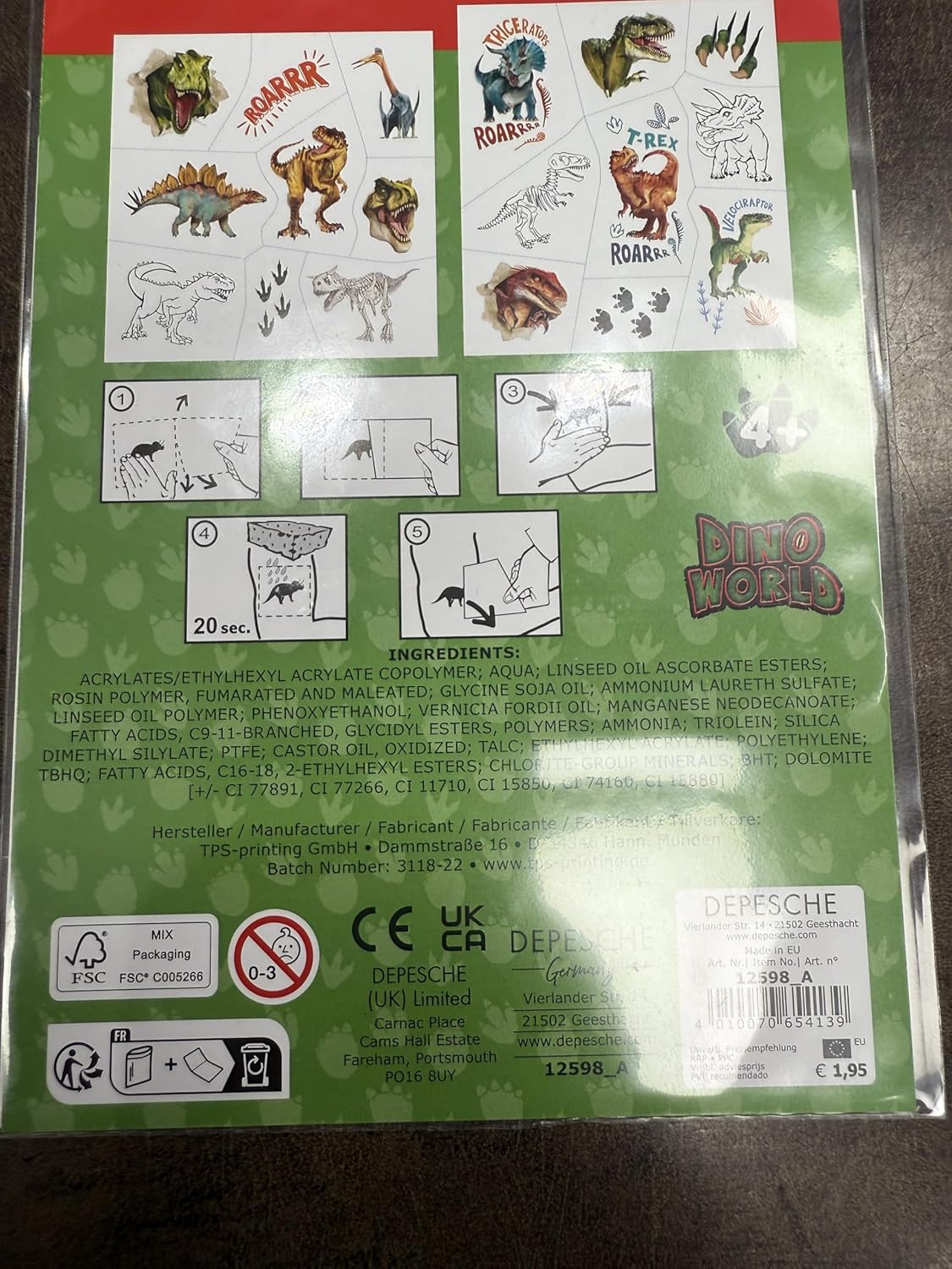 tatuaggi per bambini Design: Dino World Modelli alla moda Include 2 fogli di molti cool tatuaggi Può essere semplicemente con acqua e sapone e