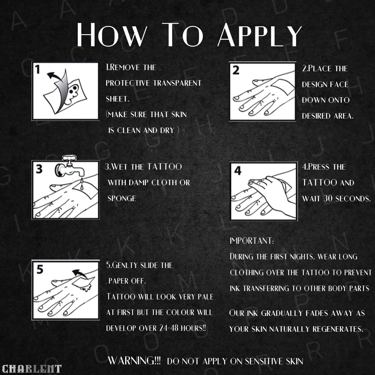 ⚡Fantastici Tatuaggi Realistici a Lunga Durata: tecnologia semipermanente, il tatuaggio rimane sulla pelle, non sopra. I tatuaggi impiegheranno dalle 12 alle 24 ore per scurirsi nel corso del tempo e durano fino a 1-2 settimane, impermeabili e resistenti all'attrito. Sono così realistici che sono paragonabili a un tatuaggio vero. ⚡Facili da Applicare, Sicuri: secondo le istruzioni, super veloci e facili da applicare. I nostri tatuaggi sono realizzati con una formula vegana a base vegetale. Nessun dolore per avere tatuaggi realistici. ⚡4 Fogli da 26 Tatuaggi Temporanei con Lettere Inglesi: 4 tatuaggi assortiti con alfabeto, tutti in un'unica confezione, 15x22 cm. Divertiti con la nostra collezione di tatuaggi semipermanenti con lettere. ⚡Ottimo per Feste, Uscite Estive ed Eventi: metti in mostra i tuoi tatuaggi ovunque, come braccia, mani, petto, caviglie, collo, spalle, piedi e gambe! Puoi indossarli ad Halloween, Natale, feste, in discoteca, in spiaggia, in palestra, per compleanni o in qualsiasi altra occasione senza spendere un capitale in accessori. Sono semipermanenti e perfetti come accessori per festival o bar in discoteca. ⚡Promemoria: NON PUÒ ESSERE RIMOSSO IMMEDIATAMENTE e svanisce con la rigenerazione naturale della pelle. Non usarlo su viso, ferite o pelle sensibile!