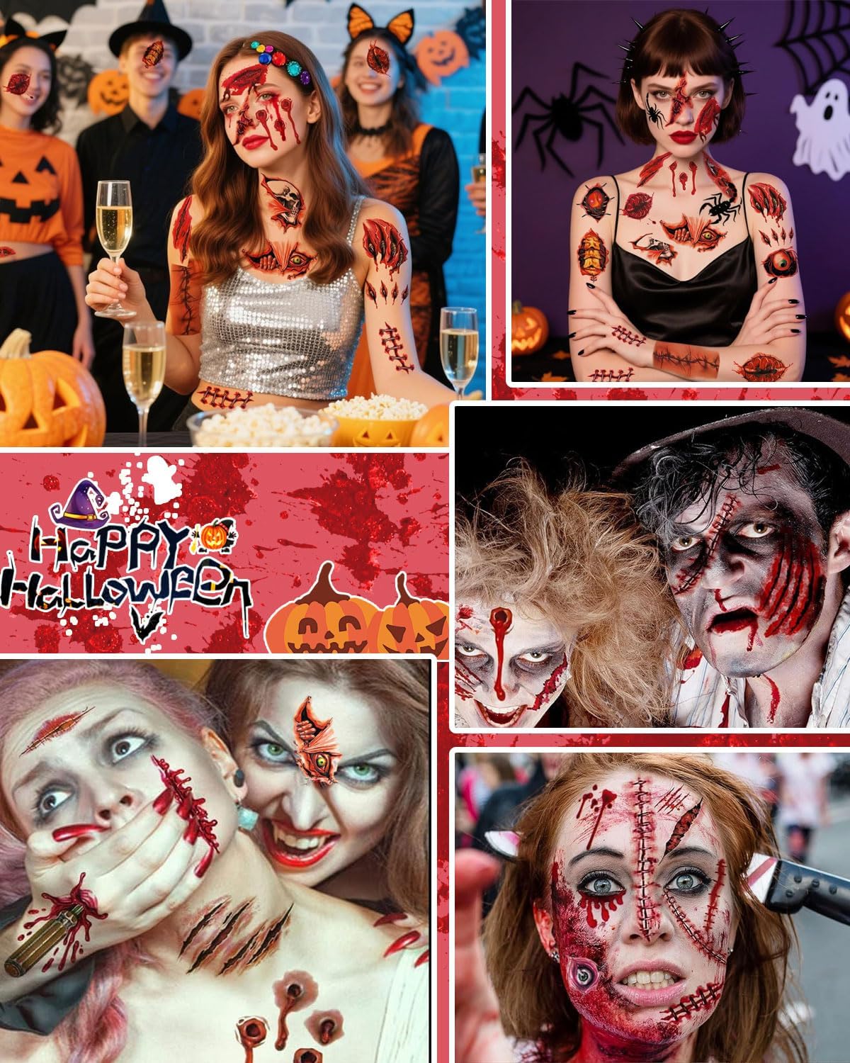 Tatuaggi di cicatrici per Halloween: 18 tatuaggi di cicatrici per Halloween con elementi di Halloween come sangue, ferite, cicatrici, sangue rappreso e punti di sutura. Scegli e combinali in base alle tue preferenze e applicali su braccia, spalle o altre parti del corpo. Aspetto realistico delle cicatrici: questi tatuaggi di cicatrici creano un effetto incredibilmente realistico e inquietante, perfetto per Halloween, cosplay o qualsiasi altro evento a tema horror. Abbinati a trucco, acconciature e costumi di Halloween, creano un'atmosfera ancora più terrificante. Delicati sulla pelle e impermeabili: questi tatuaggi di Halloween sono realizzati con un materiale sicuro e possono essere applicati su qualsiasi parte del corpo senza danneggiare la pelle. Durano dai 3 ai 5 giorni, anche dopo la doccia o dopo aver giocato. Facili da applicare e rimuovere: ritaglia il tatuaggio desiderato, applicalo sulla pelle, inumidisci la carta con una piccola quantità d'acqua e premi delicatamente per 20 secondi. Possono essere facilmente rimossi immergendoli in acqua saponata per alcuni minuti o pulendoli con olio per bambini. DIVERTITI ALLA FESTA DI HALLOWEEN: questi divertenti e realistici tatuaggi di cicatrici sono perfetti per feste di Halloween, carnevale, feste horror, la Notte dei Morti, feste in maschera, feste a tema, trucco da zombie, trucco da vampiro, trucco da cicatrici, trucco da ferite, trucco da morso di vampiro, oggetti di scena per la fotografia e accessori per costumi di Halloween.