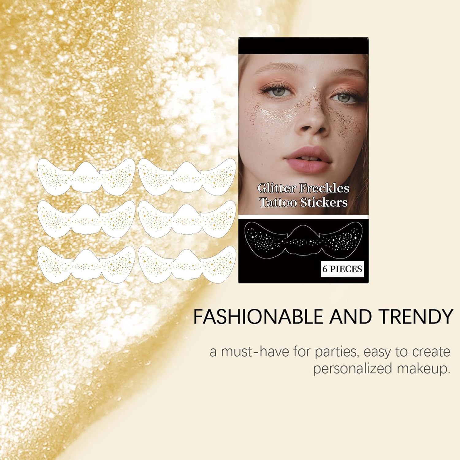 Materiale di qualità: Formula sicura e delicata che si adatta a tutti i tipi di pelle garantendo comfort prolungato. Il tatuaggio viso efelidi aderisce naturalmente ai contorni del viso creando un effetto autentico senza causare irritazioni cutanee durante l'applicazione o la rimozione Prestazioni impermeabili: Grazie alla tecnologia innovativa di rivestimento idrorepellente e all'adesione mirata dei glitter, mantiene l'integrità del design anche in condizioni umide o durante movimenti intensi, garantendo resistenza allo sfregamento Miscelazione creativa: Ottieni un'estetica unica mescolando modelli diversi, con impostazioni adattabili di forma e densità, perfetti per varie occasioni a tema Applicazione Rapida: Semplifica la tua routine di trucco con il design a strappo e pressione di Freckles Face , garantendo una pressione uniforme per creazioni festive e affascinanti che ottimizzano il senza compromettere l'estetica Affidabilità Giornaliera: Sperimenta resistenza al sudore abbinata a stabilità anti-attrito, migliorata con adesivo ad alta tenacia per un'usura prolungata dei tatuaggi effetto lentiggini viso