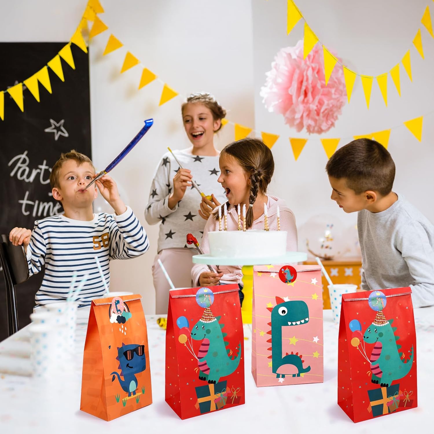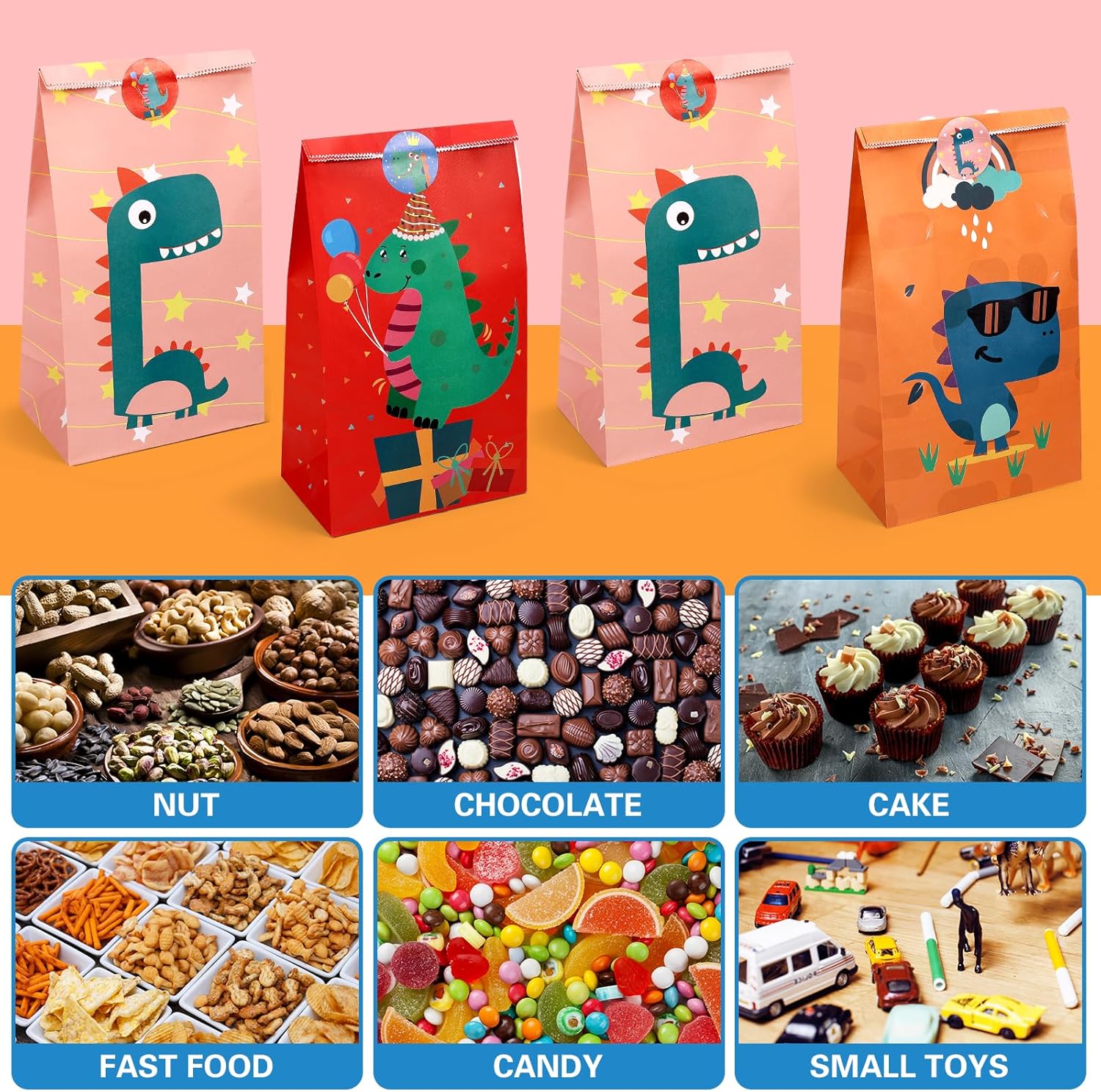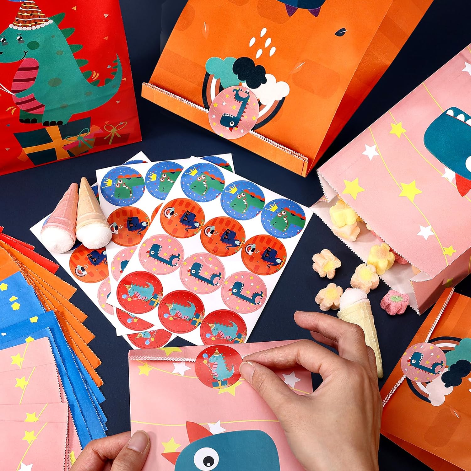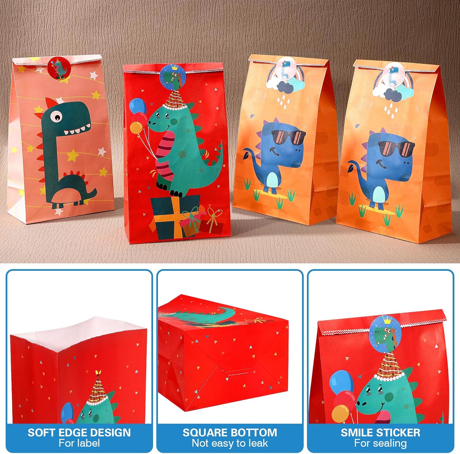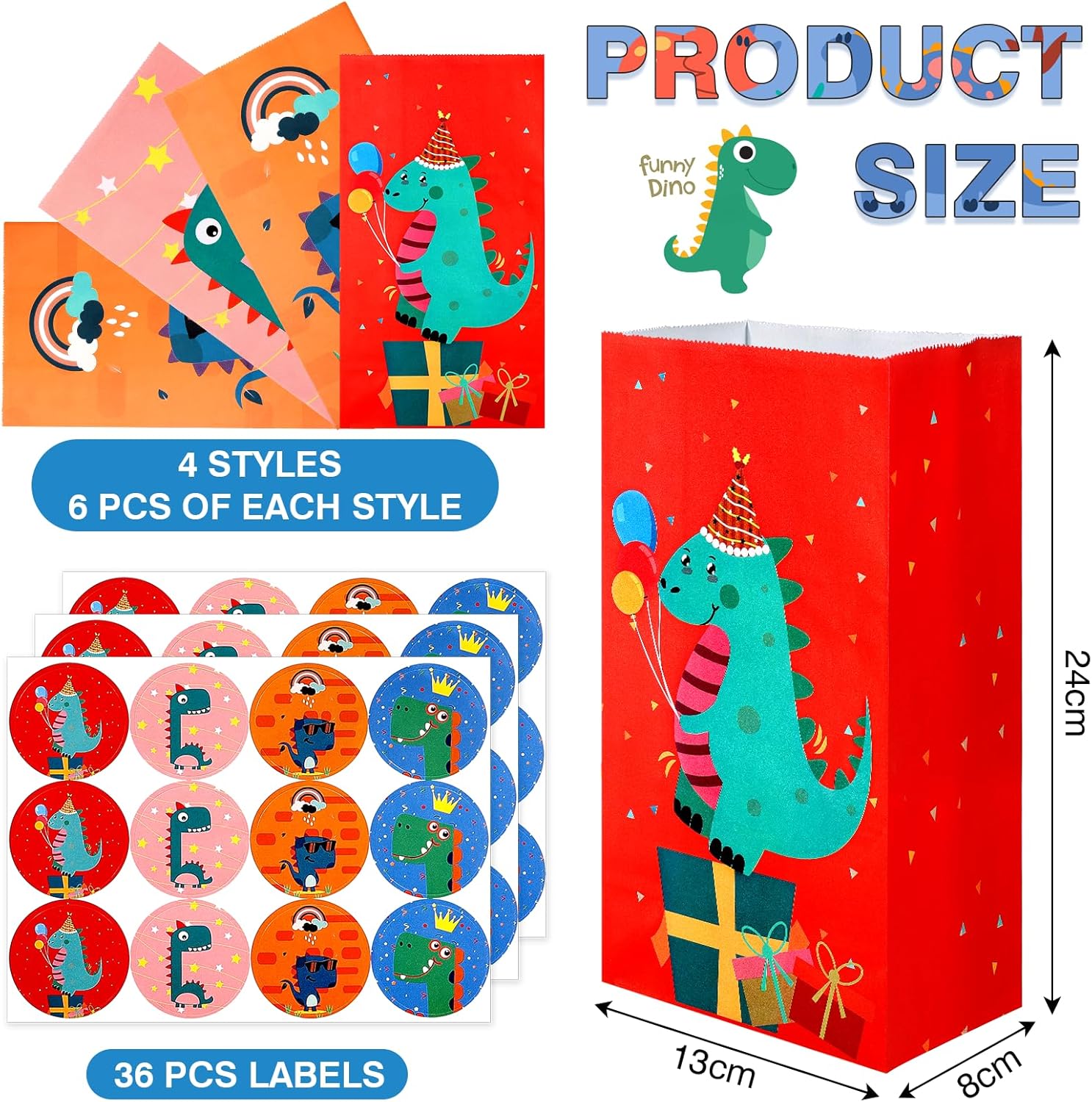SET BORSE REGALO DINOSAURI: Include 24 buste regalo di alta qualità con un emozionante motivo di dinosauri, perfette per feste di compleanno per bambini o eventi sui dinosauri. Ogni borsa presenta disegni di dinosauri vivaci e colorati che delizieranno i bambini. Viene fornito con 36 adesivi colorati per sigillare e decorare le borse. Ideale come bomboniera o per piccoli regali. MATERIALE ECOLOGICO: le borse sono realizzate in robusta carta kraft, durevole, riutilizzabile ed ecologica. I materiali sono inodori e sicuri per il contatto con gli alimenti, rendendoli adatti anche per caramelle o snack. DIMENSIONE: Ogni borsa misura 24 x 13 x 8 cm e offre spazio sufficiente per dolci, biscotti, piccoli giocattoli o altre sorprese. La dimensione pratica è perfetta per le mani dei bambini e rende le borse facili da trasportare. ADESIVI DINOSAURI INCLUSI: sono inclusi 24 adesivi di alta qualità con motivi di dinosauri. Gli adesivi hanno un diametro di 3,5 cm e garantiscono una chiusura sicura e una decorazione amorevole. I colorati disegni dei dinosauri portano divertimento e avventura a qualsiasi festa. APPLICAZIONE VERSATILE: Adatto per feste a tema dinosauri, compleanni di bambini, rientro a scuola, Halloween, Natale e altri festival. Ideali come regalini, piccoli regali, accessori per feste o come sacchetti di ringraziamento. Perfetto per tutti i piccoli fan dei dinosauri!