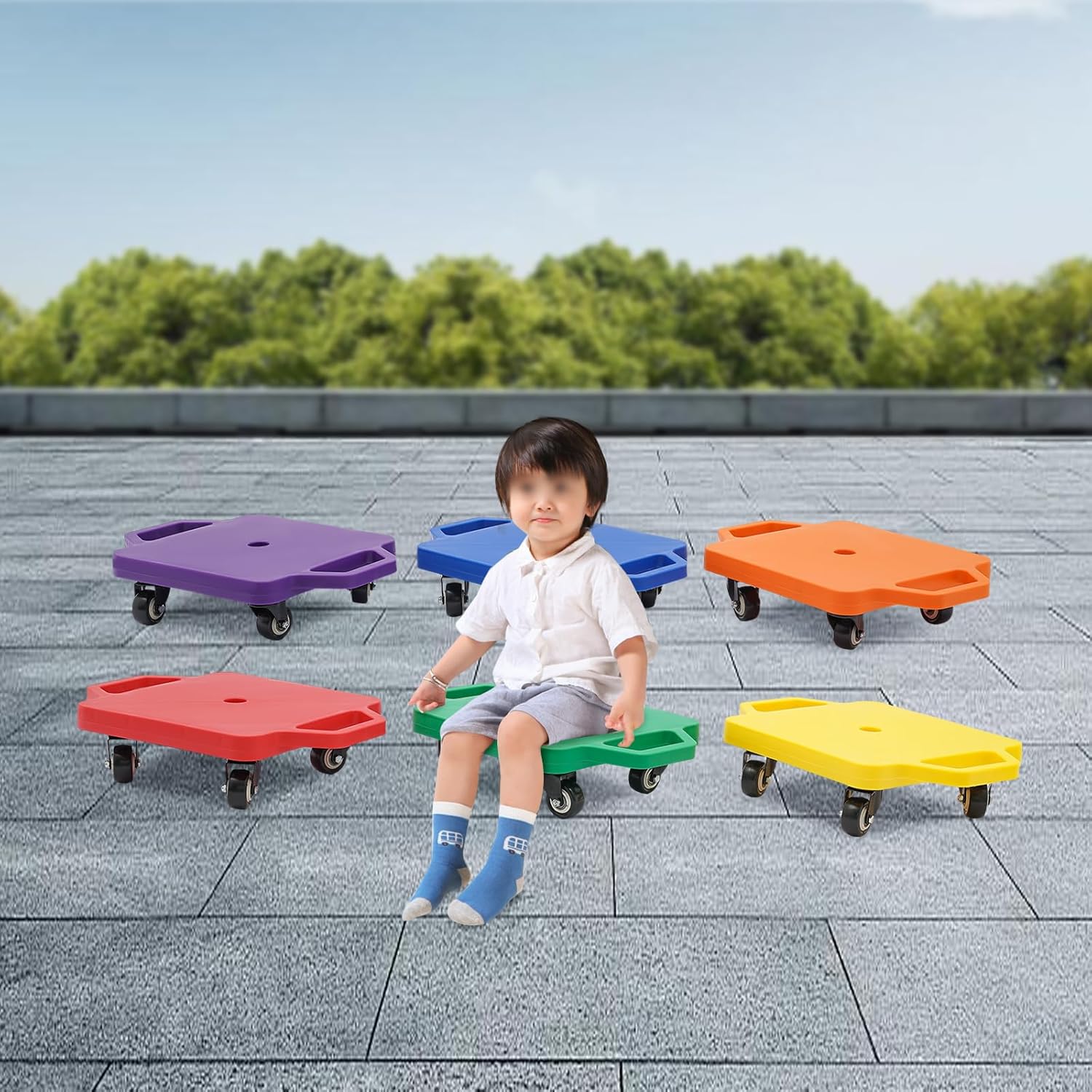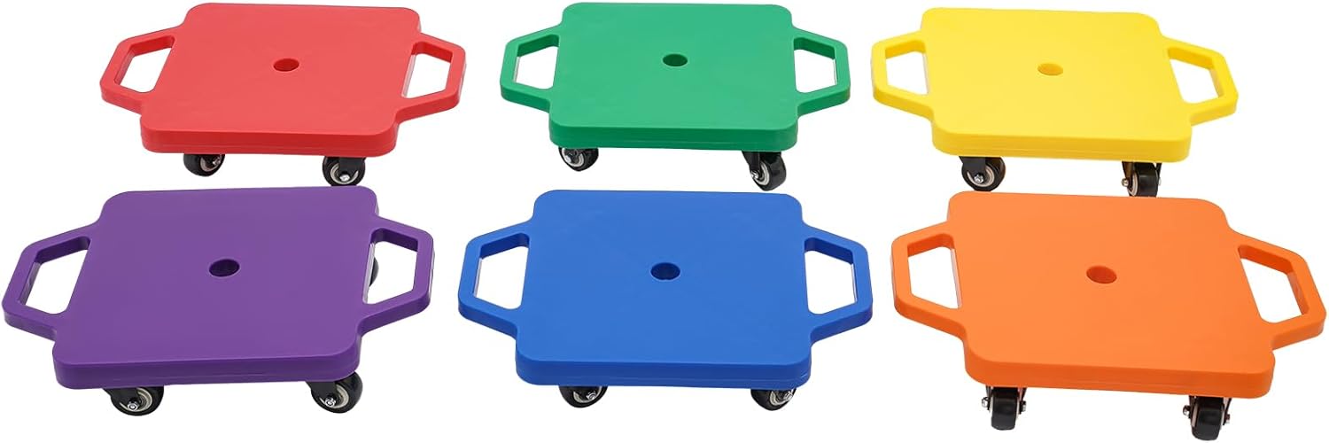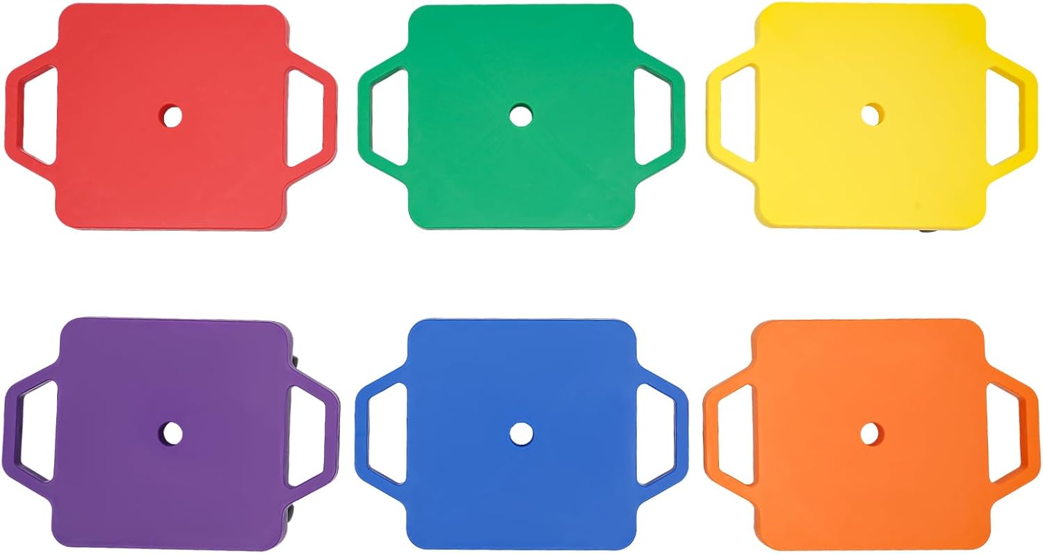 Robusto e di alta qualità: è realizzato in PE di alta qualità, con elevata durezza, buona resistenza alla ruggine e resistenza alle alte temperature, è sano e ha una lunga durata. Design premuroso: l'altezza da terra di 2,7 pollici impedisce alle mani dei bambini di ferirsi a causa del contatto con le ruote o il pavimento, mentre le maniglie su entrambi i lati del prodotto rendono facile per i bambini guidarle e controllarle e migliorare la sicurezza d'uso. Inoltre, è possibile utilizzare una corda (non inclusa) sopra la maniglia per tirare. Elevata capacità di carico: materiale di alta qualità e costruzione robusta consentono di sostenere fino a 264,55 libbre, in modo che il bambino possa sedersi e giocare con fiducia. Promuovere forza ed equilibrio: aiuta i bambini a rafforzare la loro forza nucleare e ad allenare il loro equilibrio, coordinazione, giudizio e riflessi mentre si divertono! Economico e pratico: il set da 6 pezzi è progettato per consentire al bambino di giocare con gli amici o la famiglia per promuovere le abilità sociali e lo spirito di squadra dei bambini e migliorare il rapporto tra genitore e figlio. Grazie al design universale della ruota, si muove facilmente e silenziosamente, in modo da poterlo utilizzare anche per trasportare oggetti pesanti, il che lo rende un ottimo rapporto qualità-prezzo.
