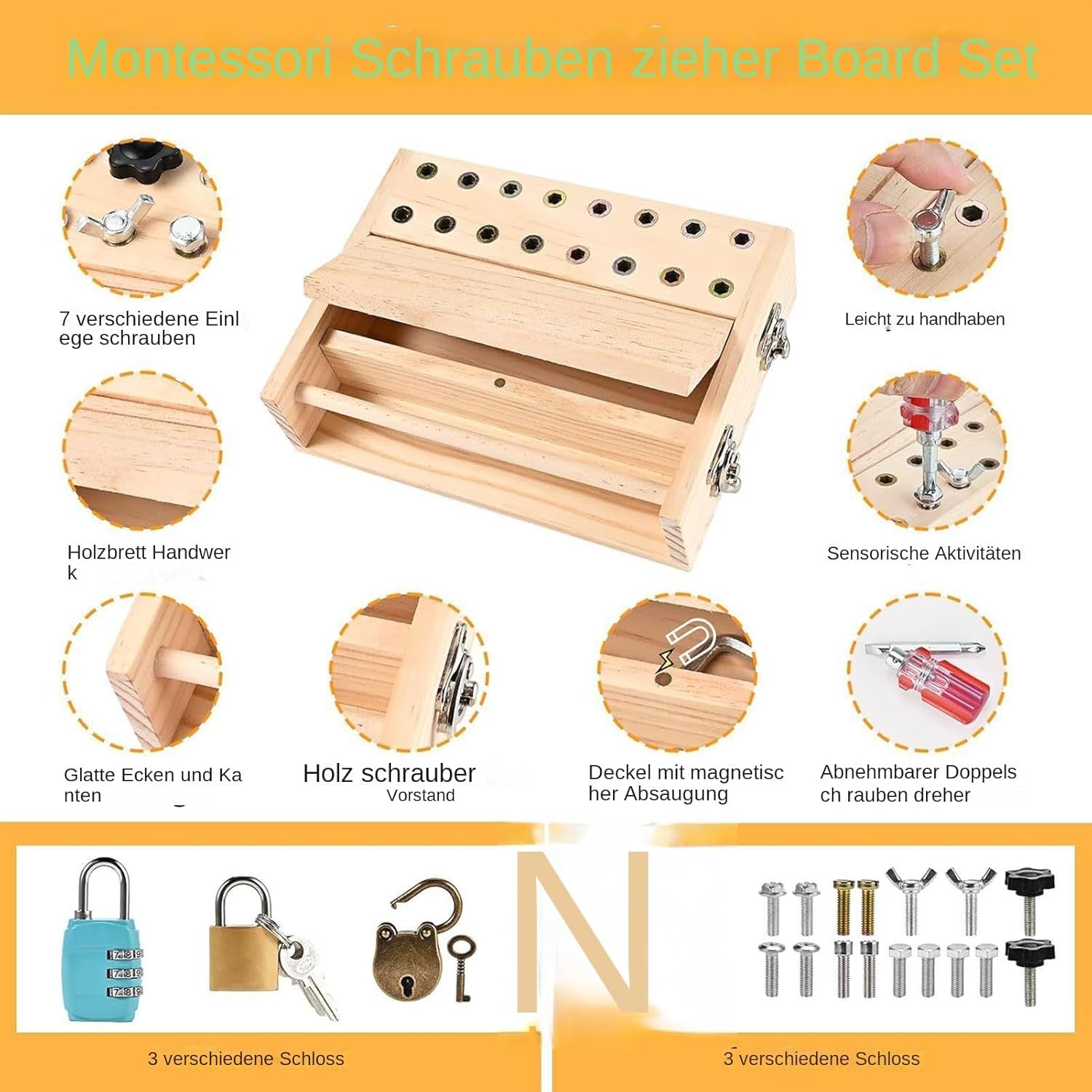 Giocattolo pratico: materiali naturali, bordi arrotondati e parti fisse non staccabili garantiscono un'esperienza di sicurezza e utilizzo equilibrata con strumenti ergonomici per bambini Suggerimento regalo Beester: questa idea regalo arricchente è un giocattolo educativo premuroso, ideale come regalo di compleanno o regalo per le vacanze per i bambini che amano le attività divertenti ed educative durante il gioco. Promuove la costruzione di competenze: il design orientato all'apprendimento aiuta i bambini a migliorare la coordinazione occhio-mano e a perfezionare le capacità motorie attraverso pratici esercizi di apertura e avvitamento in un ambiente di gioco divertente Resistenza comprovata: il giunto in legno con superfici resistenti mantiene l'integrità strutturale e garantisce stabilità della forma anche durante gli esercizi intensi Facile da trasportare: il set combina compattezza e portabilità ed è perfetto per viaggiare e divertirsi al chiuso. È facile da trasportare e riporre in modo che i bambini possano giocare ovunque.