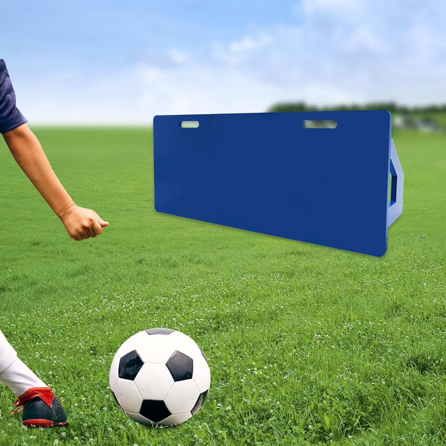 Materiale selezionato: il rimbalzo per calcio in HDPE di alta qualità è resistente a ruggine, umidità, corrosione, urti e deformazioni, garantendo praticità e durata. I bordi lisci e rotondi sono piacevoli al tatto e aumentano la sicurezza di utilizzo Ausilio per allenamento: con il rimbalzo è possibile posizionare un angolo di 90° sul pavimento per praticare tecniche di passaggio e tiro, o girare l'angolo di 60° per diversi allenamenti di calcio – migliora le abilità e i riflessi, ideale come accessorio per allenamento da calcio Salvaspazio e portatile: il rimbalzo da calcio si piega premendo le gambe di supporto, risparmiando spazio di stoccaggio. I 2 fori di taglio consentono un facile trasporto sul posto di allenamento – mobile e pratico Alta stabilità: il set da allenamento da calcio con due gambe di supporto spesse, piastre solide da 39,37 x 15,75 pollici e peso di 26,46 libbre è stabile, rimbalza efficacemente il calcio. Cerniere in ferro di alta qualità e perni di bloccaggio garantiscono durata e stabilità Subito pronto all'uso: il rimbalzo da calcio è già assemblato, utilizzabile subito dopo averlo ricevuto, risparmiando tempo e pratico, senza ulteriori spese di installazione.