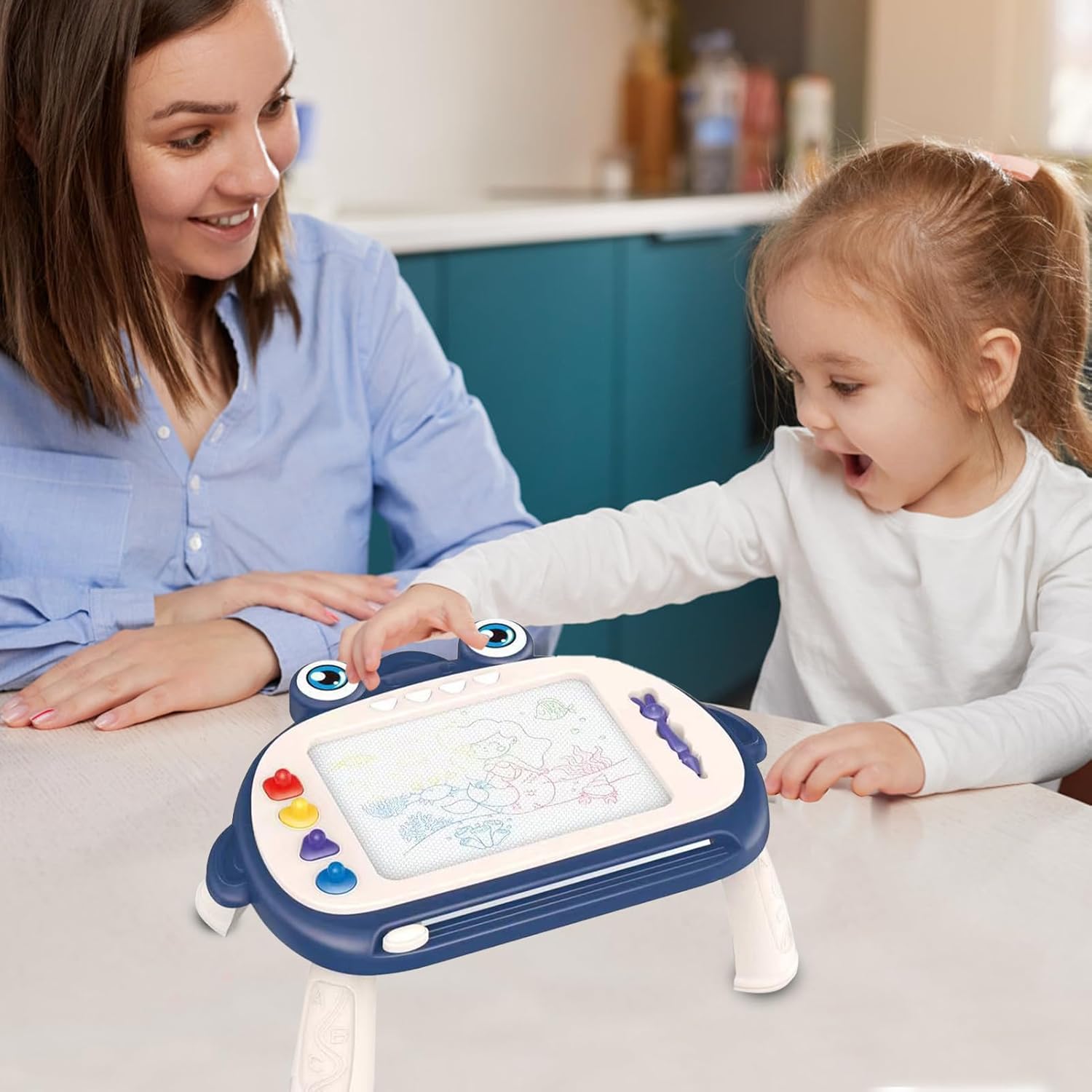 Stimola le giovani menti: dotato di penne colorate in quattro colori, questo tavolo da disegno magnetico stimola la creatività e l'immaginazione e stimola i bambini a disegnare Uso a lunga durata: il nostro tavolo da disegno magnetico è realizzato in materiale ABS affidabile e offre prestazioni durevoli e costanti. Questa tavola è ideale per permettere ai bambini di dare libero sfogo alla loro creatività senza interruzioni. È una scelta robusta e affidabile Processo dettagliato: il nostro tavolo da disegno magnetico promuove l'immaginazione e la creatività del tuo bambino, mentre le superfici affidabili e lisce non danneggiano le dita. Ottimo per barboncini e adatto per ore di apprendimento giocoso Manutenzione facile: il tavolo da disegno magnetico rende lo scarabocchio un gioco da ragazzi per i bambini e stimola la loro immaginazione senza il fastidio di riordinare. Grazie alla superficie facile da pulire, consente di risparmiare tempo e fatica, è riutilizzabile e facile da pulire Migliora le capacità di apprendimento: ti presentiamo il nostro tavolo da disegno magnetico, il giocattolo educativo precoce adatto per promuovere la creatività e lo sviluppo cognitivo nei bambini piccoli