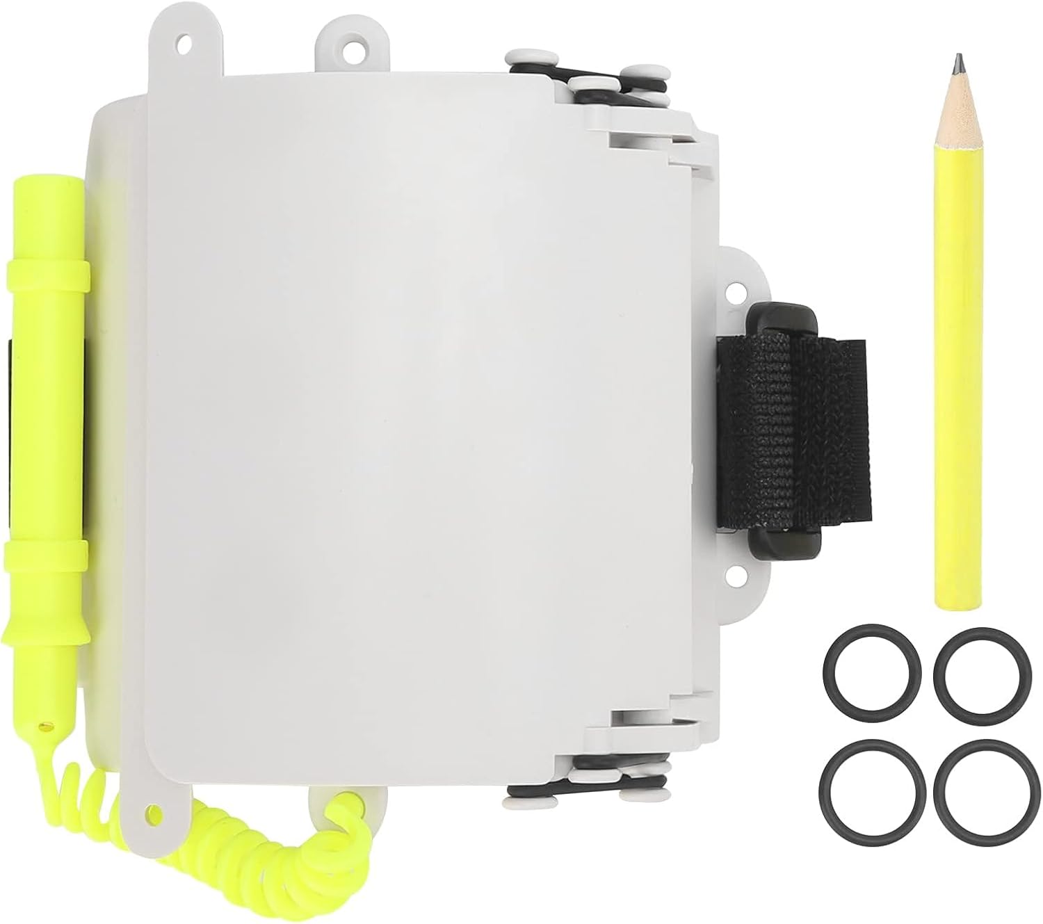 Il polso subacqueo acrilico ad alta trasparenza garantisce la trasmissione della luce per una chiara comunicazione subacquea, risolve la sfida di visibilità in ambienti di immersione in condizioni di scarsa illuminazione. Dispone di cinturino da polso regolabile (fino a 25 cm di circonferenza) e struttura ABS resistente alla corrosione, per una facile portabilità durante le immersioni prolungate. Ideale per subacquei professionisti, fotografi subacquei e istruttori subacquei che richiedono uno strumento di comunicazione affidabile durante le operazioni tecniche. per l'esplorazione in profondità del mare, l'addestramento subacqueo o la ricerca marina in cui la messaggistica subacquea precisa è fondamentale. La confezione include: 1 lavagna per scrittura a mano, 1 matita, 4 anelli O-ring