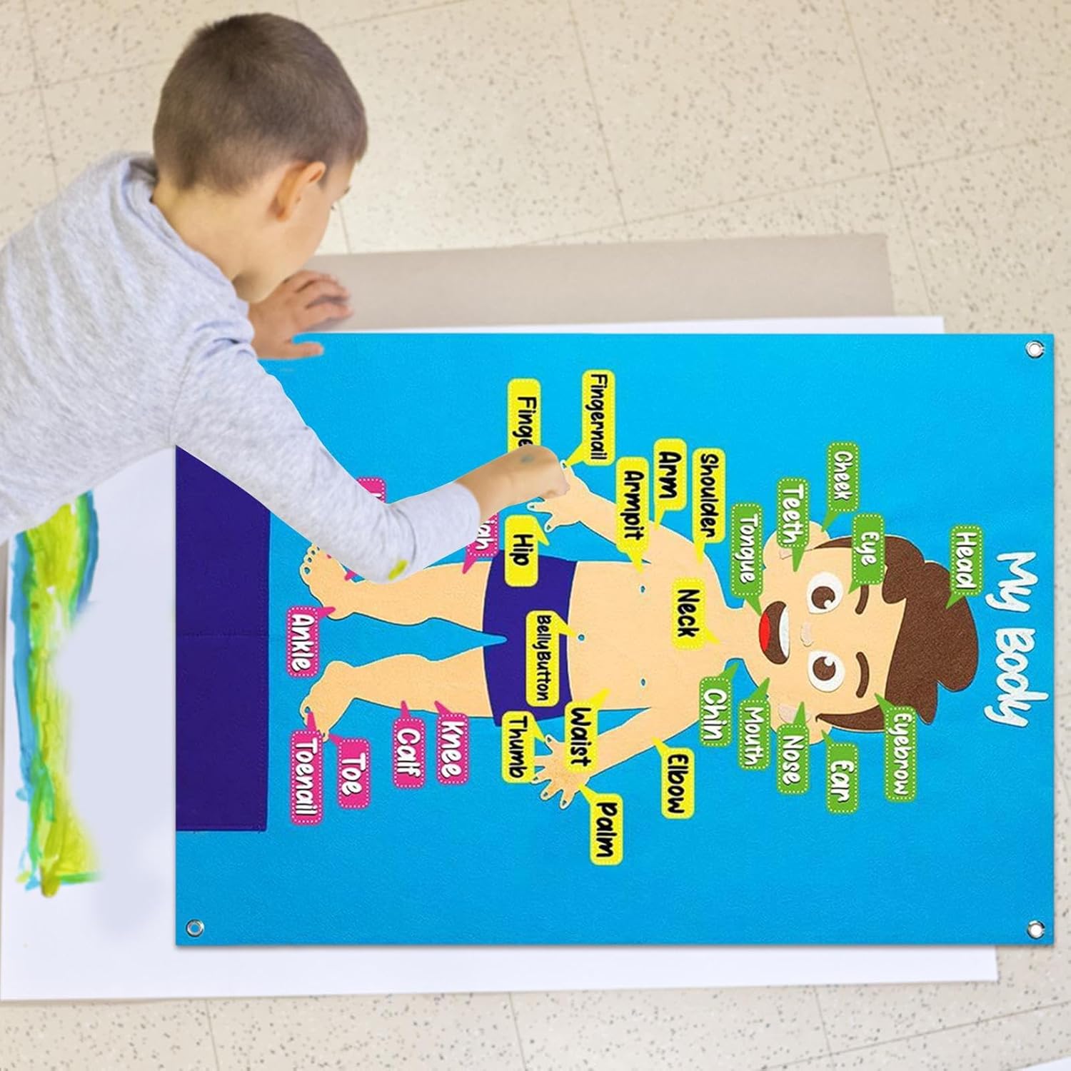 Promuovere le capacità di risoluzione dei problemi: la sensazione di promuovere la tavola per i bambini porta a un migliore coordinamento, pazienza, curiosità e capacità di risoluzione dei problemi. I tuoi figli li adoreranno poiché sono divertenti ed educativi. 【Ecologico】 Realizzato in materiale di feltro ecologico, il tagliere in feltro per bambini ha bordi lisci senza dimensioni, in modo da poterlo utilizzare con fiducia. È anche robusto e affidabile e garantisce una lunga durata. Migliore riconoscimento del colore: le storie in feltro offrono colori vivaci e forme diverse che aiutano i bambini a conoscere le parti del corpo. Possono anche migliorare la loro capacità cognitiva dei colori e sviluppare le loro capacità di percezione visiva giocando con questa frase. Muoviti ripetutamente: le attività da parete in feltro per bambini offrono 1 pannello in feltro blu, 2 robusti ganci per una facile sospensione e 30 parti del corpo in feltro con cui è possibile creare diverse storie e scene che possono essere spostate ripetutamente. Multiuso: il vostro bambino amerà i set Fish Board Story. È perfetto per le attività dell'asilo, l'apprendimento in età prescolare e il tempo familiare. È anche una bella decorazione per aule, camere da letto e soggiorni.