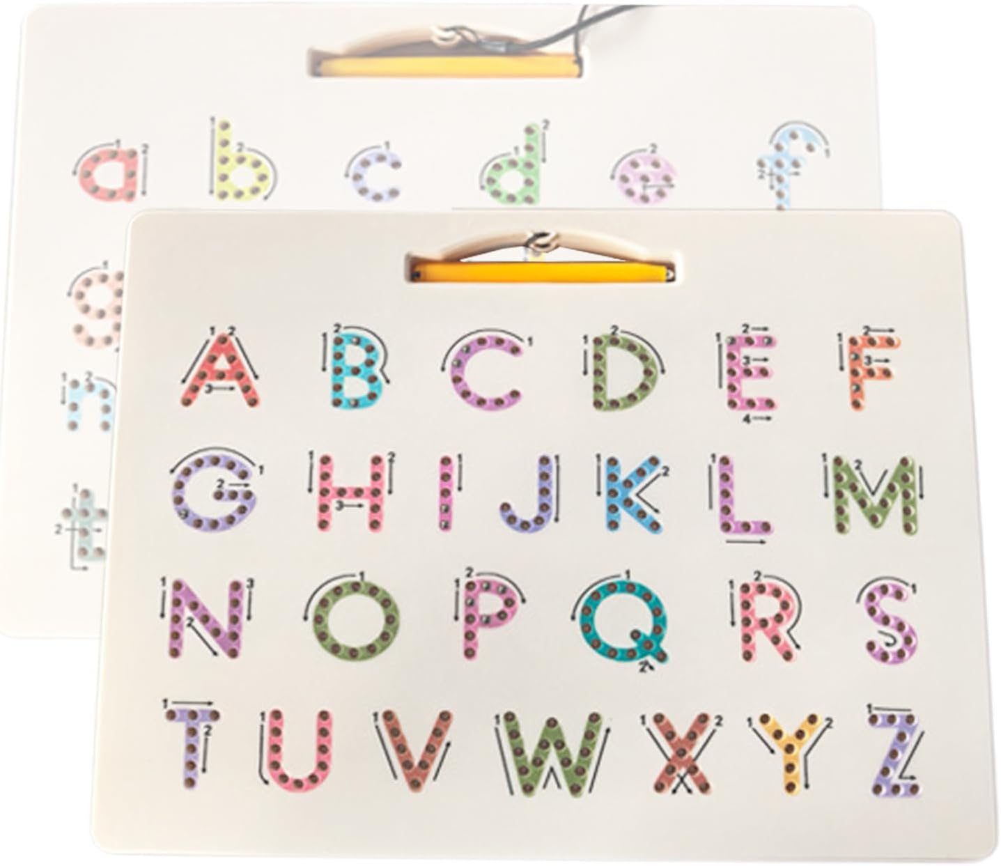 Gioco Educativo Coinvolgente: Unisce l'uso di magneti a sfide di ricalco, stimolando un gioco interattivo che rende piacevole l'apprendimento e ispira curiosità nelle giovani menti. Doppia Faccia: Lavagna magnetica alfabeto con superficie scrivibile su entrambi i lati per massimizzare la pratica di scrittura e garantire l'apprendimento della formazione delle lettere. La penna magnetica rinforza la memoria muscolare durante l'uso, rendendo l'apprendimento coinvolgente ed efficace per i bambini. Praticità Migliorata: La penna magnetica tiene gli strumenti essenziali a portata di mano e in ordine, garantendo accesso immediato ogni volta che serve durante le attività di apprendimento. Ideale per Tappe:Strumento per lo sviluppo cognitivo con esperienza ludica, regalo significativo per bambini che conquistano traguardi educativi con attività alfabetiche interattive. Qualità Robusta: Design con materiali anti-usura dai bordi levigati per protezione manuale, offrendo una struttura durevole che rimane intatta con l'utilizzo regolare quotidiano.