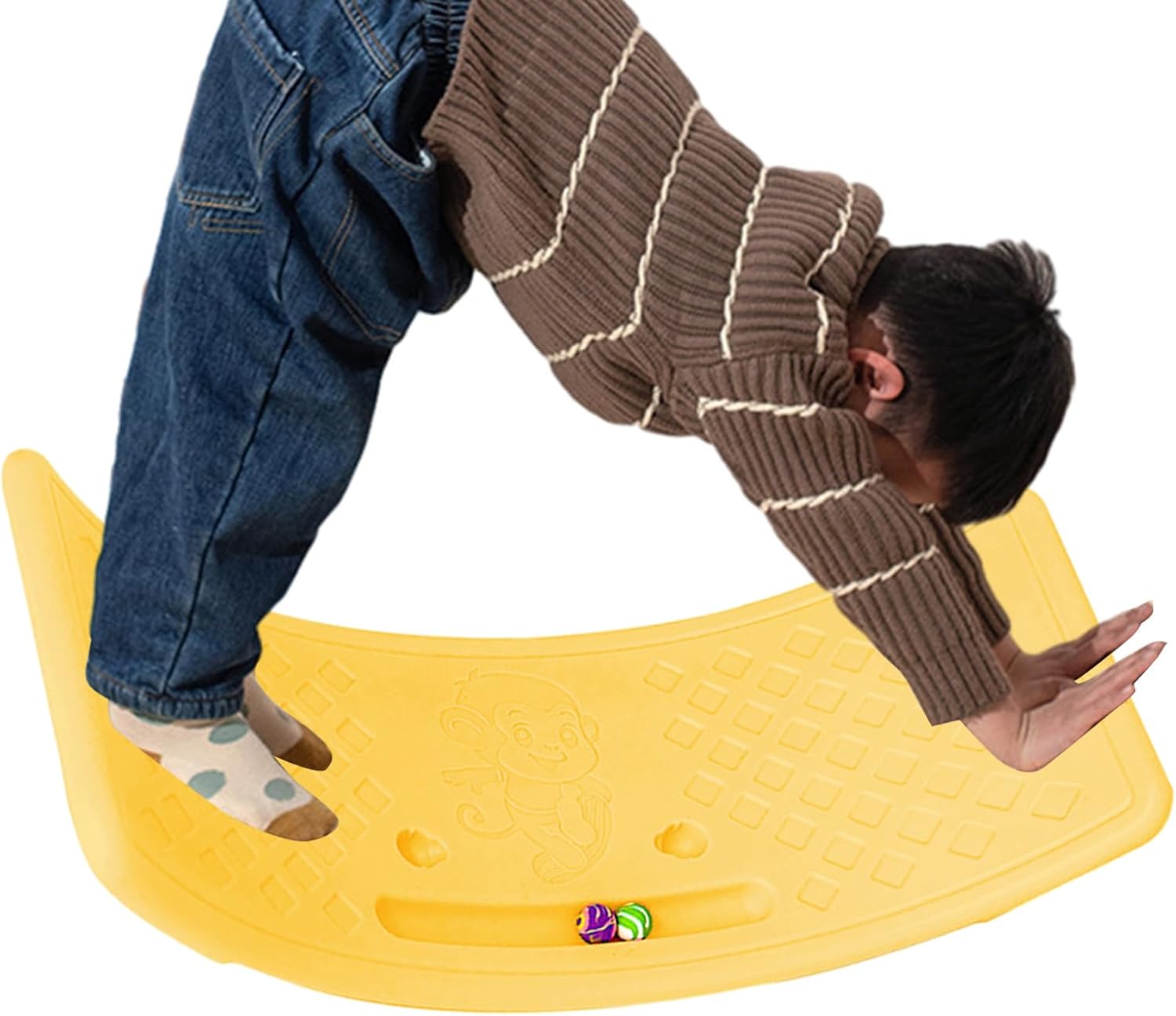 Forte e resistente: realizzata in materiale PP elastico di alta qualità, questa tavola di equilibrio oscillante è inodore, impermeabile e lavabile, resiste alla deformazione per un uso duraturo; Fornisce un ottimo allenamento di stabilità e supporto per migliorare le prestazioni di allenamento. Peso elevato: osserva come tuo figlio rafforza la coordinazione e l'equilibrio con questa grande tavola di equilibrio per bambini. Con una dimensione di 53 x 25 cm, può sopportare fino a 25 kg per la massima capacità di allenamento. Buon divertimento: la tavola per l'equilibrio oscillante offre ai bambini un sacco di divertimento ed emozionante tempo di gioco, promuovendo al contempo le loro capacità di equilibrio e coordinazione. Uno strumento perfetto per promuovere un approccio pratico all'apprendimento attraverso il gioco e l'esplorazione. Utile e pratico: sperimenta esercizi di equilibrio sicuri ed efficaci con la nostra tavola di equilibrio oscillante, dotata di punti di massaggio antiscivolo per un allenamento confortevole e bordi arrotondati con strisce antiscivolo per un gioco sicuro. Perfetto per lo sviluppo delle capacità motorie dei bambini. Gioco attivo multiuso: promuovere le abilità motorie grossolane nelle classi di asilo o intrattenere i bambini nel cortile e in giardino con questa altalena versatile.