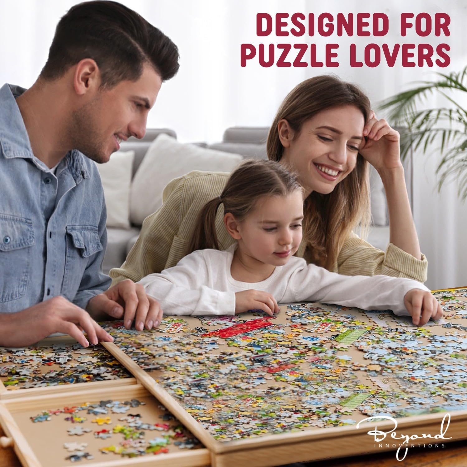 ROTANTE LAZY SUSAN - Trovare i tuoi pezzi con facilità, raggiungendo qualsiasi sezione di cui hai bisogno, il nostro Lazy Susan sotto il tavolo, crea un meraviglioso sistema girevole per una rotazione regolare e costante a 360°. Design durevole: la nostra costruzione definitiva è progettata per durare nel tempo. Qualità e sicurezza sono la nostra priorità, motivo per cui abbiamo utilizzato il legno naturale laccato più resistente per garantire che il tuo organizer per puzzle board non si deformi o collassi dopo un uso prolungato. La finitura laccata fornisce un tocco liscio Copertura e adesivo per puzzle: forniamo una copertura rimovibile traslucida per mantenere il puzzle in posizione quando hai bisogno di fare una pausa. Quando completi il tuo puzzle, puoi incorniciarlo con il nostro set di adesivi puzzle da 1000 pezzi che viene incluso. Divertente ed educativo: perfetto per gli appassionati di puzzle, incoraggia l'interazione di qualità e la stimolazione strategica mentre metti insieme i tuoi puzzle preferiti. Fornisci istantaneamente un'attività divertente posizionando il tuo tavolo su qualsiasi superficie, che si tratti di tavolini, controsoffitti, coperte da spiaggia o pavimento.