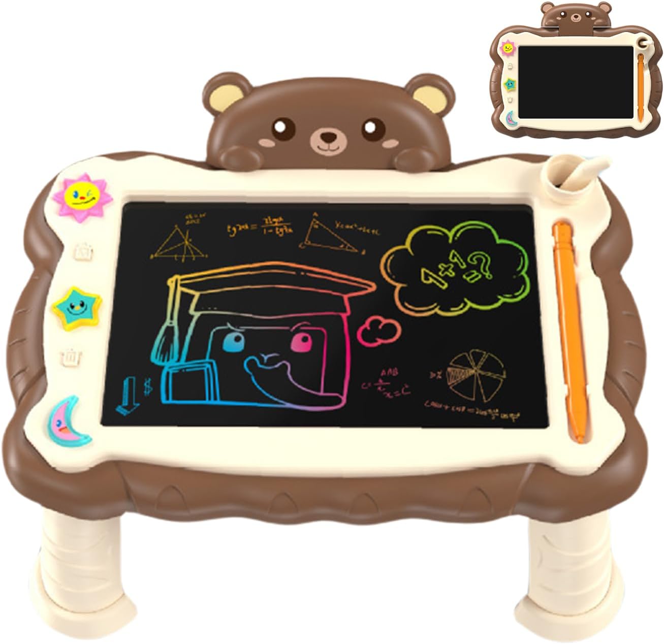 Servizio durevole: progettata per durare nel tempo, la nostra tavoletta grafica LCD è realizzata in resistente materiale ABS con bordi lisci per evitare graffi o disagio. Resiste alla rottura e alla deformazione anche con un uso prolungato, fornendo superfici affidabili per scrivere, fare schizzi e prendere appunti. Facile da usare: progettata con un supporto robusto e pieghevole, questa tavoletta da scrittura fornisce un supporto stabile sia per l'uso sulla scrivania che sul pavimento. Il supporto regolabile consente ai bambini di disegnare e descrivere con facilità da diverse angolazioni. Giocattoli per lo sviluppo: questa tavoletta grafica LCD funge da coinvolgente giocattolo educativo che stimola la creatività e l'immaginazione dei bambini. Le sue superfici sensibili alla pressione aiutano a sviluppare la coordinazione occhio-mano offrendo allo stesso tempo maggiori opportunità per scarabocchiare. Comodo da portare: con le sue dimensioni compatte e il peso minimo, questa tavoletta grafica LCD massimizza la praticità senza sacrificare la funzionalità. Inseriscilo senza sforzo in borse affollate o lavori compatti e goditi un'alternativa organizzata alla carta. Regali divertenti: questa tavoletta grafica LCD è un regalo delizioso e pratico che diverte mentre esprime la tua cura. Il suo fattore sorpresa crea momenti memorabili, rendendolo un ottimo regalo per compleanni, vacanze o incoraggiamento quotidiano