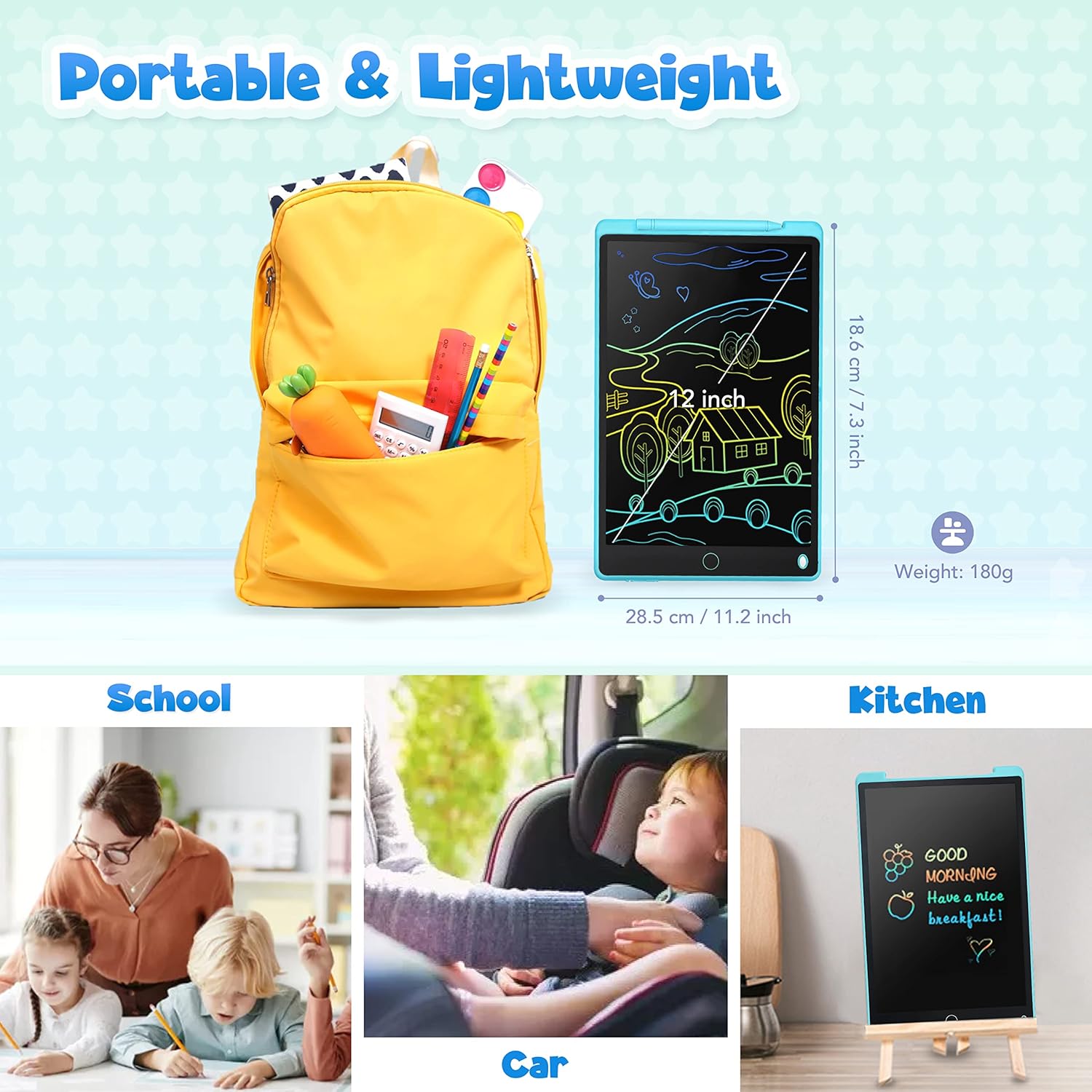 🌈[Tavoletta da scrittura LCD colorata] Il nostro tablet è dotato di uno schermo LCD da 12 pollici che fornisce colori brillanti, vibranti e ad alta definizione. I disegni e le scritte risaltano nettamente, rendendo ogni creazione più vivace e attraente. 💫【Funzionamento semplice e blocco intelligente】Un singolo pulsante cancella l'intera pagina in un istante, mentre il blocco intelligente impedisce la cancellazione accidentale. Così potrai conservare i tuoi capolavori per tutto il tempo che desideri. 🔋【Economico e durevole】Nessun fastidioso cavo o ricarica qui. La batteria a bottone integrata offre una notevole longevità, dandoti più tempo per creare e meno tempo per preoccuparti dell'energia. 👪 【Giocattolo educativo e regalo perfetto】 Oltre a un semplice strumento di disegno, questo tablet è un modo divertente e interattivo per insegnare ai bambini l'alfabetizzazione, l'aritmetica, il disegno e altro ancora. È un regalo ideale per compleanni, Natale o semplicemente per compiacere una persona cara. 🌍💼【Ecologico e pratico】Addio allo spreco di carta, benvenuto a un'alternativa più ecologica. Inoltre, grazie alla sua leggerezza e resistenza, potrai portare questo tablet ovunque tu vada, a scuola, in ufficio o in viaggio. La creatività non ha limiti!