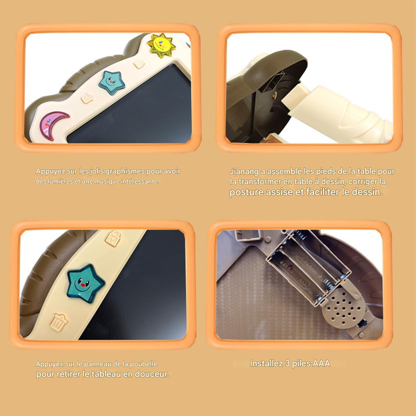 Regalo sorprendente: questa lavagna LCD unisce utile e piacevole per i momenti di condivisione. Il suo effetto sorpresa crea ricordi memorabili durante compleanni o feste. Una soluzione intelligente per limitare gli sprechi di carta e sviluppare la fantasia. Installazione universale: base antiscivolo compatibile con tutte le superfici. Meccanismo brevettato che garantisce una perfetta stabilità in posizione verticale o orizzontale Risparmio di spazio intelligente: ottimizzando lo spazio senza compromessi funzionali, questa tavoletta grafica senza carta si adatta naturalmente a borse sovraccariche o scrivanie minimaliste. La sua ergonomia progettata per le mani attive facilita la digitazione rapida. Resistenza ottimale: realizzato per un uso quotidiano intensivo, questo tablet combina ABS rinforzato con bordi lucidi senza spigoli vivi. Resiste alla rottura e alla deformazione, all'uso prolungato senza alterazioni. Giocattoli per lo sviluppo: questo tablet con schermo LCD stimola la creatività e l'immaginazione come un accattivante giocattolo educativo. I suoi sensi sviluppano la coordinazione occhio-mano premendo lo stilo.