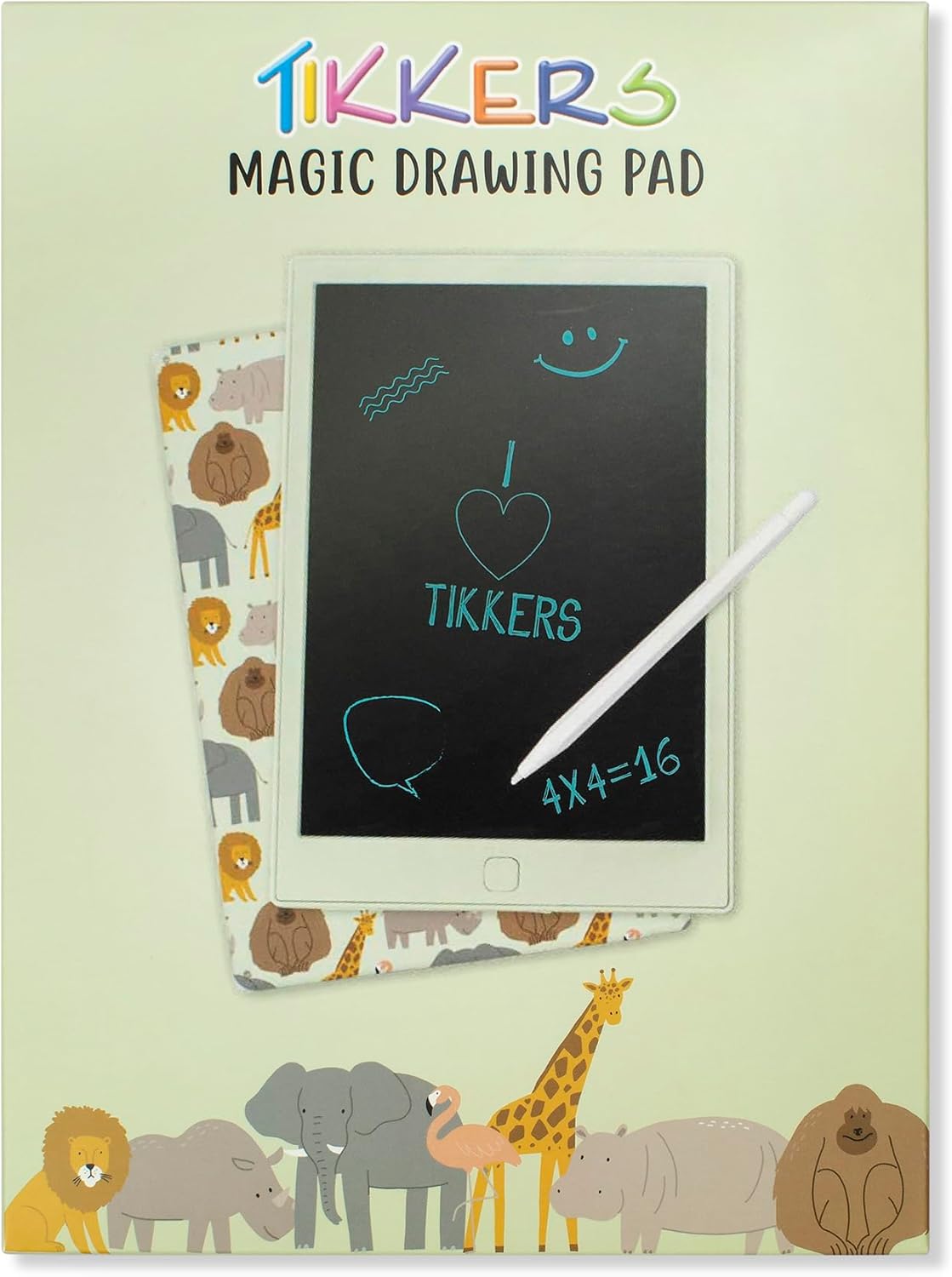 Divertiti per ore con il Tikkers Safari Sketchpad: il tablet da disegno perfetto per i bambini. Scarabocchia, gioca o esercitati a scrivere Il blocco scarabocchi offre un disegno vivace che può essere cancellato con la semplice pressione di un pulsante in modo da poter ricominciare tutto da capo. Sono incluse una resistente custodia con stampa safari e una penna per scarabocchi.