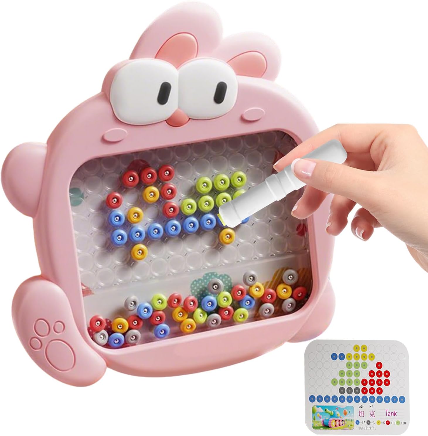 Ispirazione tema animaletti: Con un design adorabile a tema animali domestici, questa lavagna magnetica assicura una presa confortevole e bordi arrotondati lisci, promuovendo l'esplorazione creativa attraverso i vivaci colori brillanti per il gioco educativo Risorsa didattica dinamica: Stimola l'esplorazione di forme, colori e modelli, insieme ad attività di abbinamento numerico, per affinare le tecniche di ordinamento cromatico e rafforzare la coordinazione mano-cervello attraverso un gioco interattivo e coinvolgente Ampio Spazio da Disegno: Offrendo 89 caselle per disegnare, questa lavagna garantisce una tela spaziosa per ispirazione artistica, promuovendo più gioco e la capacità di formare design dettagliati in modo seamless e piacevole Organizzazione Giocattoli Intelligente: Dotato di un vano di riporlo integrato, semplifica la gestione dei giocattoli, fissa la penna magnetica in modo sicuro, promuove pratiche di organizzazione e diminuisce la possibilità di dispersione dei componenti durante il gioco creativo. Divertimento creativo senza interruzioni: I potenti magneti integrati assicurano il sollevamento sicuro delle perline e prestazioni stabili durante il gioco, favorendo il controllo manuale e un'esperienza artistica più appagante senza interruzioni