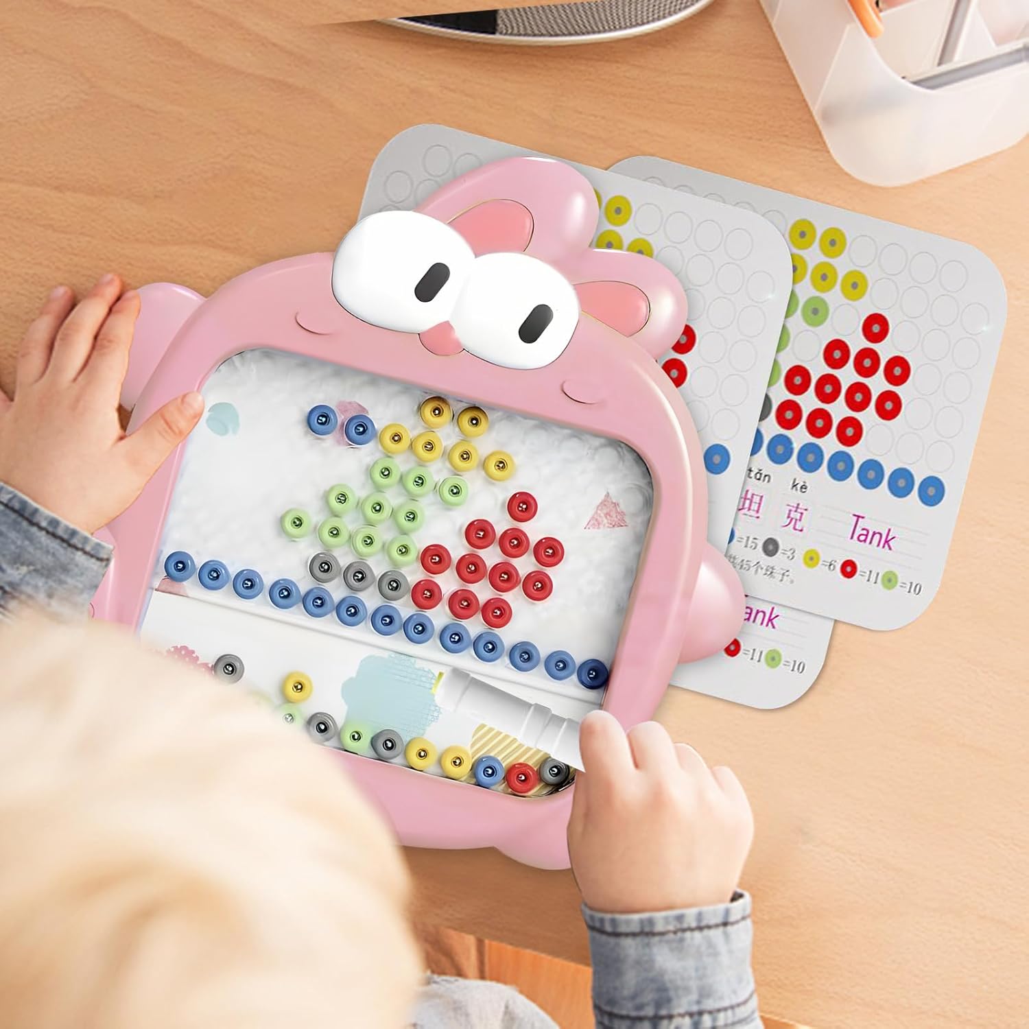 Gioco creativo stimolato: I vivaci colori brillanti e il design a tema animaletto rendono questa lavagna magnetica coinvolgente, offrendo una presa comoda e bordi arrotondati lisci per incoraggiare la creatività artistica durante il disegno e la scrittura per bambini Esperienza di gioco formativa: Coinvolge i bambini con attività di abbinamento numerico e schede di apprendimento modelli, per potenziare le capacità di ordinamento colori e favorire naturalmente la coordinazione mano-cervello attraverso il divertimento educativo Potenziale Artistico: La superficie a 89 caselle supporta un gioco immaginativo espansivo, incoraggiando espressione artistica e consentendo la creazione di disegni elaborati su questa lavagna magnetica generosamente dimensionata per massima soddisfazione Compartimento Integrato Innovativo: Questa lavagna magnetica include un vano di riporlo integrato che mantiene la penna magnetica al sicuro, favorisce lo sviluppo di capacità organizzative nei bambini ed evita la perdita degli durante l'utilizzo o il trasporto, garantendo ordine e praticità. Gioco senza interruzioni: Progettata con potenti magneti incorporati, la lavagna assicura che le perline rimangano ferme durante l'uso, promuovendo movimenti precisi delle mani e stimolando la creatività immaginativa senza sforzo