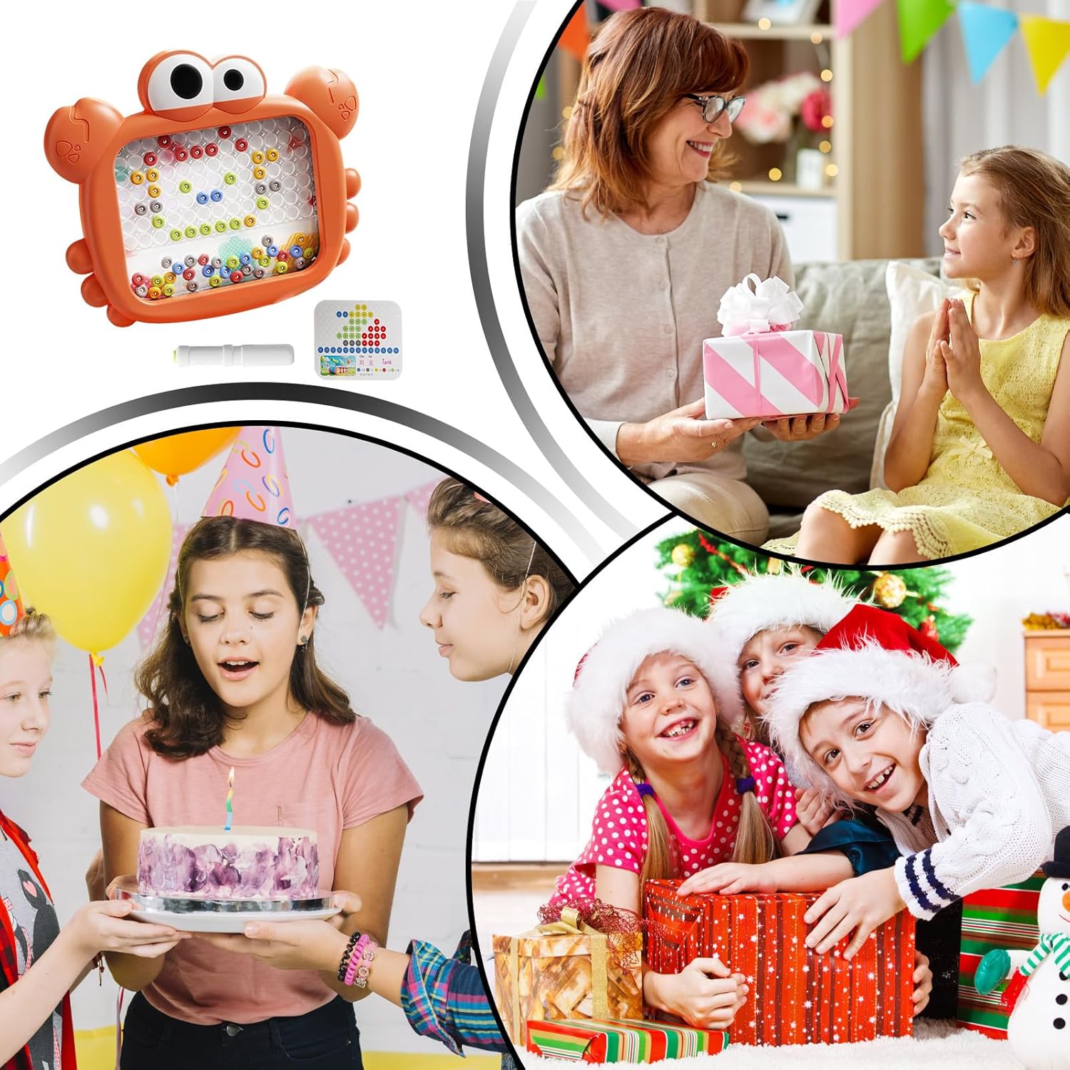 Ispirazione tema animaletti: Con un design adorabile a tema animali domestici, questa lavagna magnetica assicura una presa confortevole e bordi arrotondati lisci, promuovendo l'esplorazione creativa attraverso i vivaci colori brillanti per il gioco educativo Esercizi cognitivi divertenti: Sviluppa il riconoscimento delle forme e le capacità di ordinamento dei colori, utilizzando schede di apprendimento con modelli che incoraggiano l'abbinamento numerico e migliorano la coordinazione mano-cervello in modo piacevole e coinvolgente per i bambini Vasta Tela Creativa: Caratterizzata da 89 caselle sulla superficie, la lavagna magnetica da disegno fornisce un palco spazioso per creatività senza confini e ispira gli utenti a realizzare design intricati con estrema semplicità e divertimento Compartimento Integrato Innovativo: Questa lavagna magnetica include un vano di riporlo integrato che mantiene la penna magnetica al sicuro, favorisce lo sviluppo di capacità organizzative nei bambini ed evita la perdita degli durante l'utilizzo o il trasporto, garantendo ordine e praticità. Gioco senza interruzioni: Progettata con potenti magneti incorporati, la lavagna assicura che le perline rimangano ferme durante l'uso, promuovendo movimenti precisi delle mani e stimolando la creatività immaginativa senza sforzo